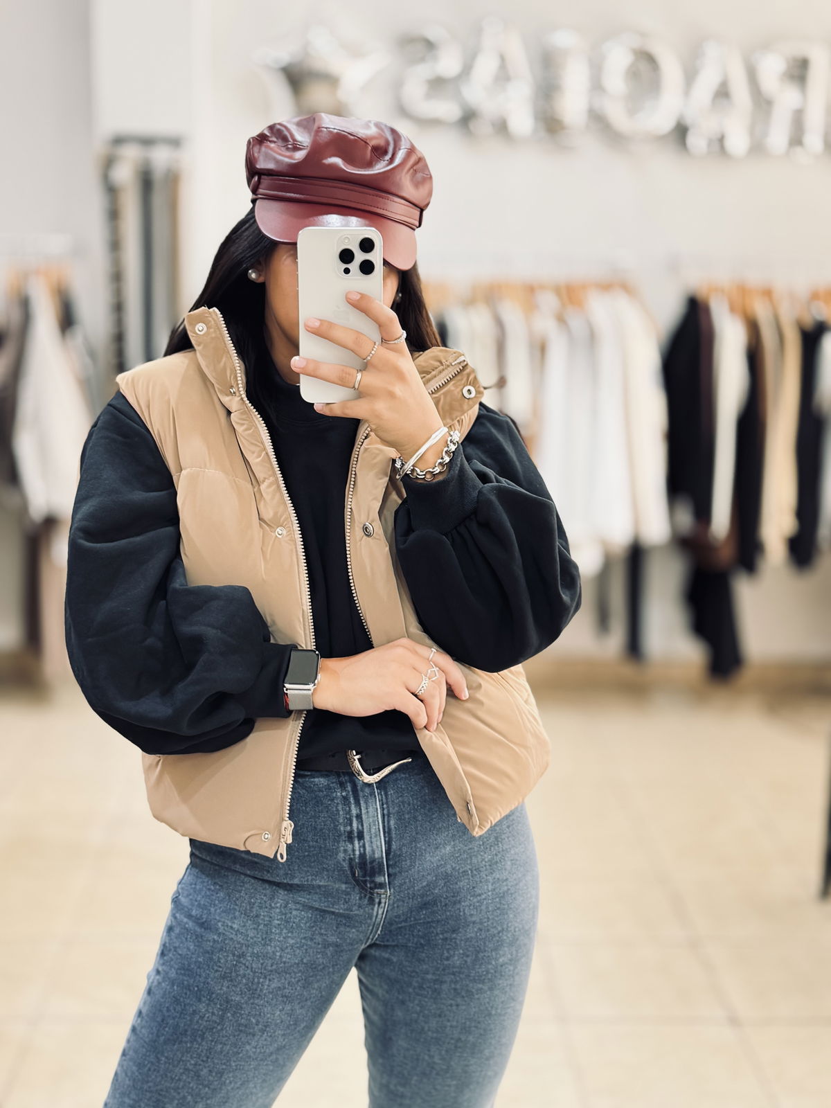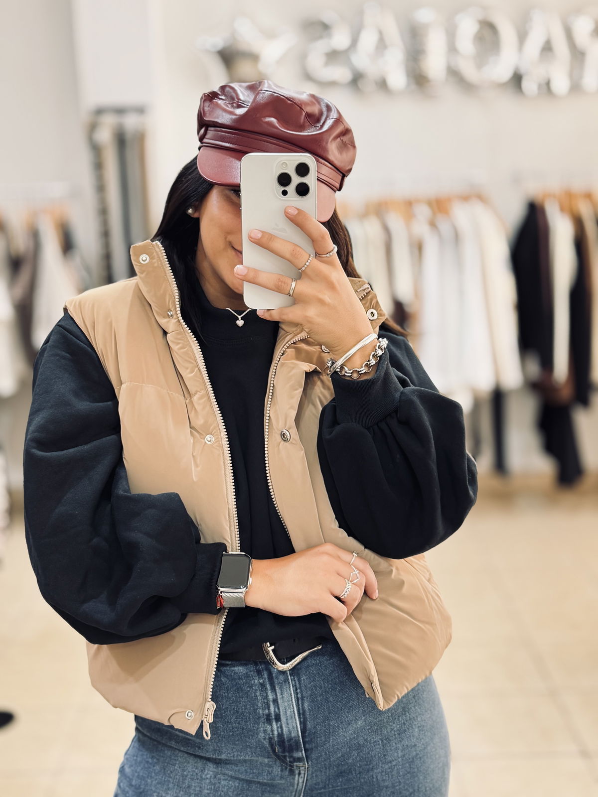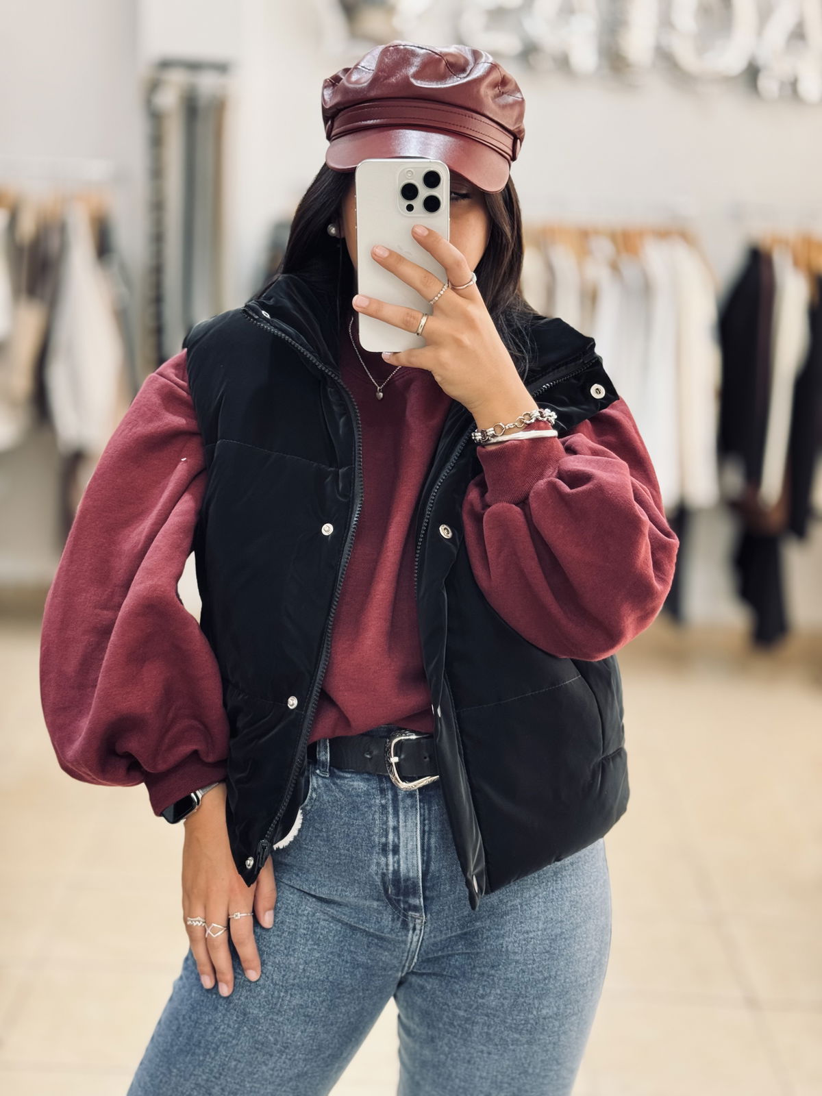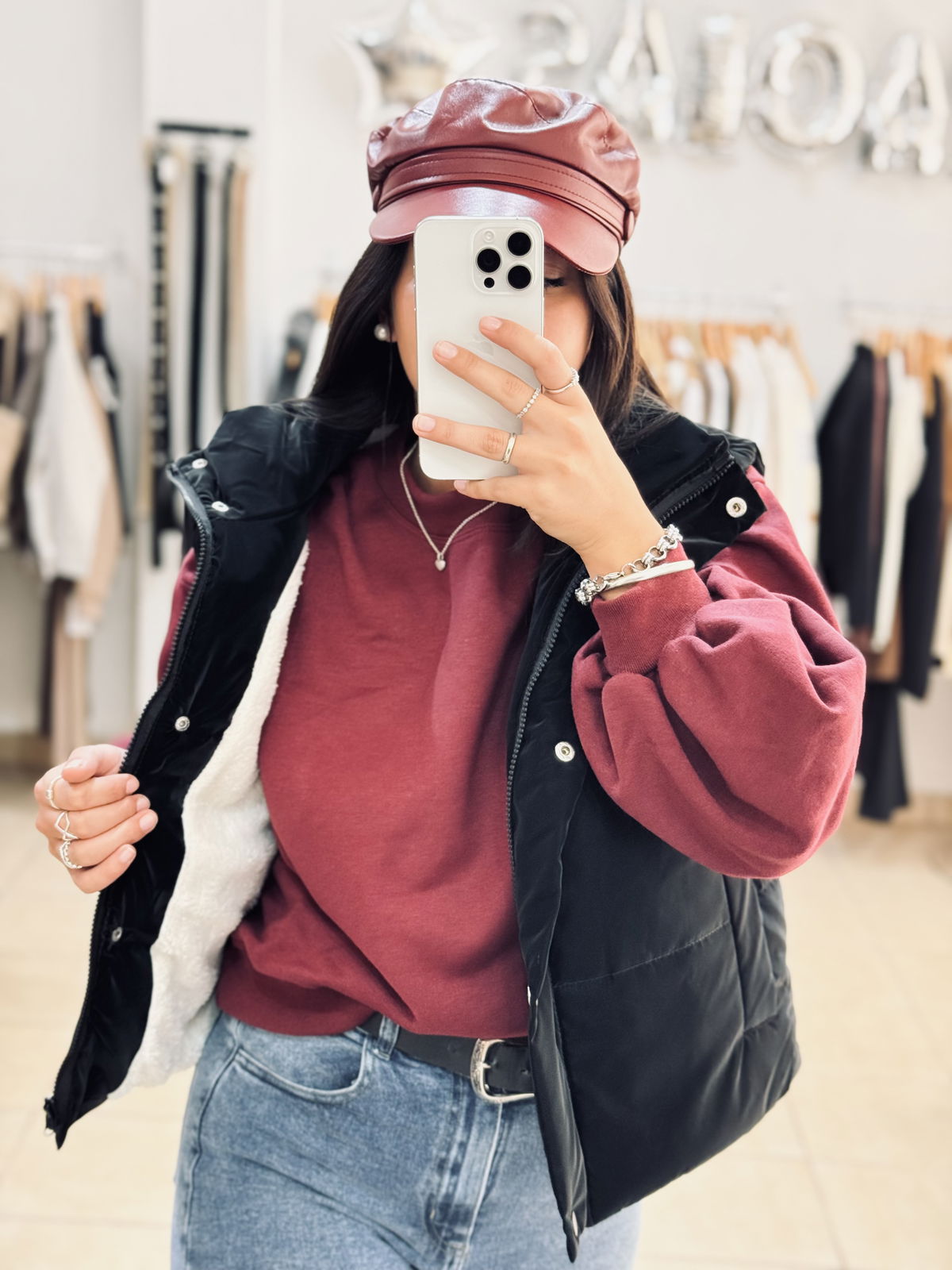 Chaleco puffer, ideal para sumar abrigo y estilo a tus looks de todos los días. De un lado liso y del otro con interior de textura suave tipo corderito que aporta más calidez. Con cierre frontal y cuello alto, perfecto para usar sobre sweaters o buzos en los días más frescos.