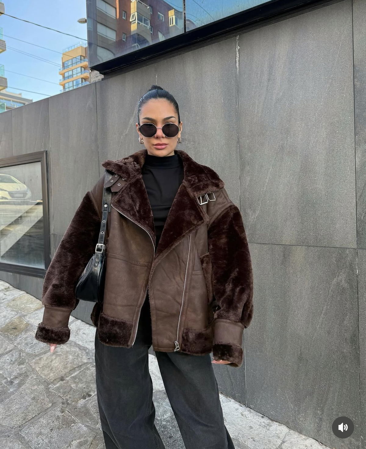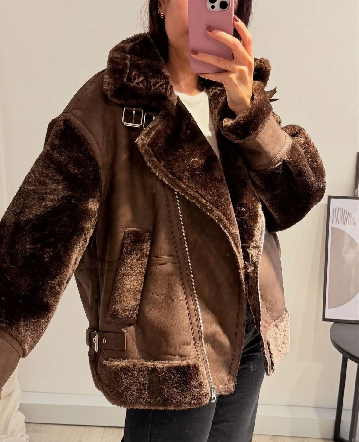 Campera estilo aviadora confeccionada en gamuzada con interior y detalles en piel sintética ultra suave. Su diseño oversize con cuello amplio y cierre frontal combina abrigo y estilo en una prenda protagonista. Ideal para elevar cualquier look de invierno.