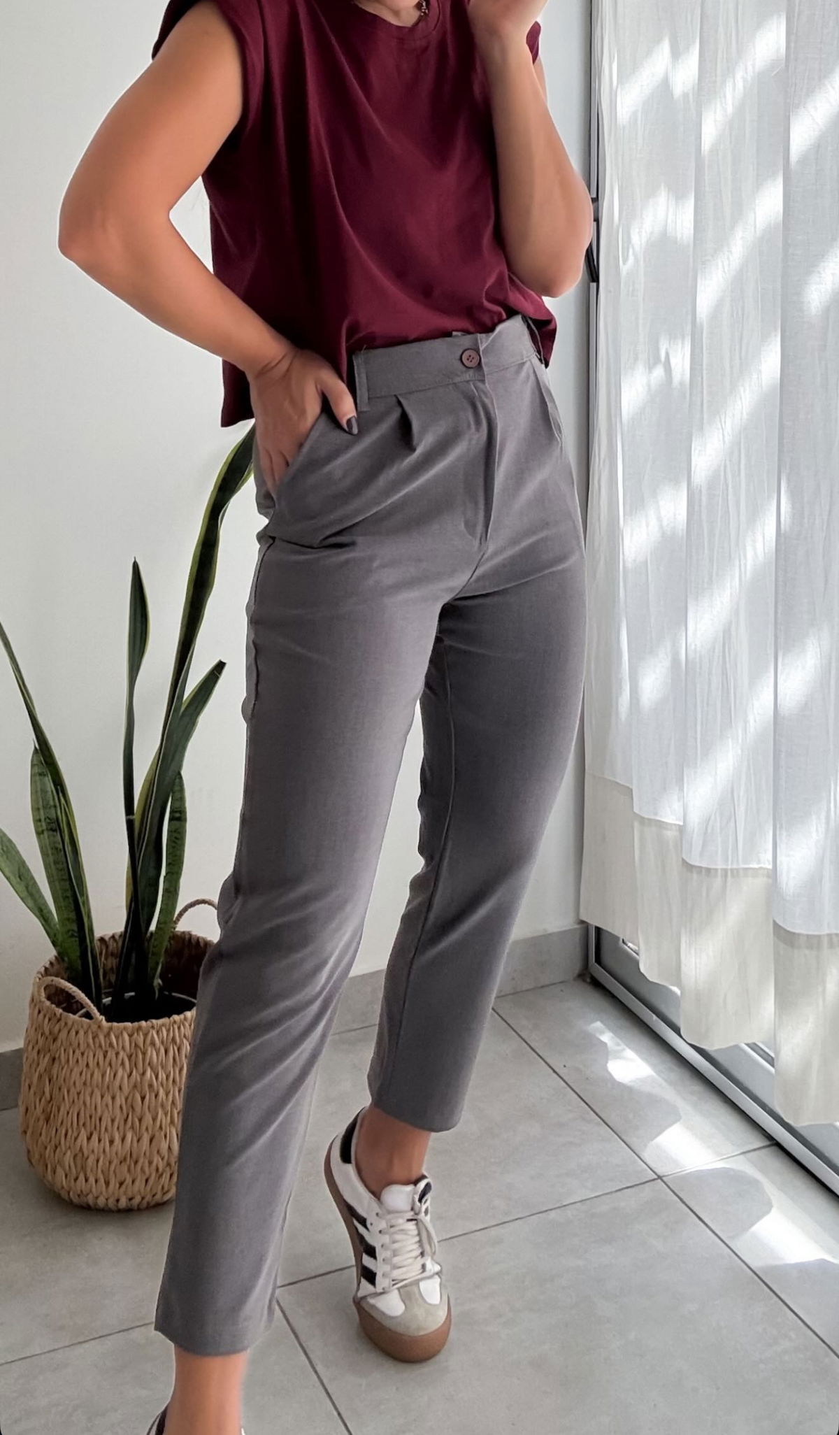 Pantalón sastrero con pinza estilo chupin, corto al tobillo. Con pasa cinto, frunce en la parte de atrás para mejor calce. Botón adelante y cierre. Bolsillos a los costados, súper liviano y comodo