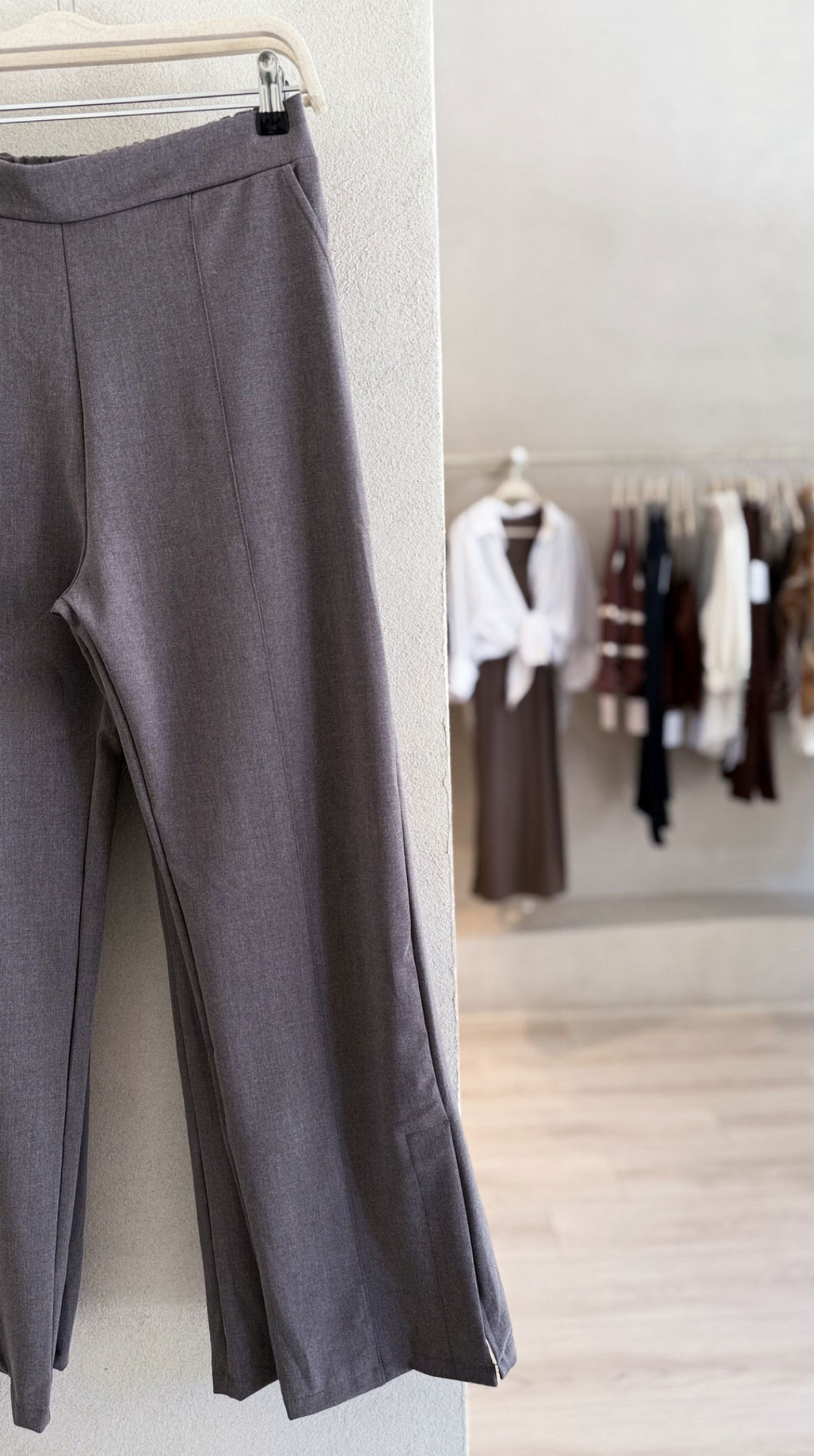 Pantalón sastrero con alforza adelante y tajo en su parte inferior. Sin botón y con elástico en la parte de atrás, súper liviano!