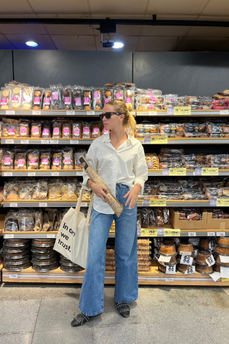 Jean wide leg muy canchero y versátil! Comodo y amplio, pero con una caída sutil para que puedas usarlo a diario. Tiro alto, de color azul clasico con localizado y bigotes suaves. Tiene las costuras color camel, los avios cobre florentino y el ruedo clasico. La modelo esta usando el talle 38