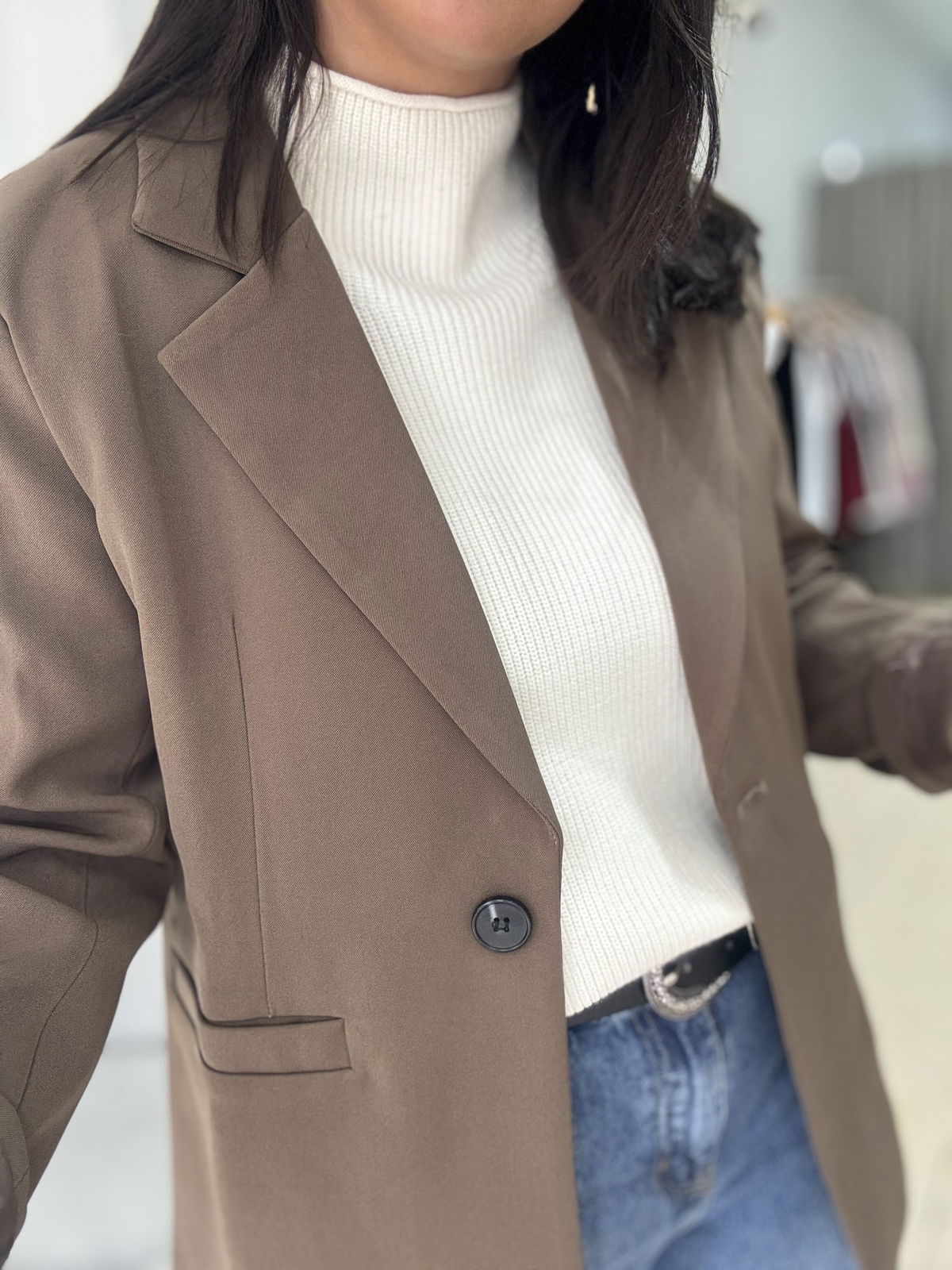Blazer importado con forreria por dentro, detalle en espalda. La modelo tiene puesto el talle 2