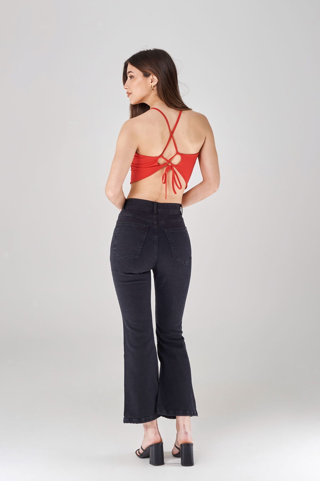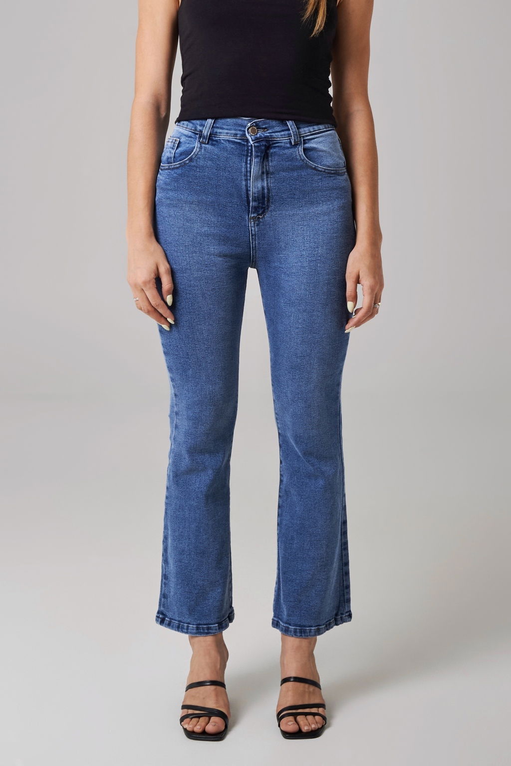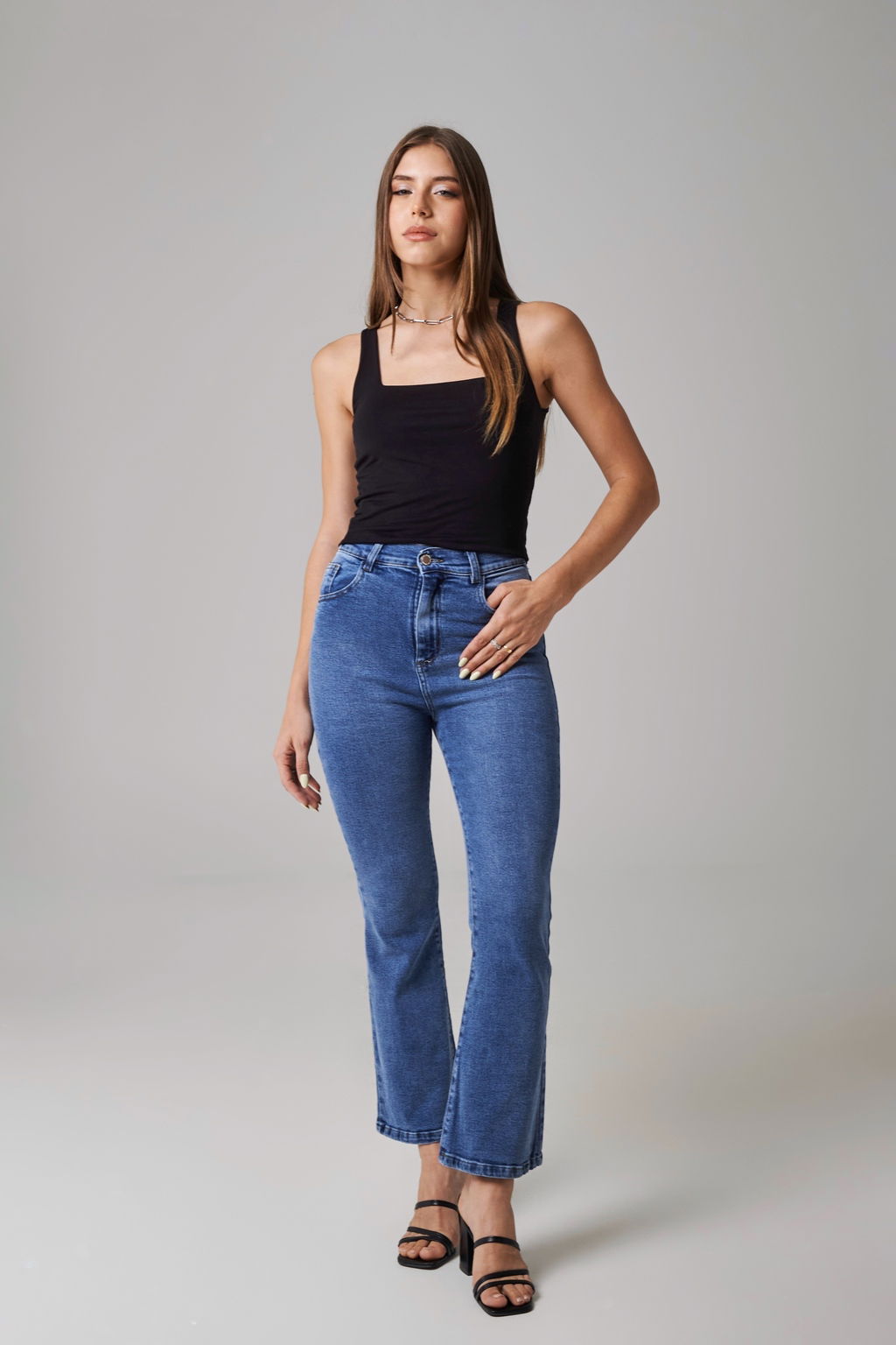 Semi Oxford cropped, este corte de jeans viene al tobillo. Es súper elastizado, tiro alto.