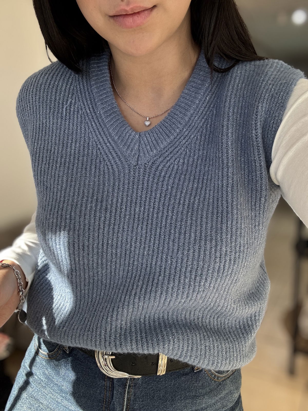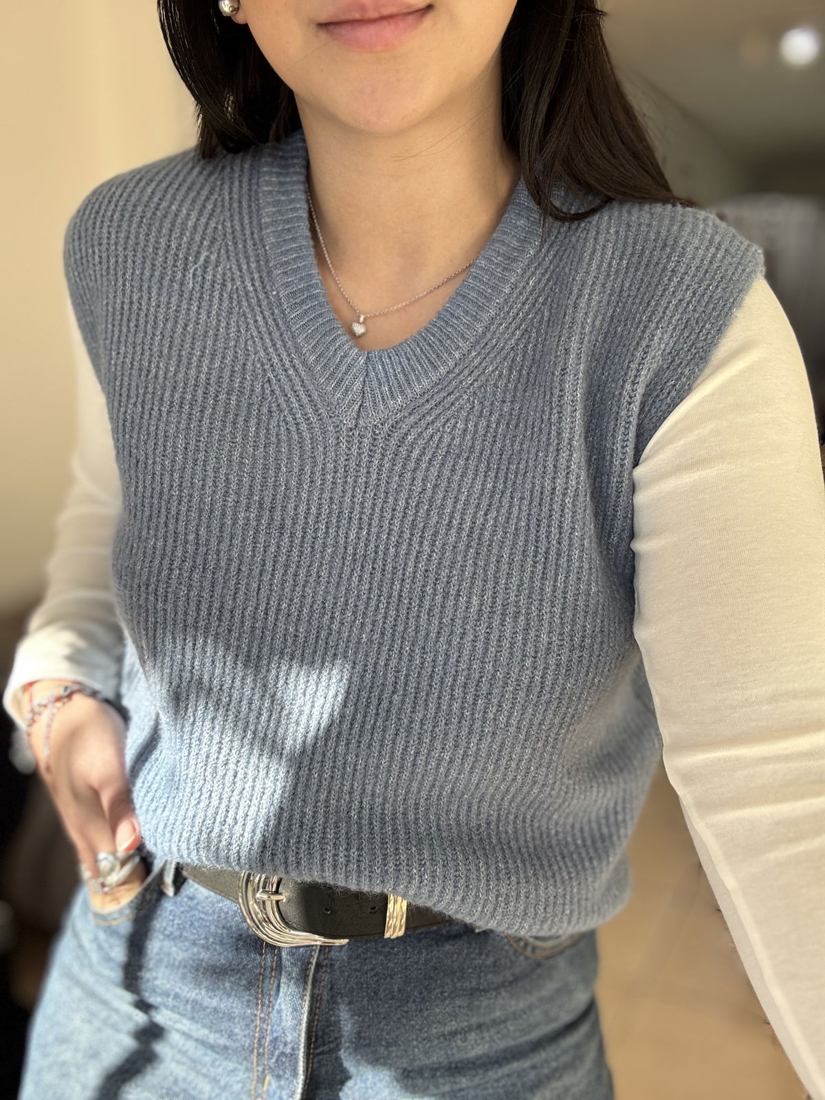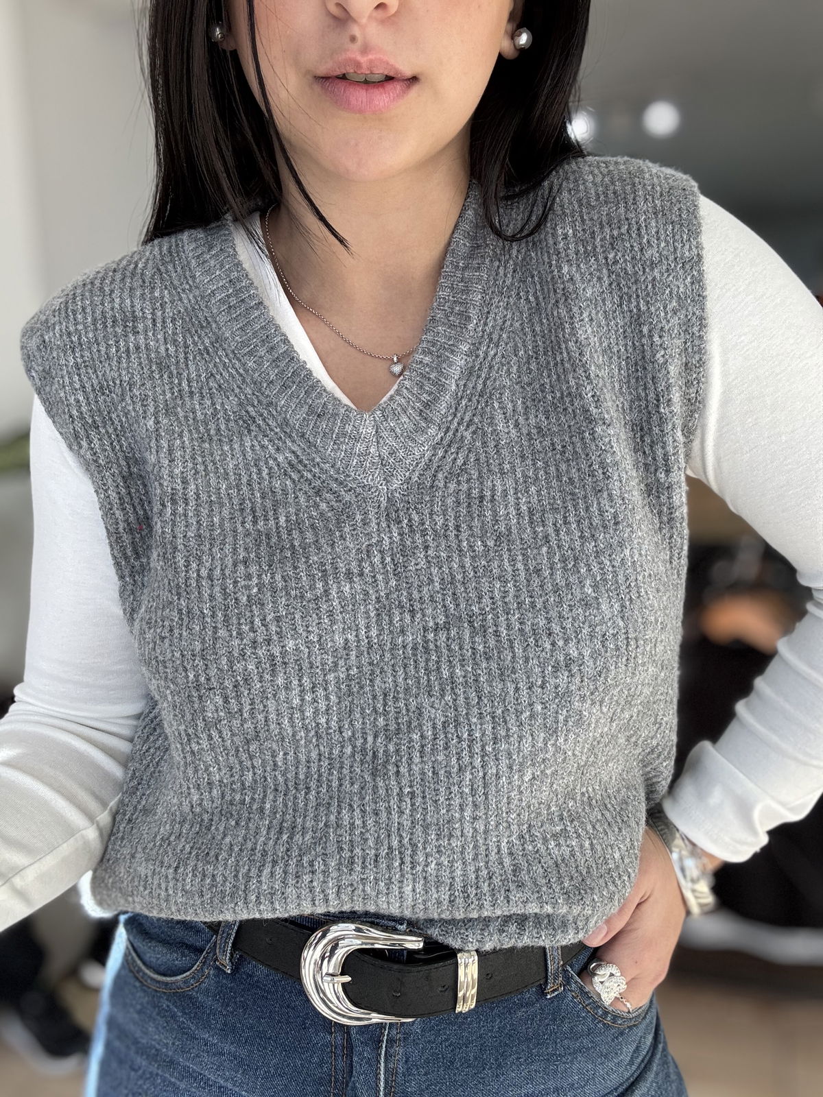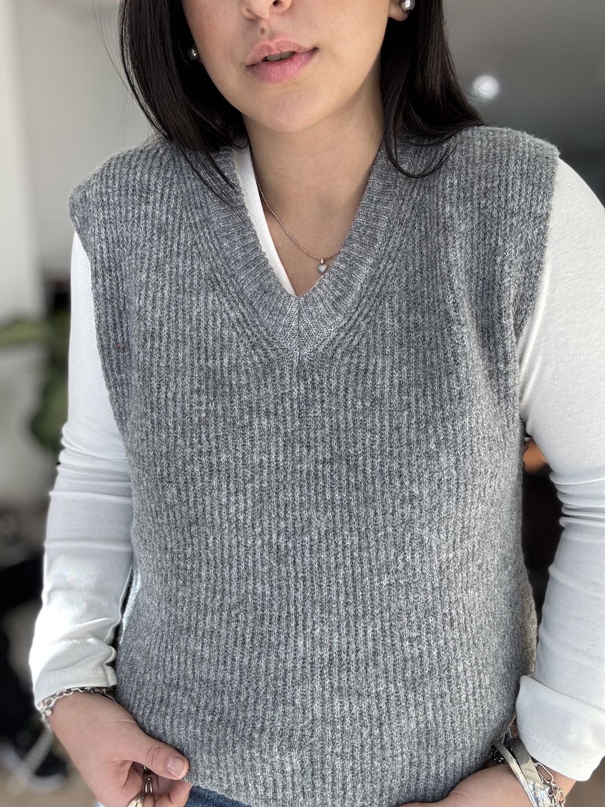 Chaleco de lana mohair, cuello v. Es súper suave, calentito y un básico que usamos atemporal, con básicas y camisas!