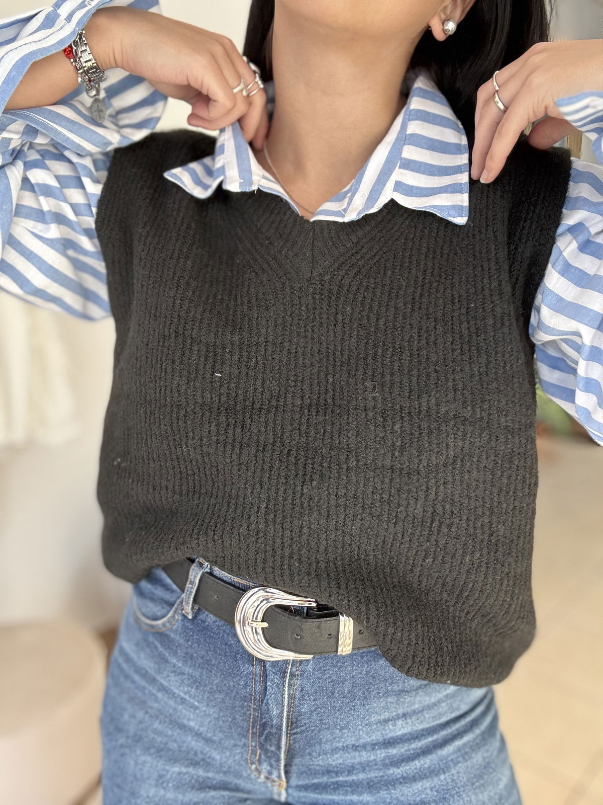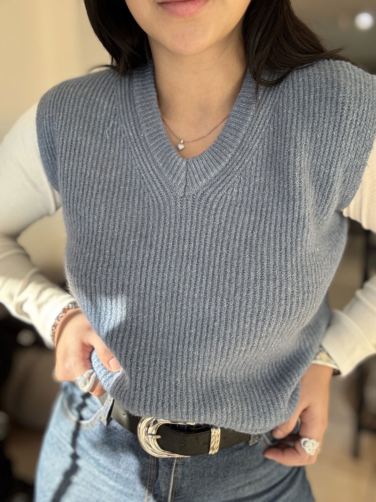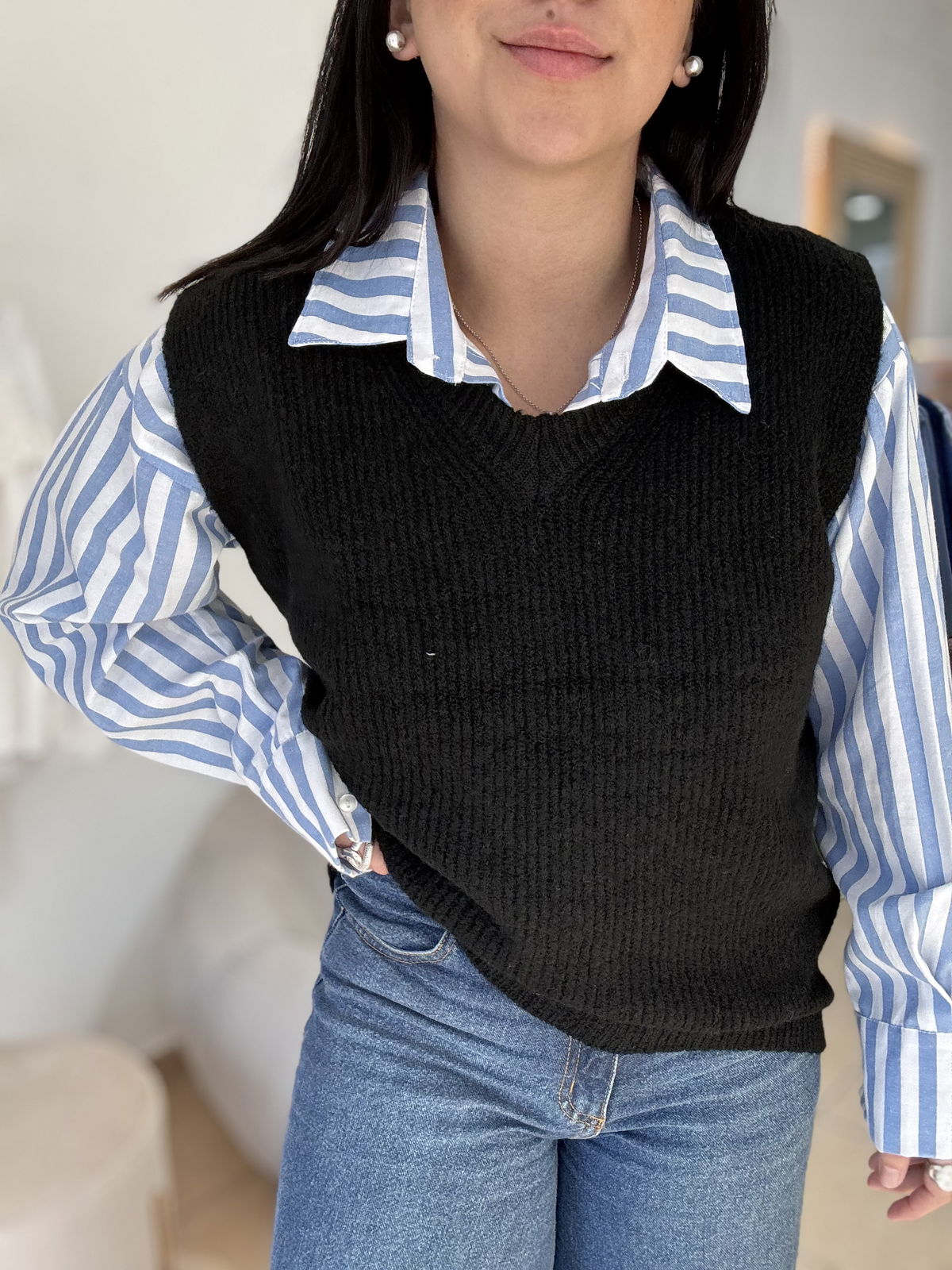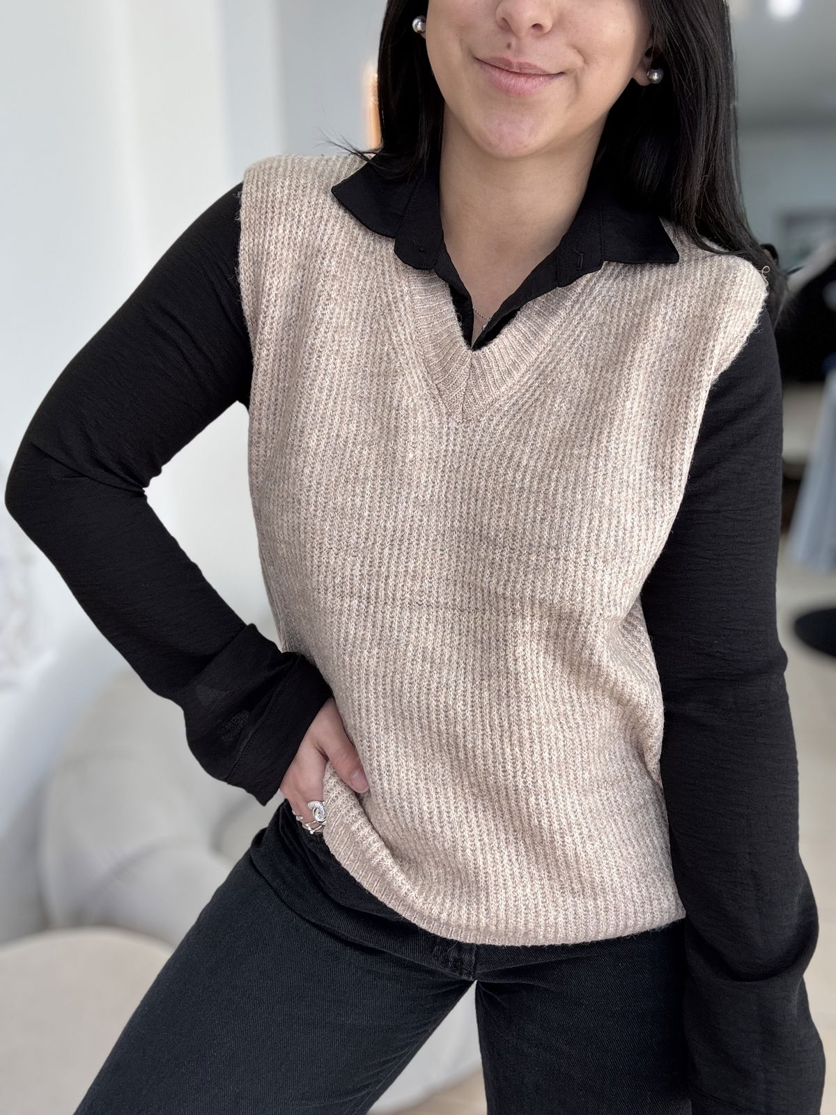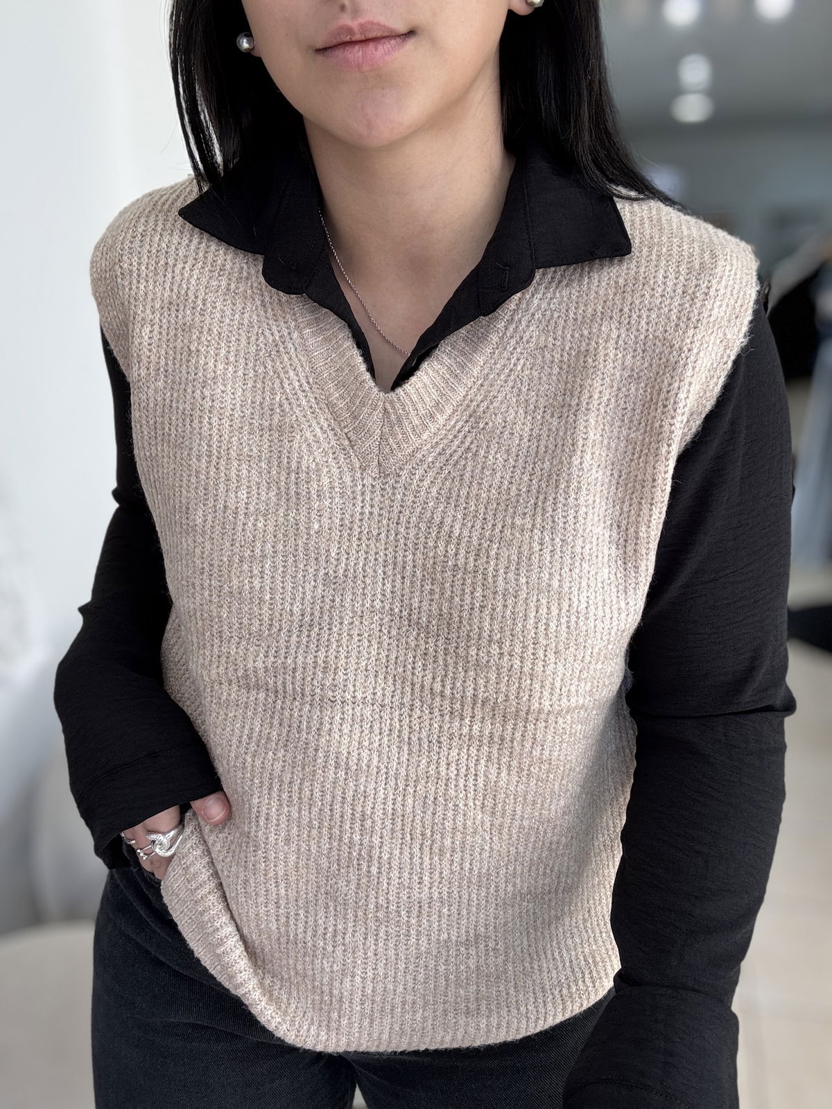 Chaleco de lana mohair, cuello v. Es súper suave, calentito y un básico que usamos atemporal, con básicas y camisas!