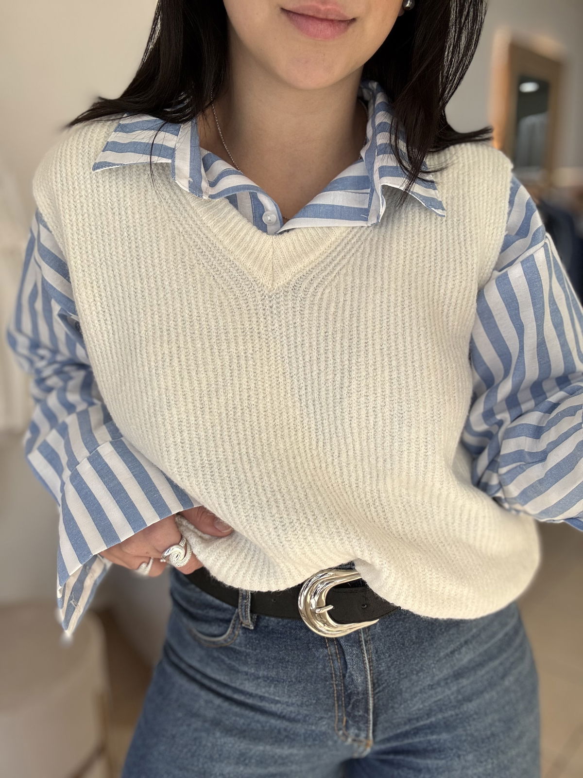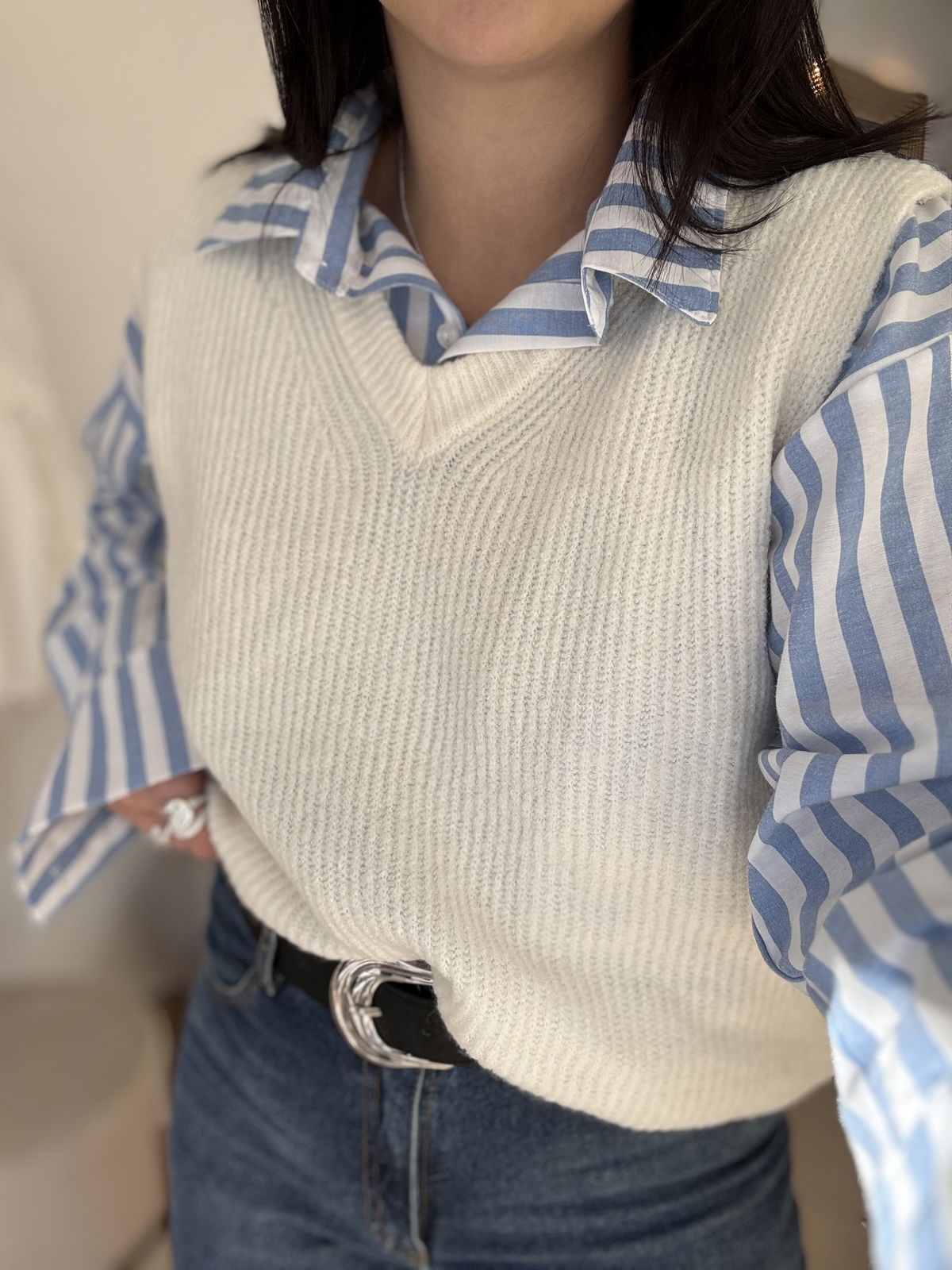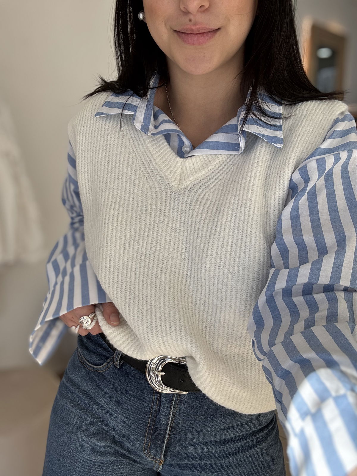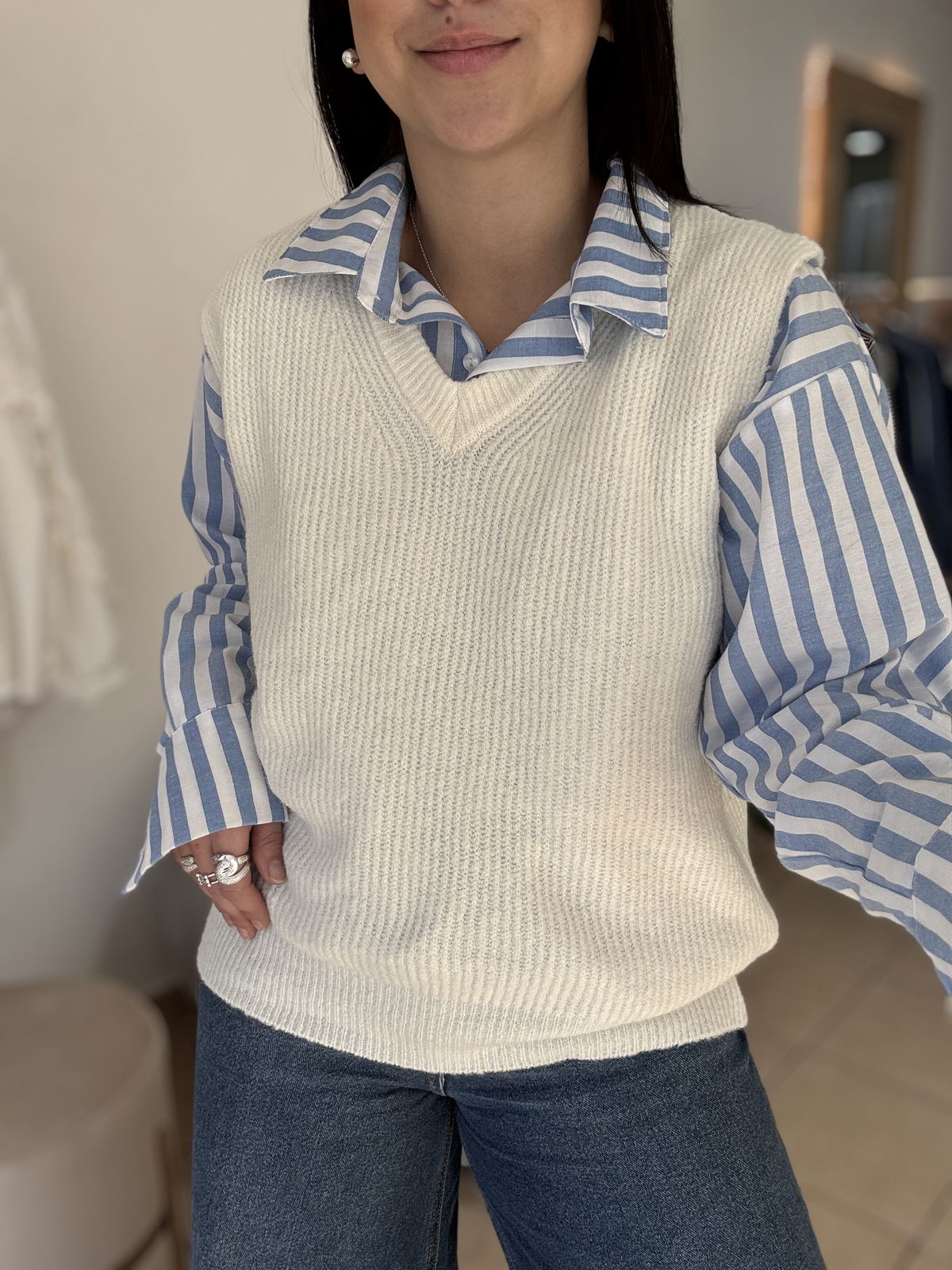 Chaleco de lana mohair, cuello v. Es súper suave, calentito y un básico que usamos atemporal, con básicas y camisas!