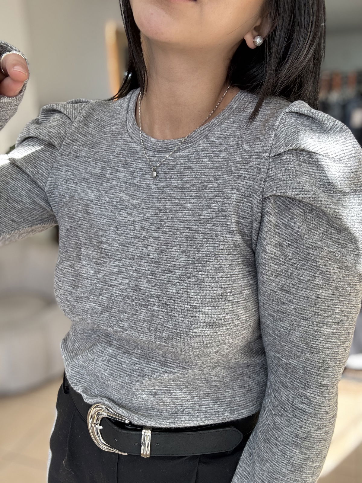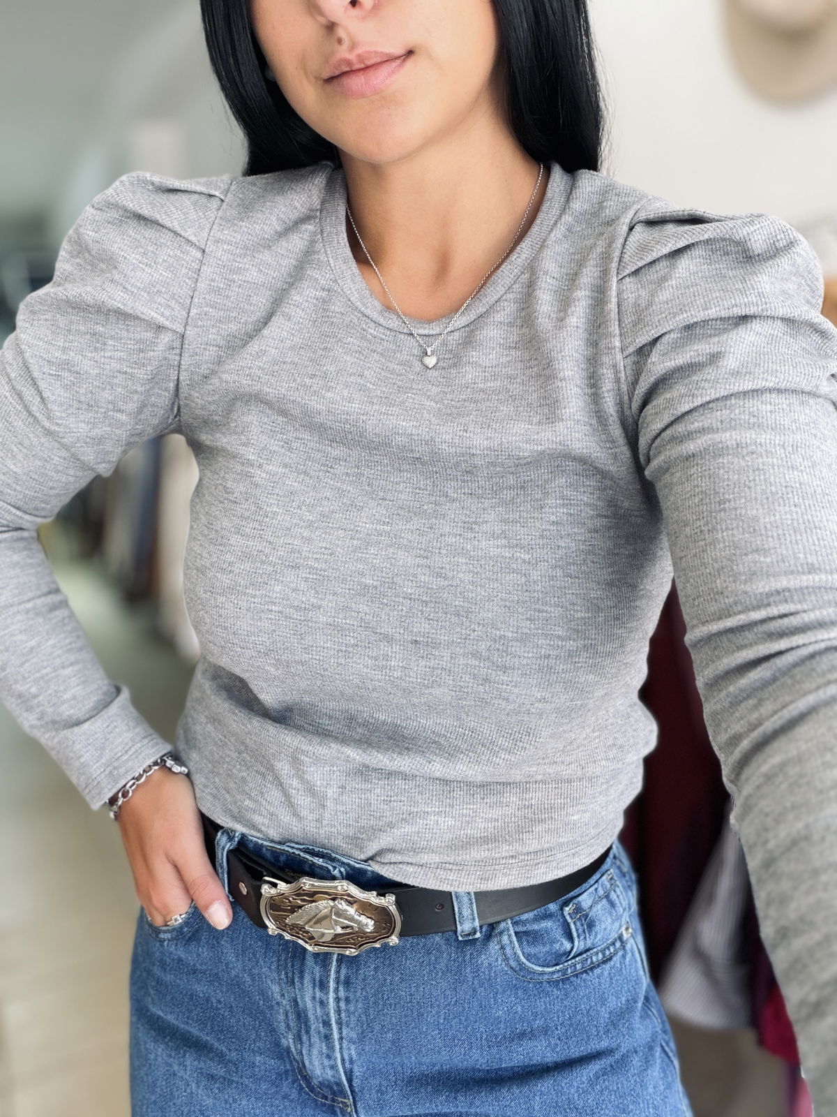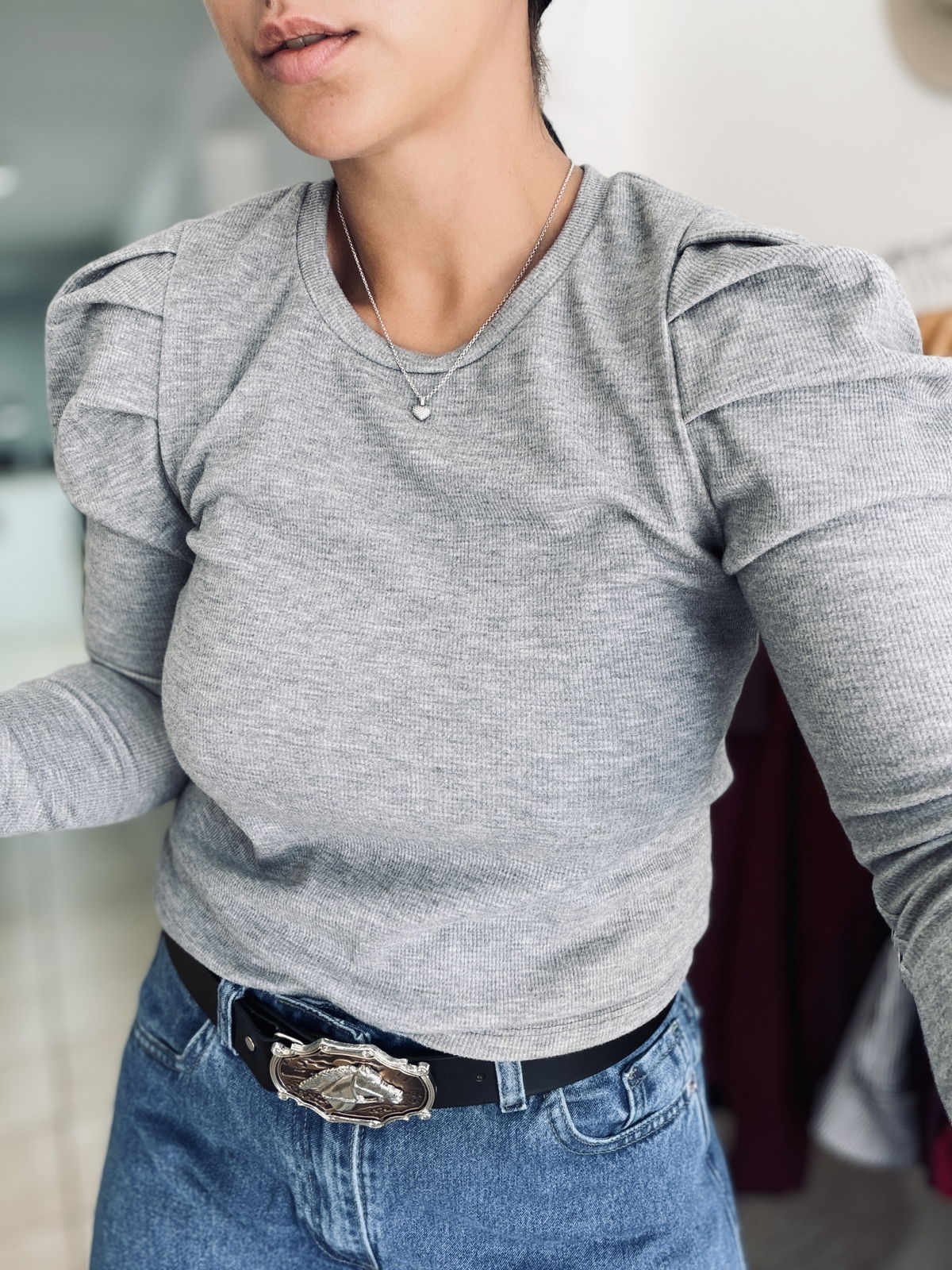 Sweatercito de lanilla con manga princesa, es un estilo entre camiseta y sweater finito. Es entallado y queda súper fino puesto! El talle es único, va hasta un 95/100 de busto.