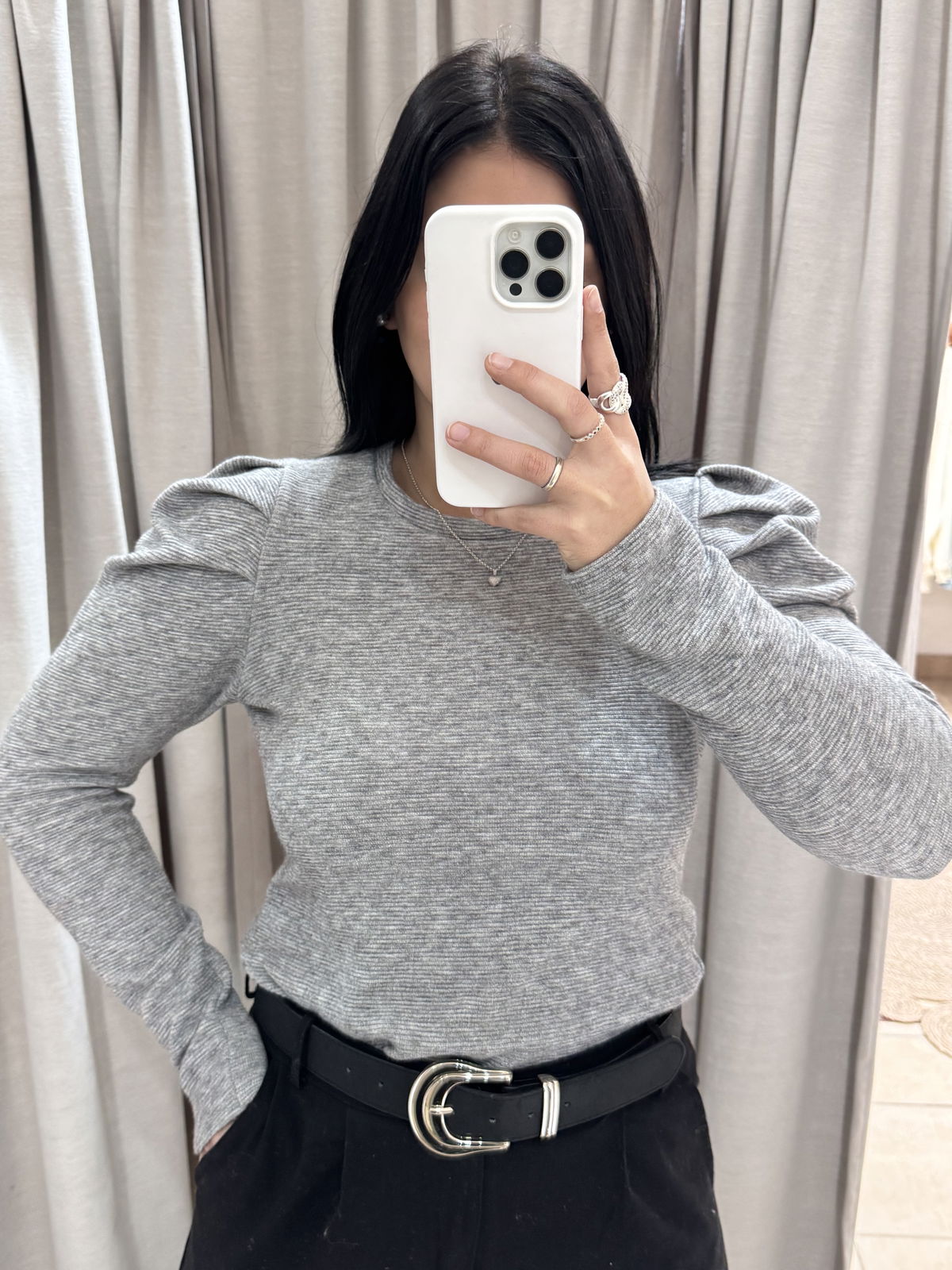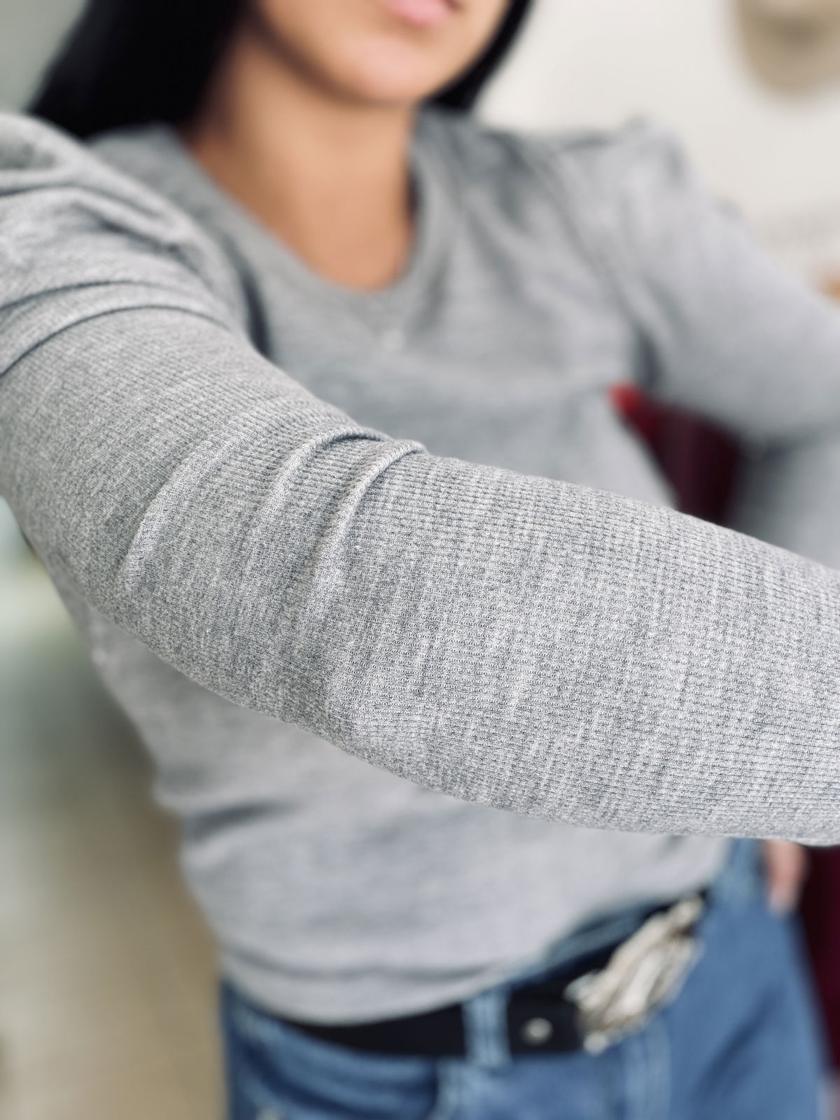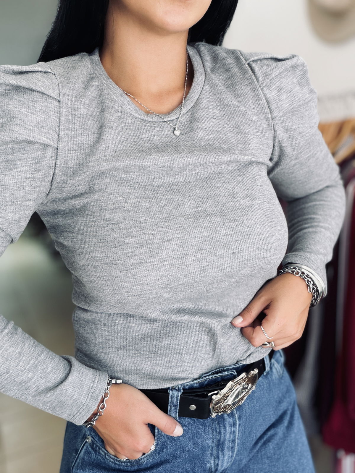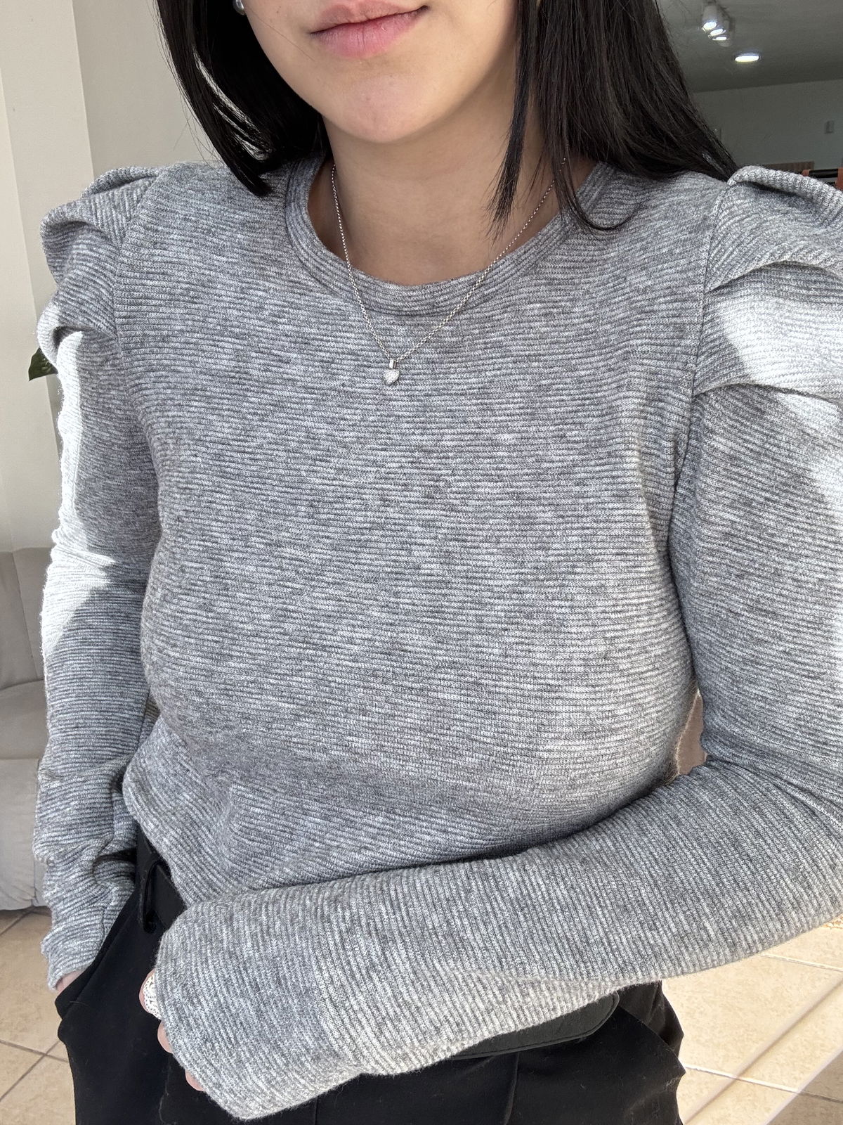 Sweatercito de lanilla con manga princesa, es un estilo entre camiseta y sweater finito. Es entallado y queda súper fino puesto! El talle es único, va hasta un 95/100 de busto.