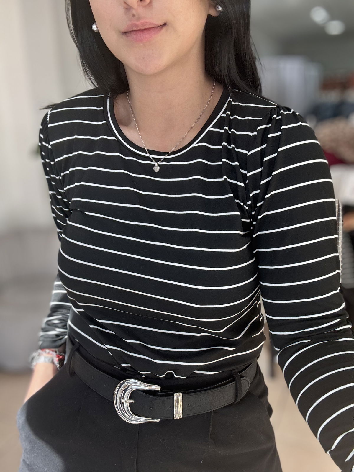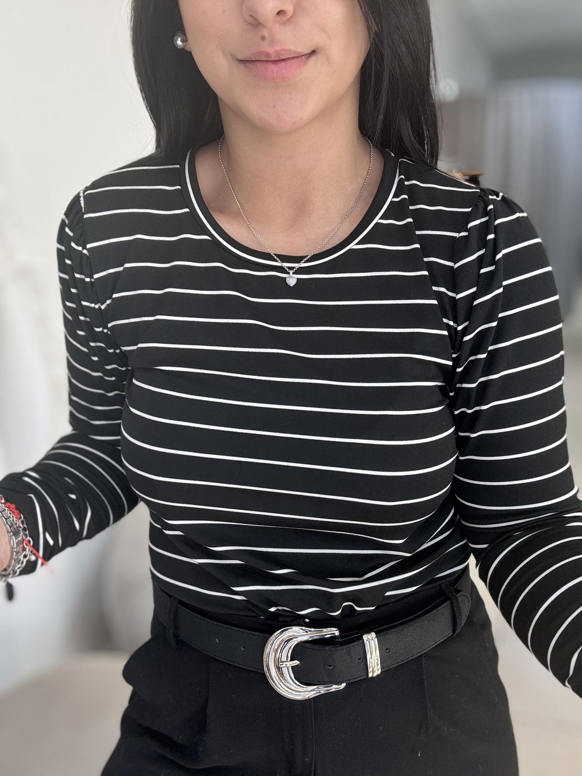Remera larga cuello redondo cerrado, manga semi princesa. Tela súper soft, calentita y cómoda, la tela es súper elastizada. El talle es único pero bastante amplio, va de un 2 a un 4, es bastante larguita.