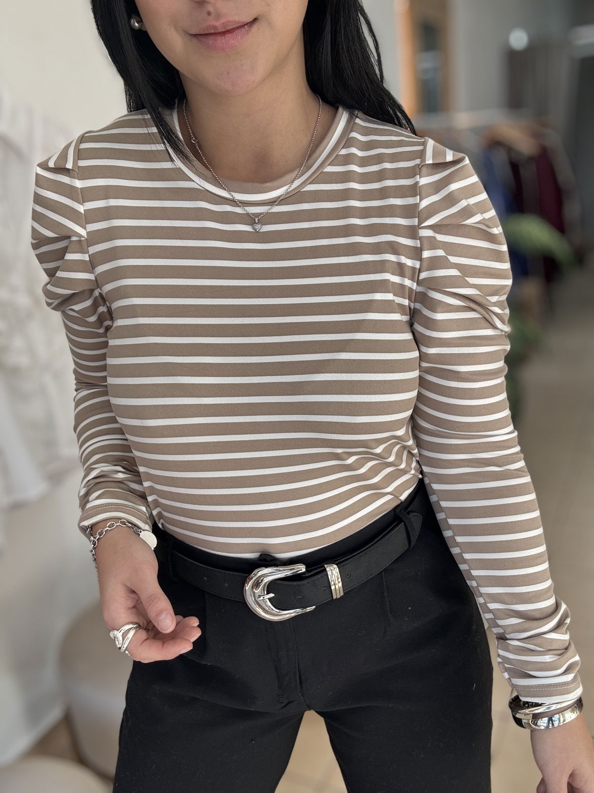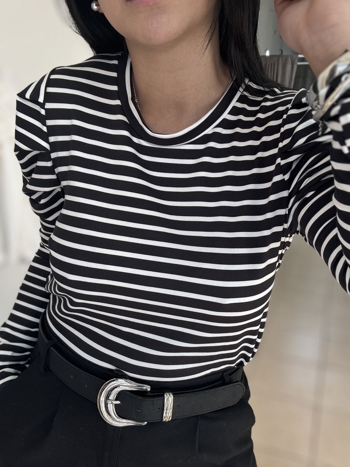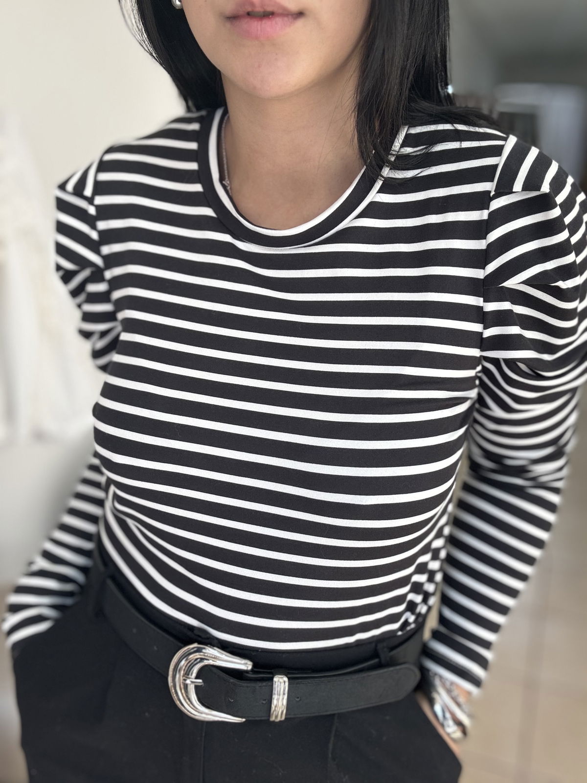 Remera manga larga a rayas, manga princesa. La tela es de modal soft, calentita y súper elastizada. Es un modelo super canchero para levantar tus outfit sin dejar de estar cómoda!