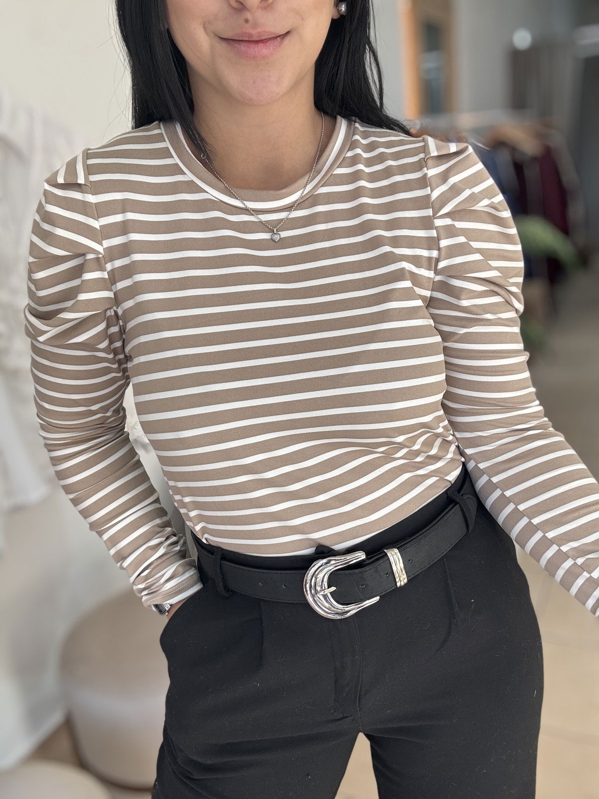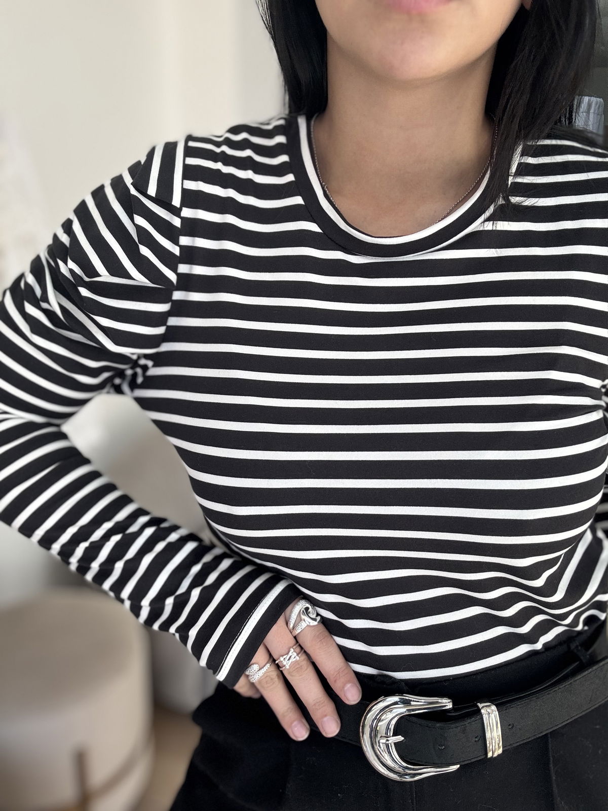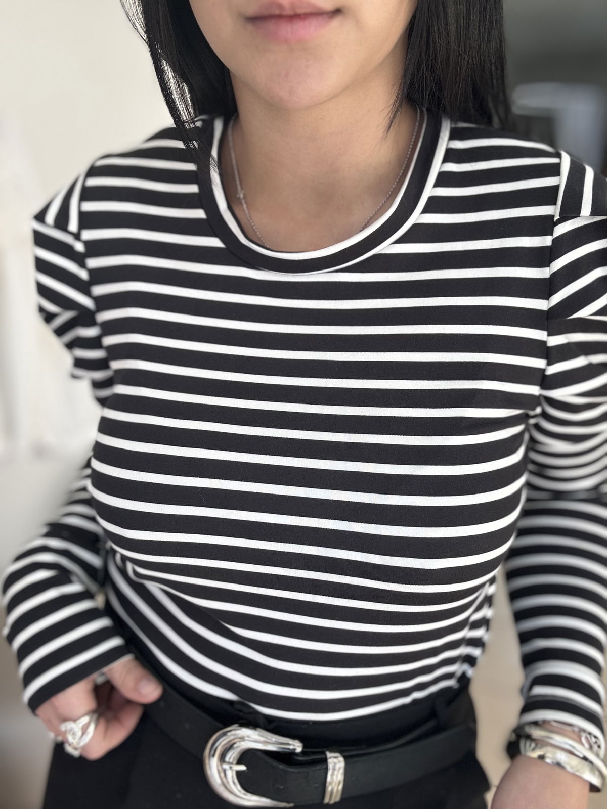 Remera manga larga a rayas, manga princesa. La tela es de modal soft, calentita y súper elastizada. Es un modelo super canchero para levantar tus outfit sin dejar de estar cómoda!