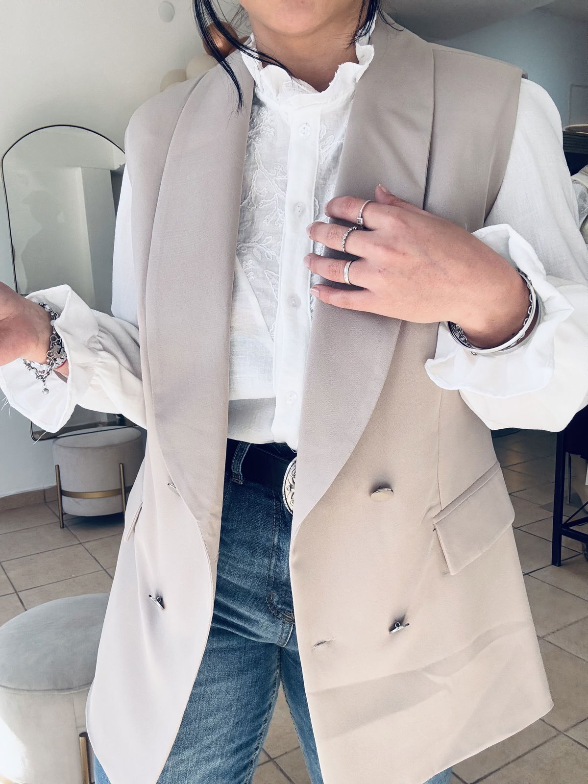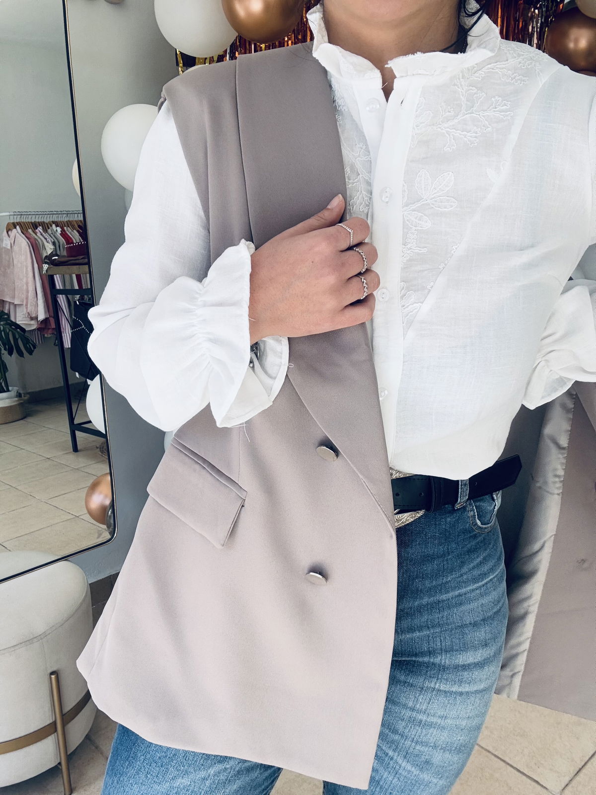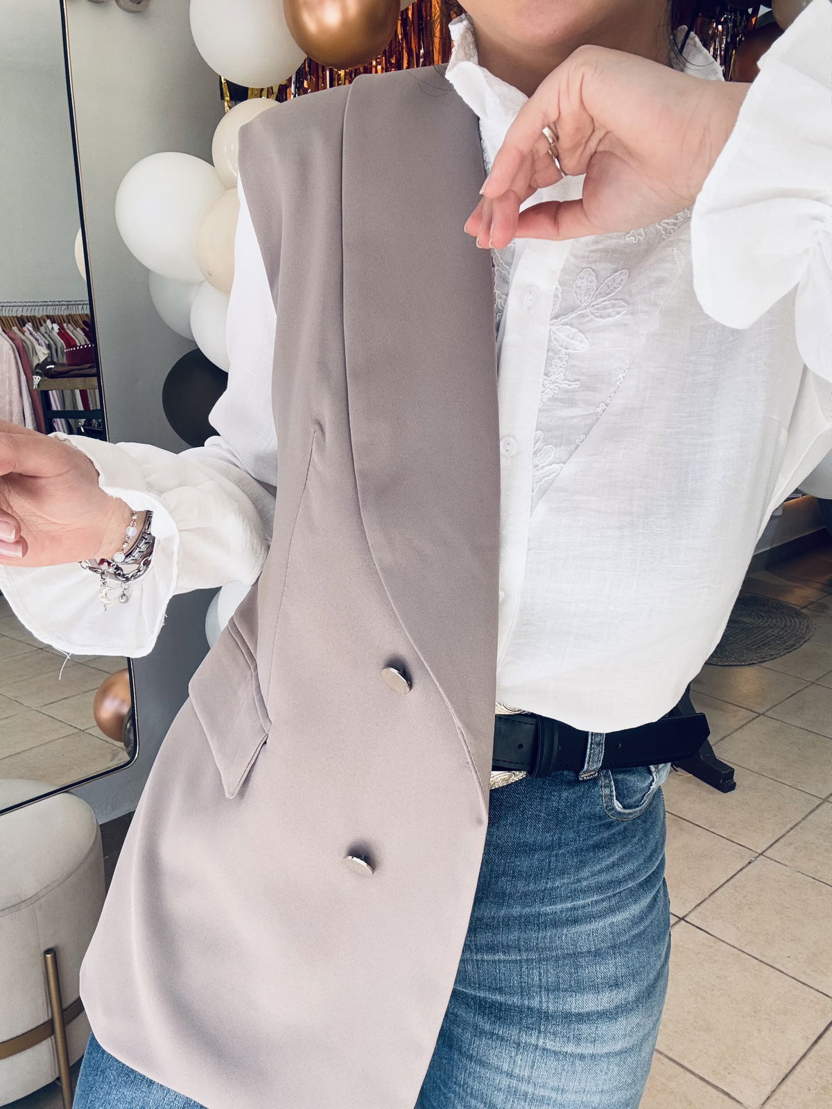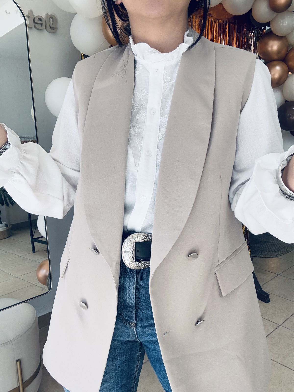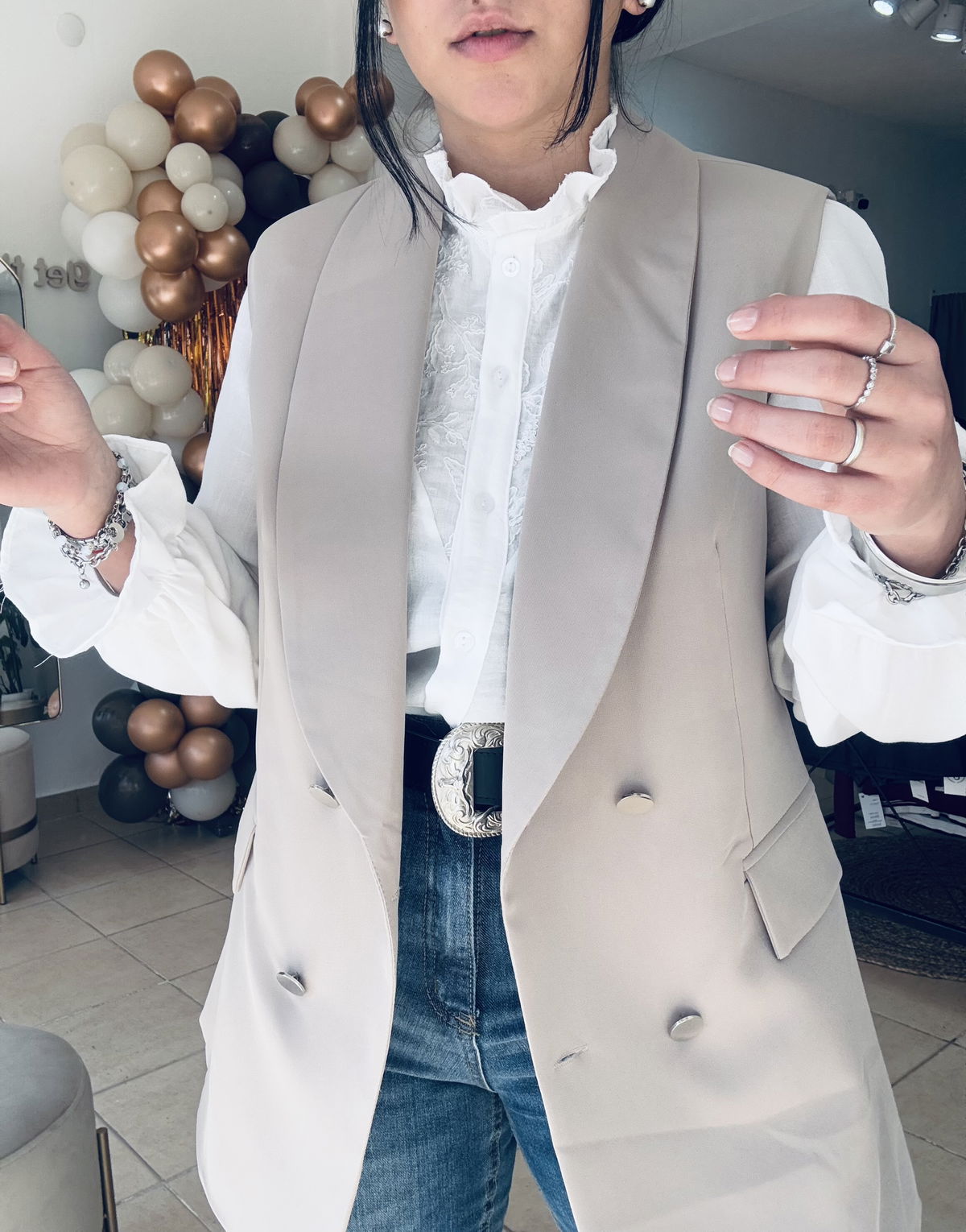 Talle cumplido, Lau está usando el talle 40 (que sería un M)