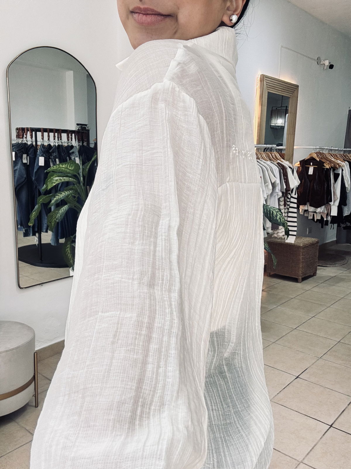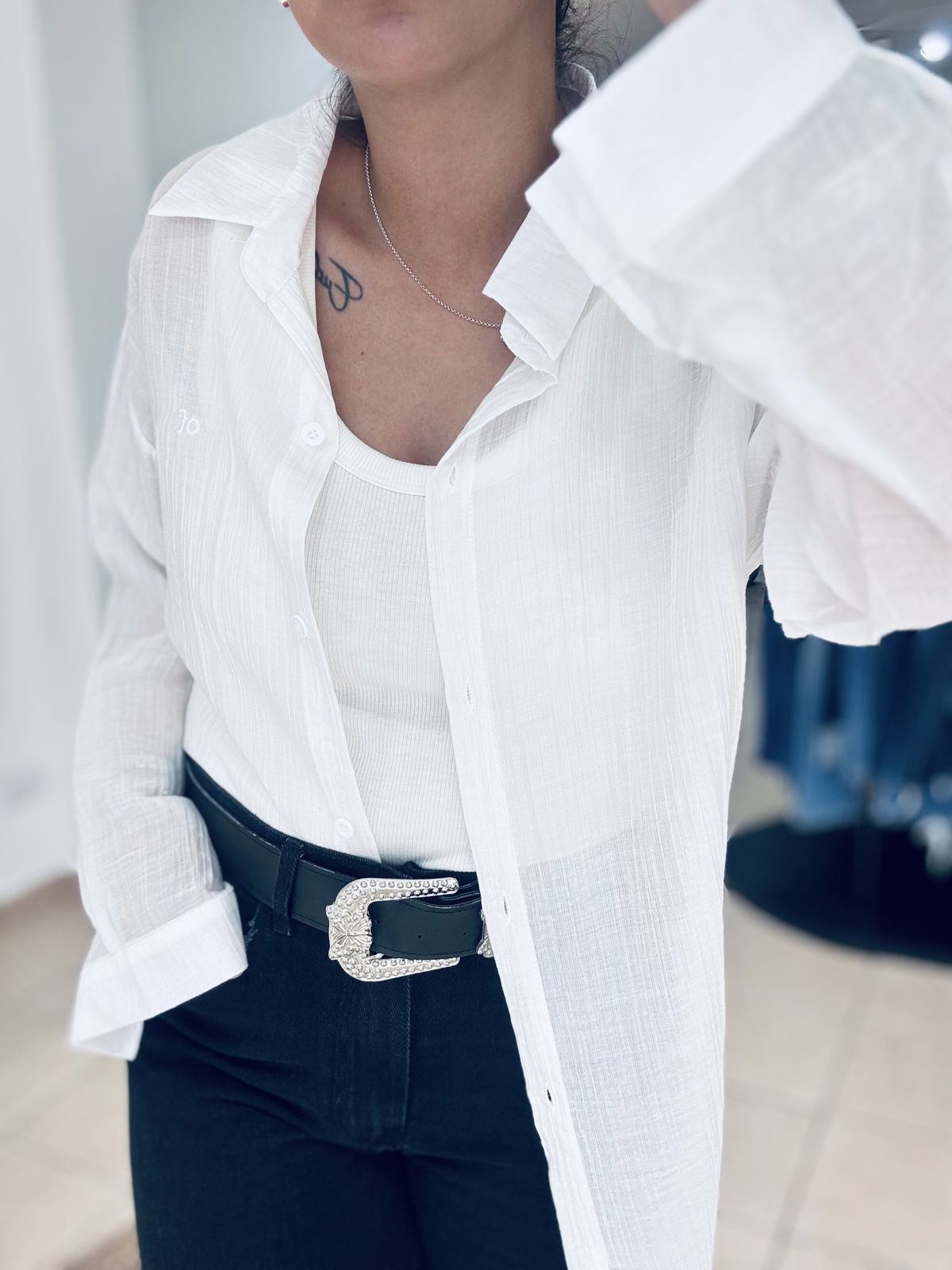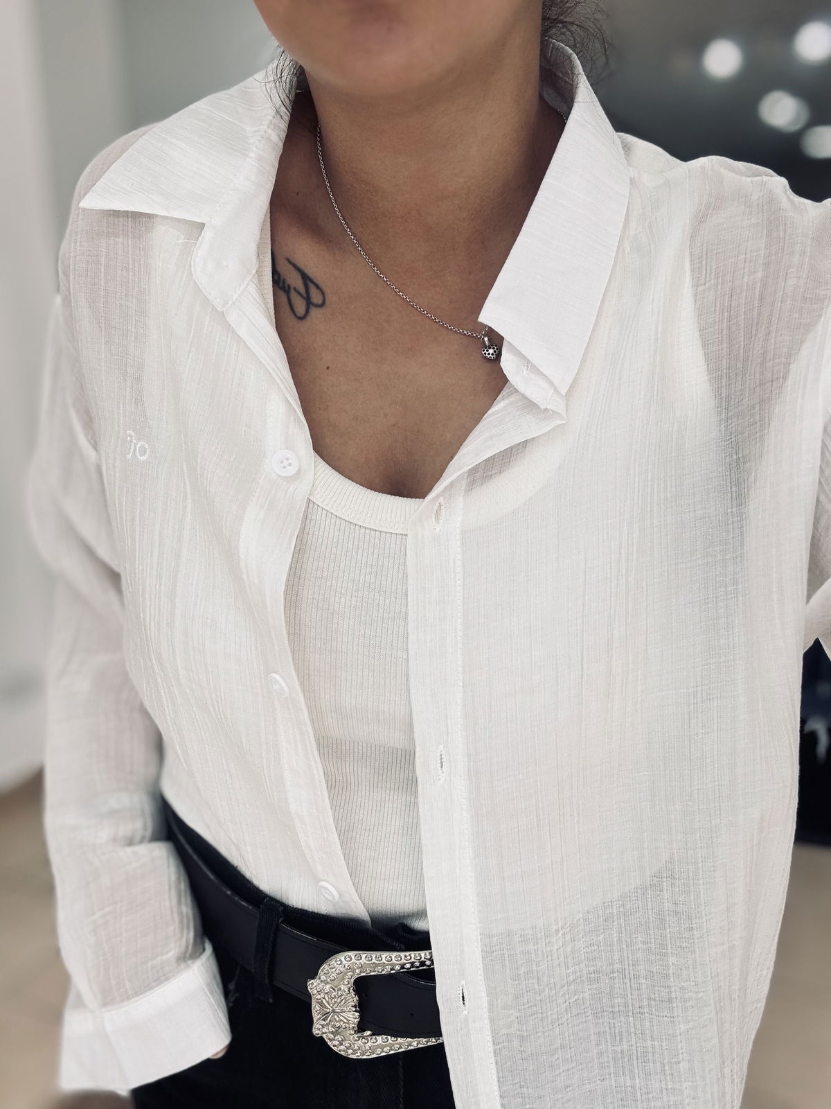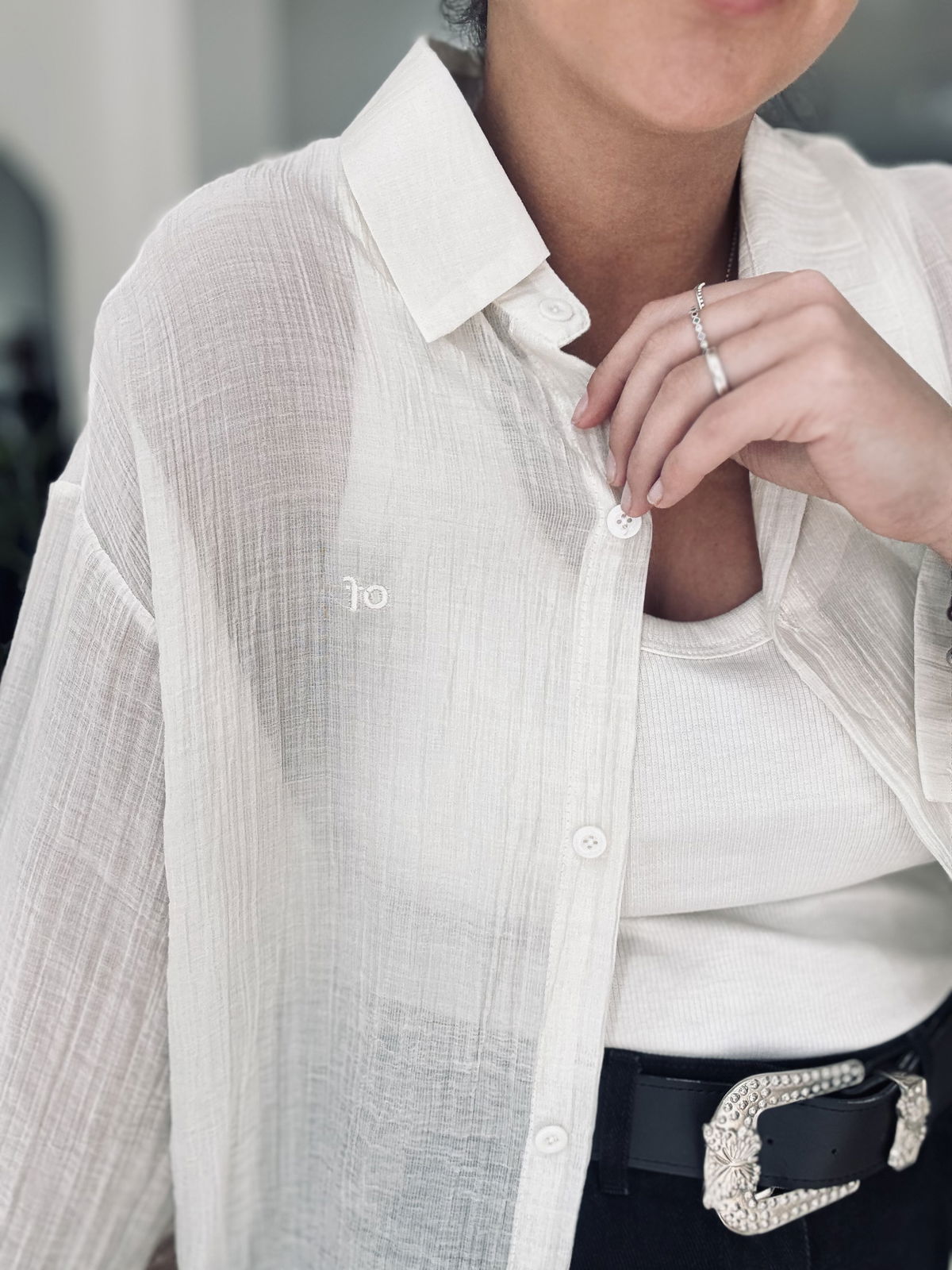 Camisa de gasa premium, estilo oversize. Tiene bordados en letras adelante y atrás, súper delicada, fresca, fina. Idealara usar esos días de mucho calor, sola o con una basica abajo!