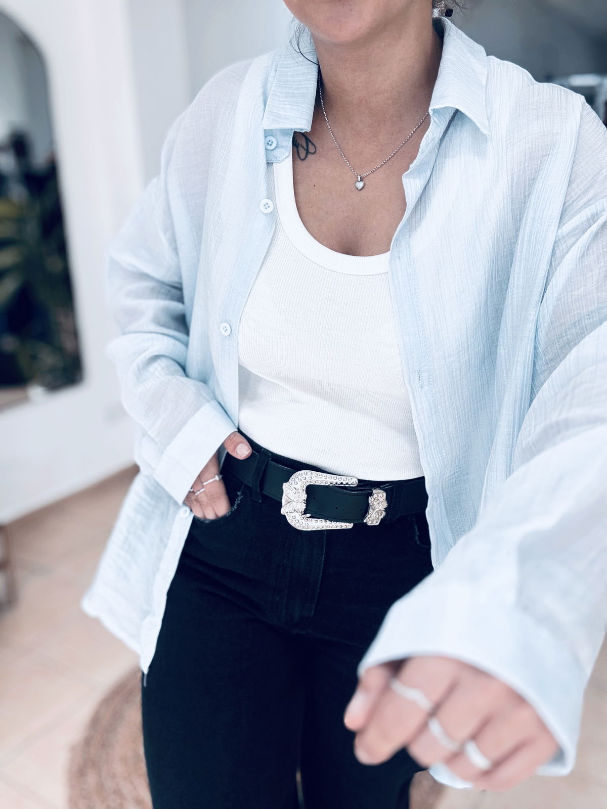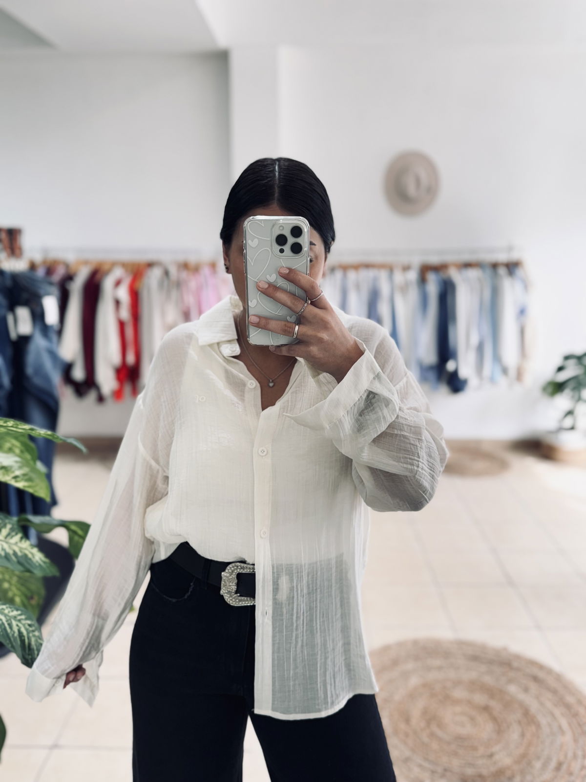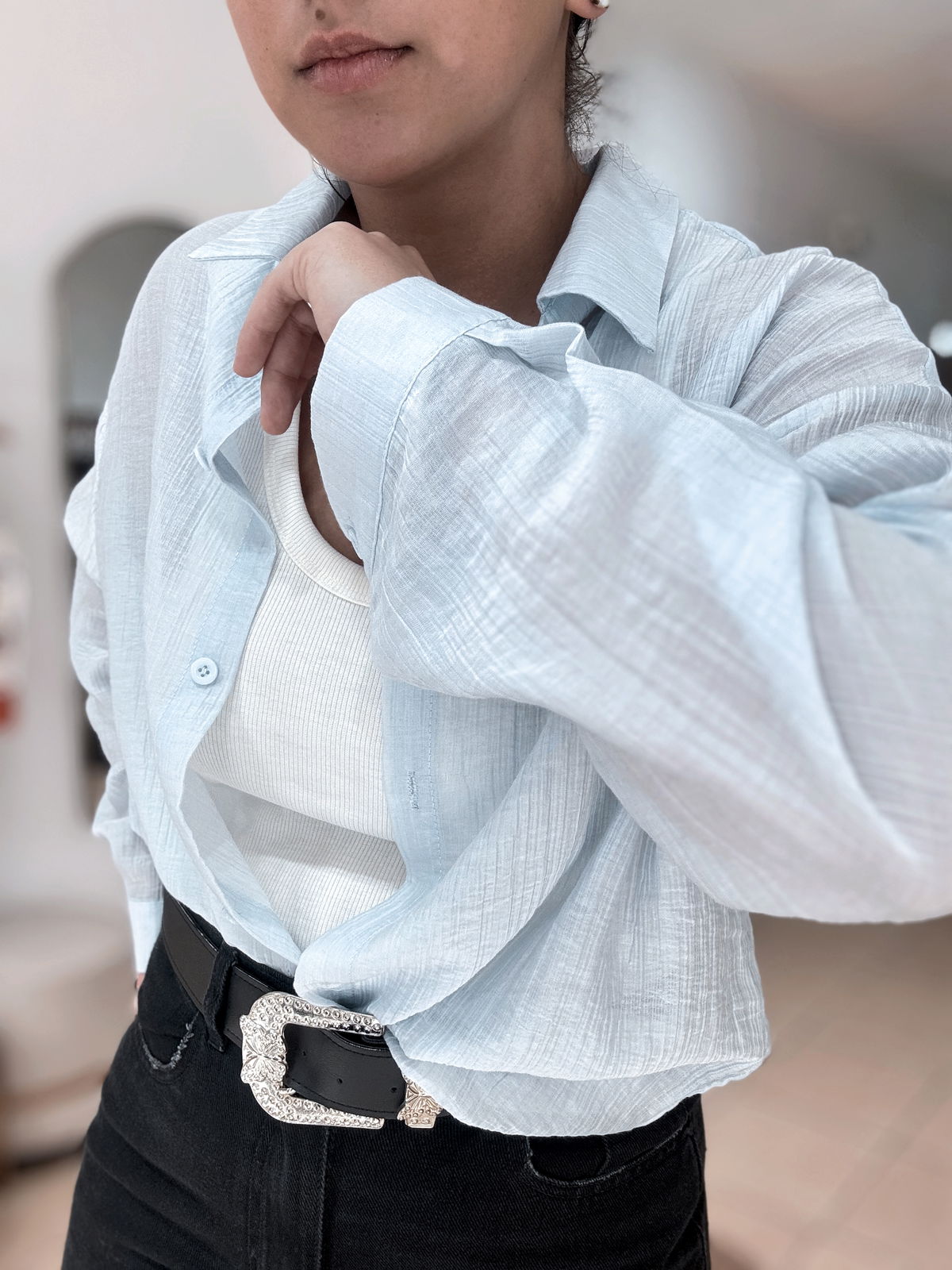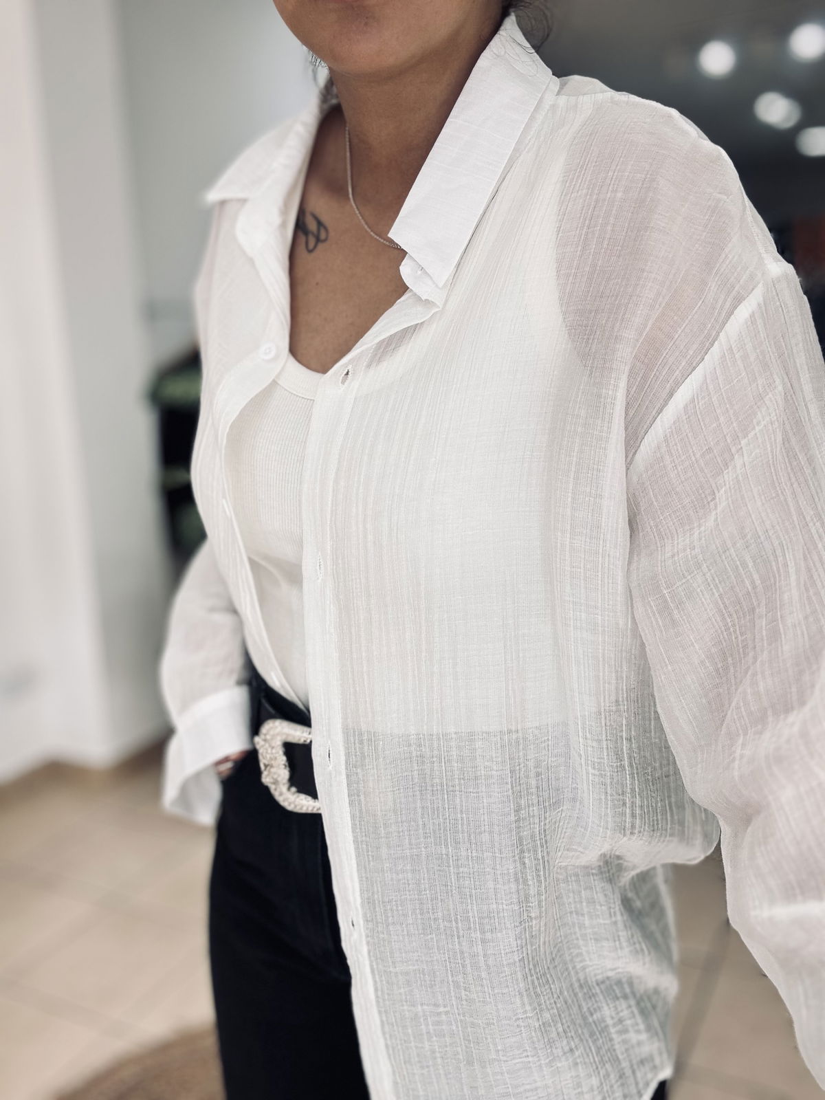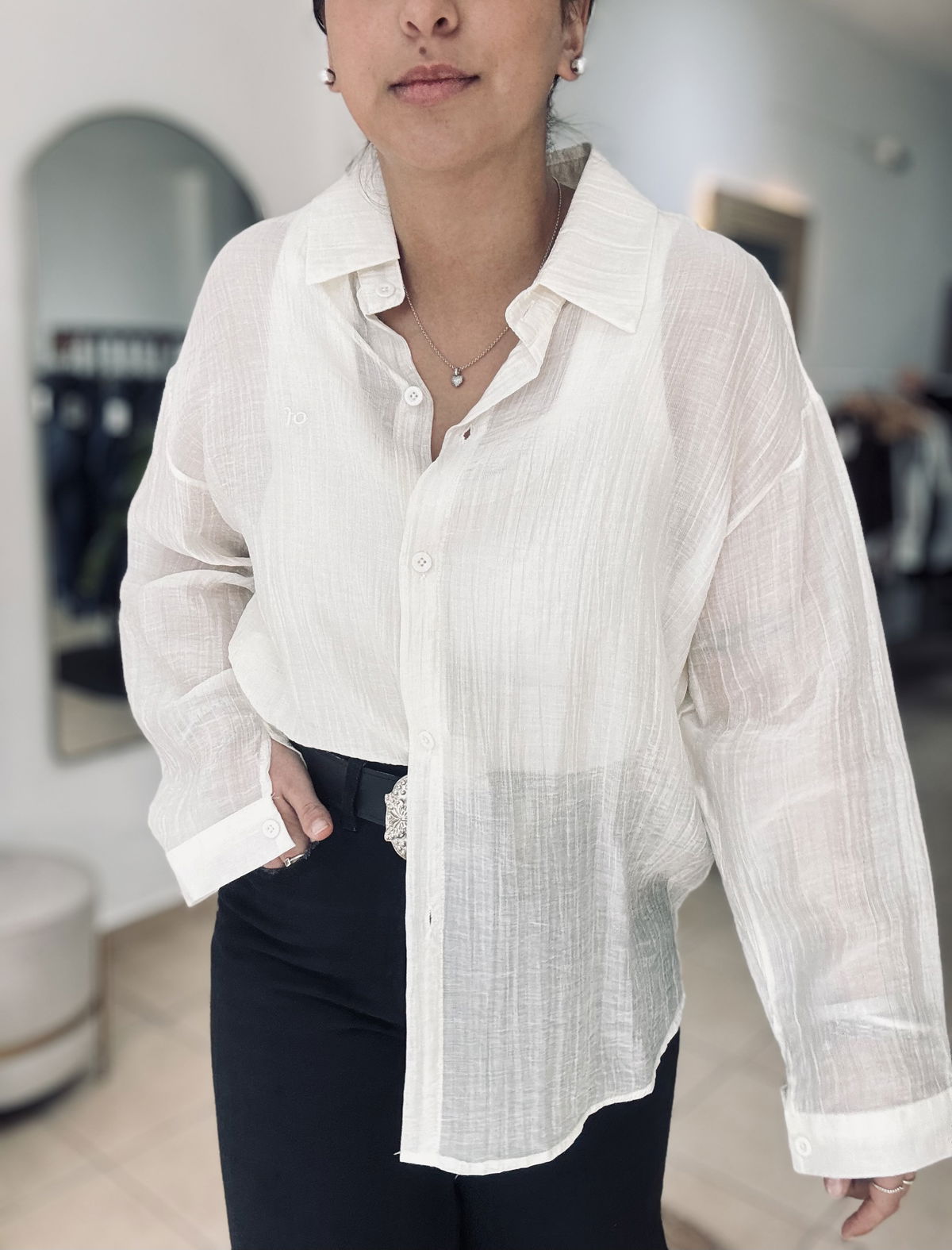 Camisa de gasa premium, estilo oversize. Tiene bordados en letras adelante y atrás, súper delicada, fresca, fina. Idealara usar esos días de mucho calor, sola o con una basica abajo!