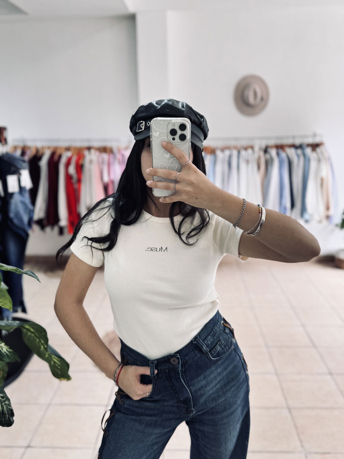 Es un modelo entallado, la modelo está usando el talle 1y tiene 90 de busto