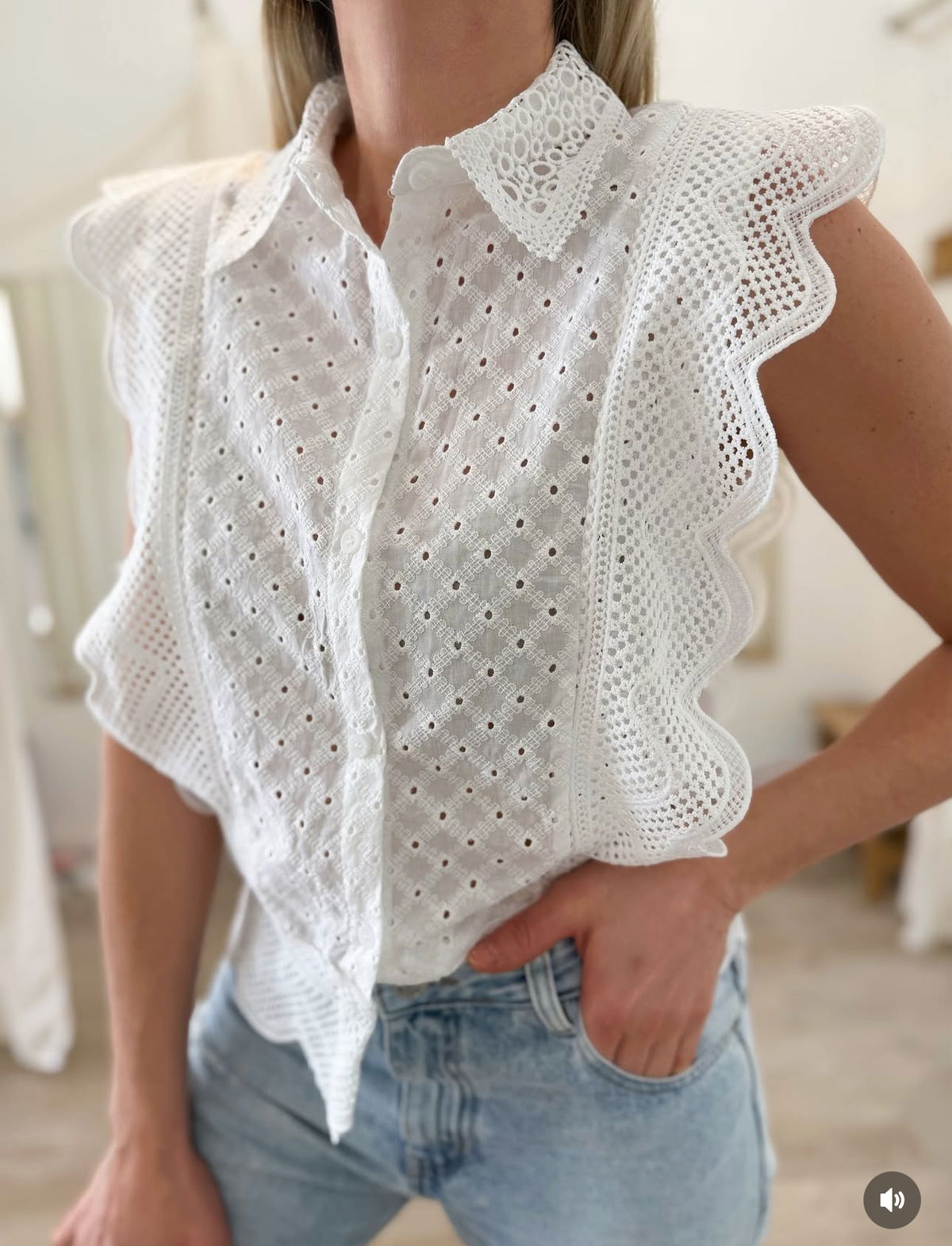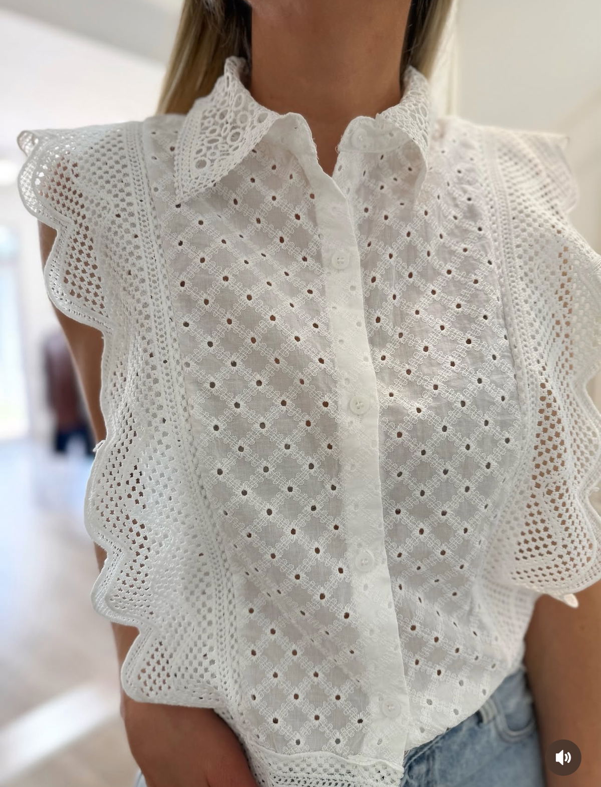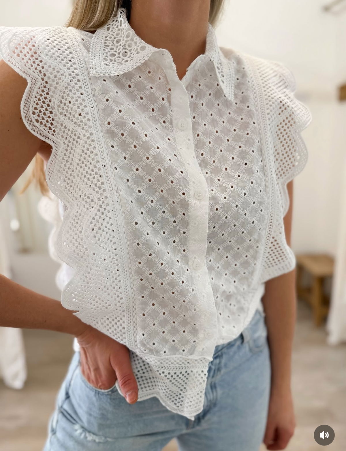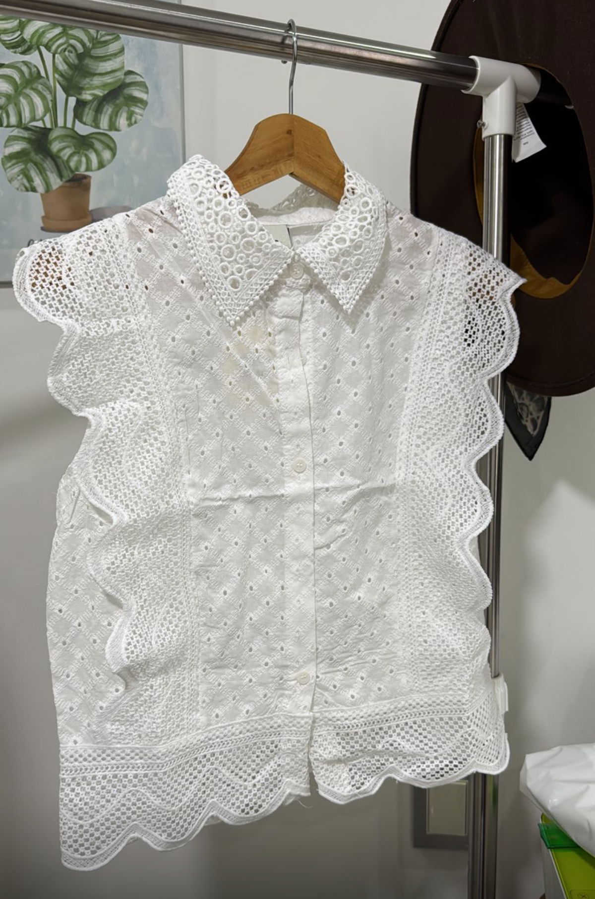 Camisa manga corta de broderie, estilo súper romántico, fino. Un básico que no pasa de moda