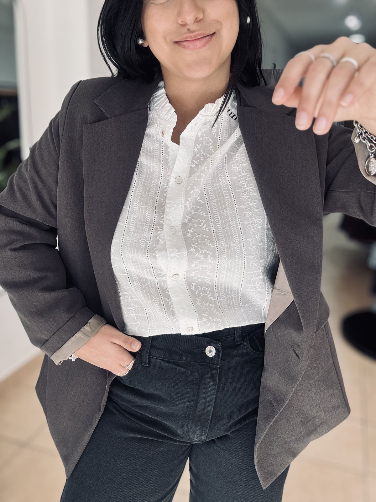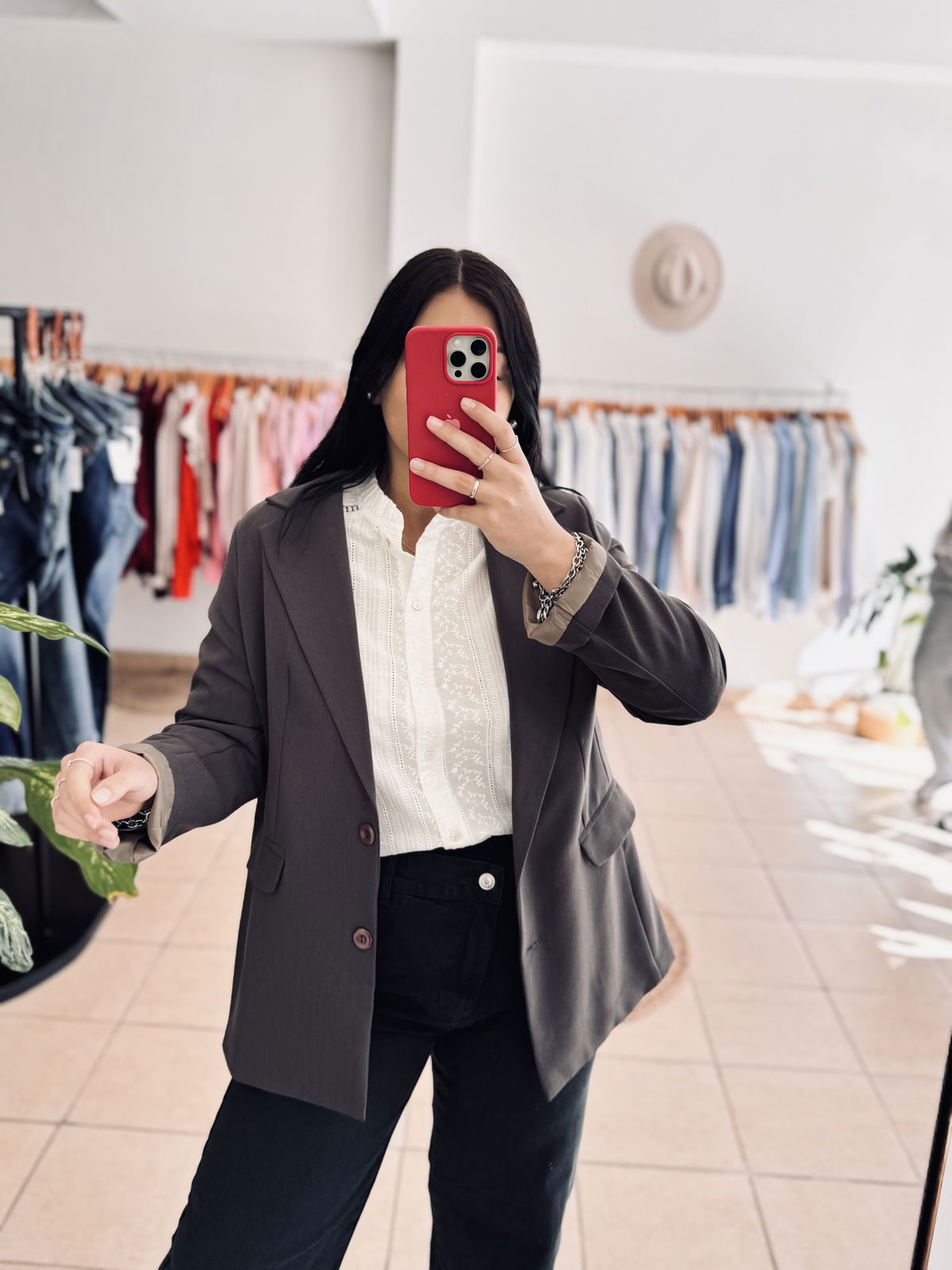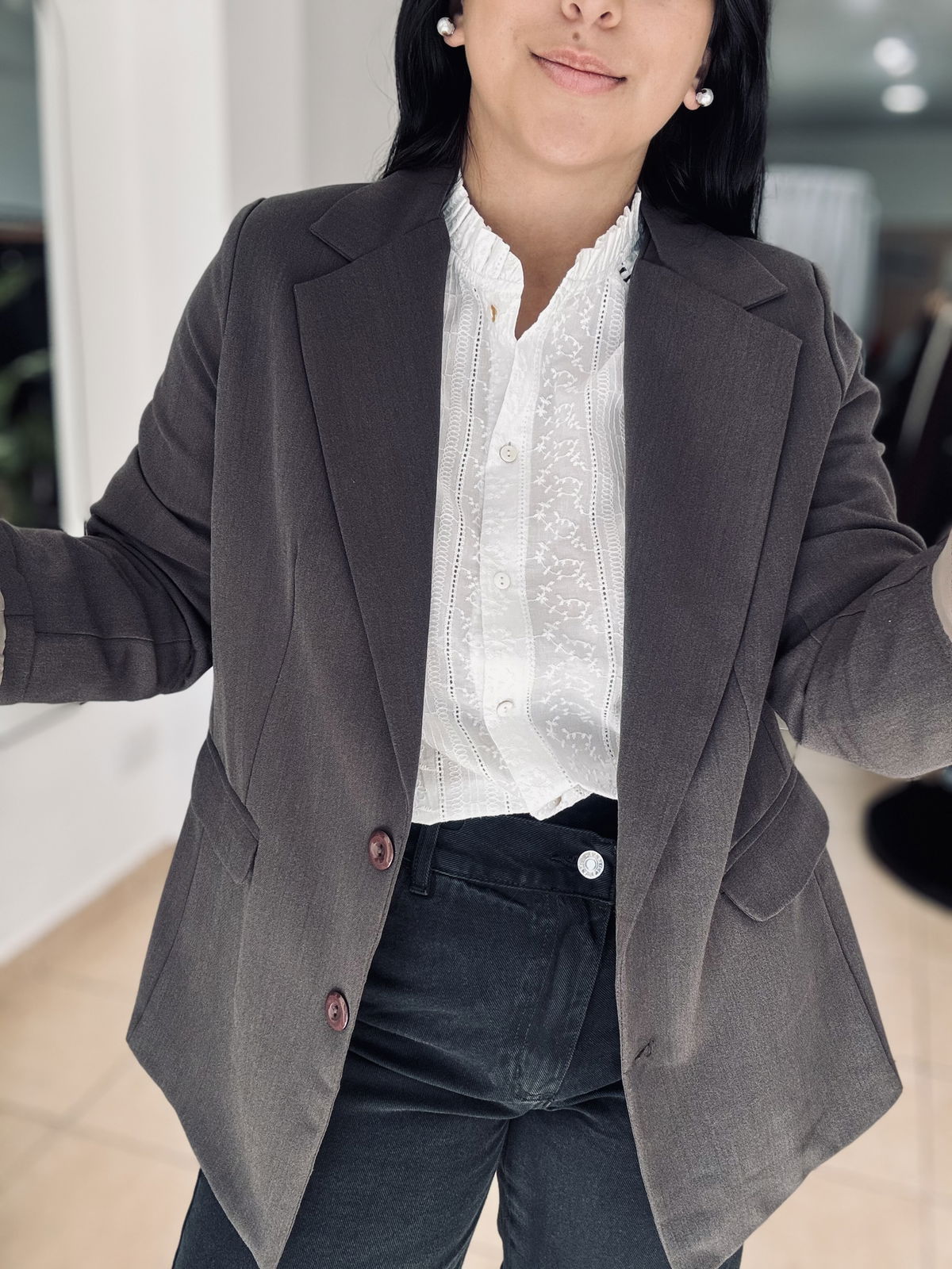 Un comodin en estilo formal y delicado. Con cuello smoking y cierre por botones, sastrero de calidad premium, forrado íntegramente en tafeta. La moldería con pinzas te asegura que calce perfecto, mientras que las hombreras crean una figura súper prolija y destacada ❤️