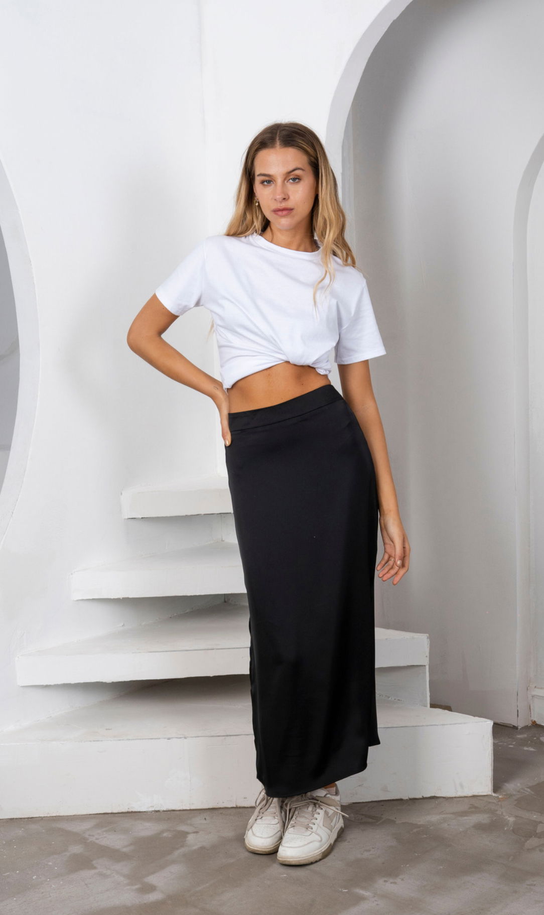 Falta MIDI de satén con cierre invisible, tajo lateral. Talle único, abarca hasta un 40! Una clásica en tendencia que podes usar de día con Remerones y de noche con un top