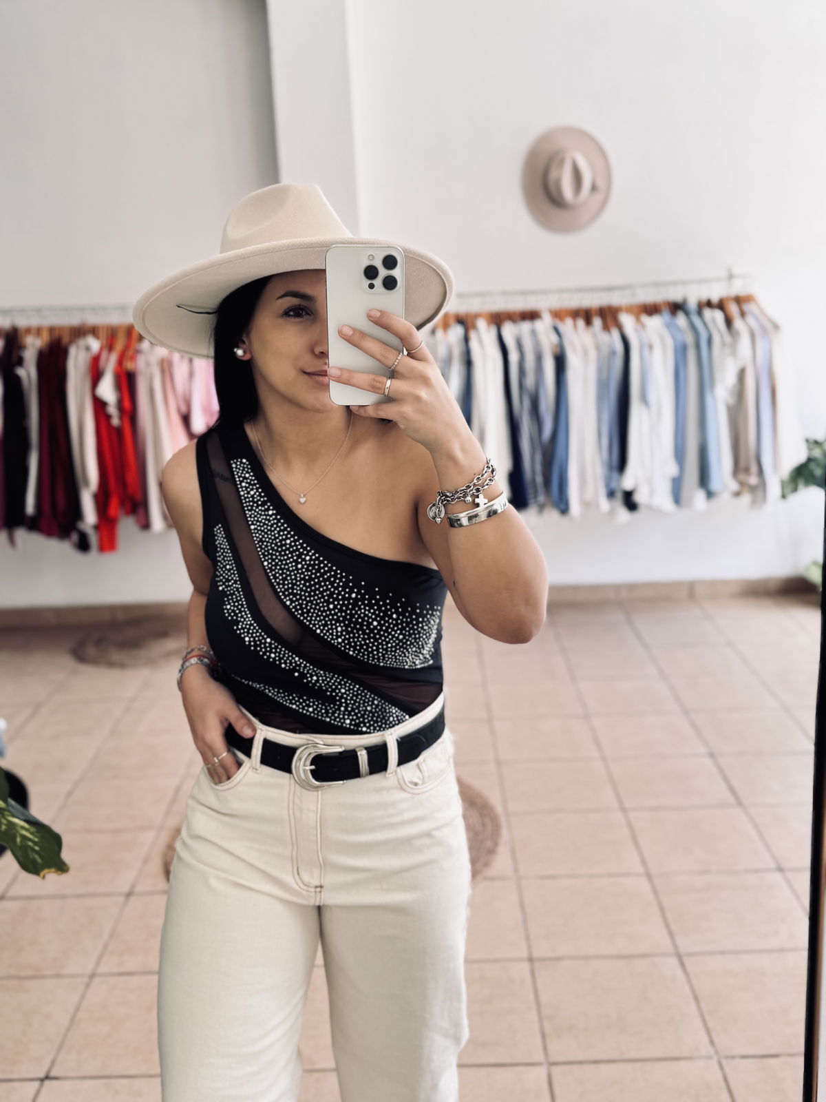 Body un hombro de lycra y tul con stras, tiene broche en su parte inferior. el talle es único, va hasta un talle L (100 aproximadamente de busto)