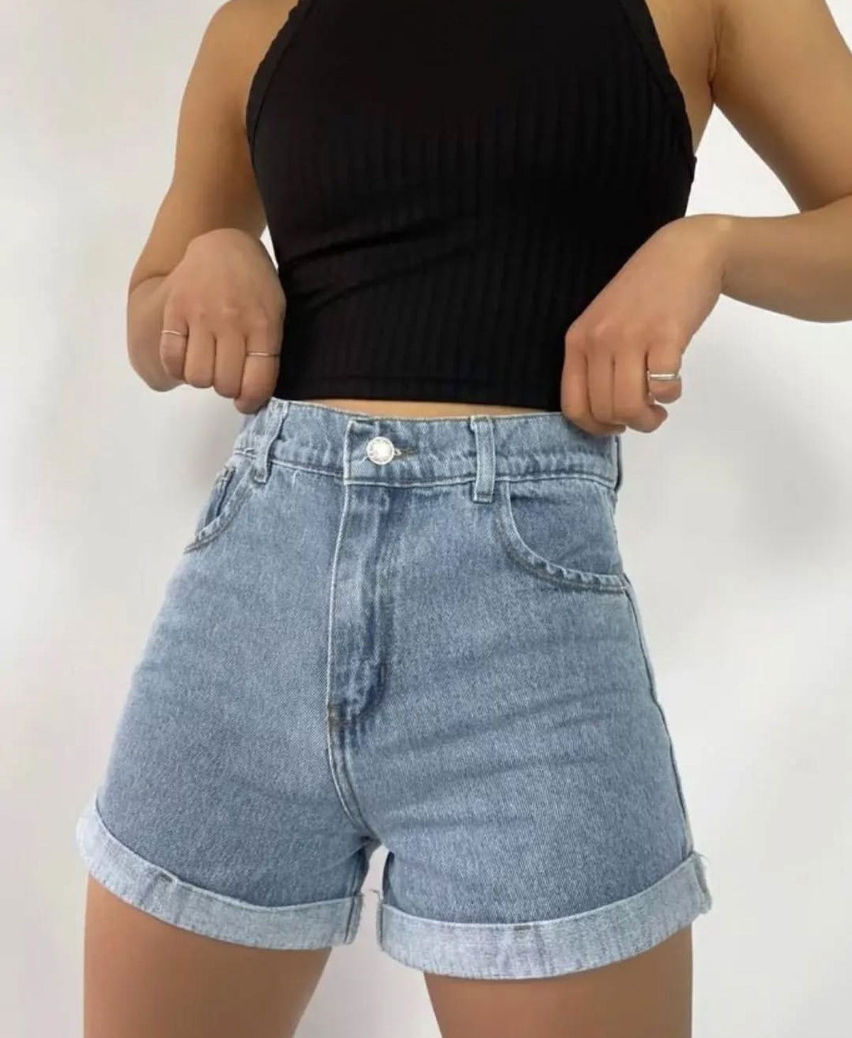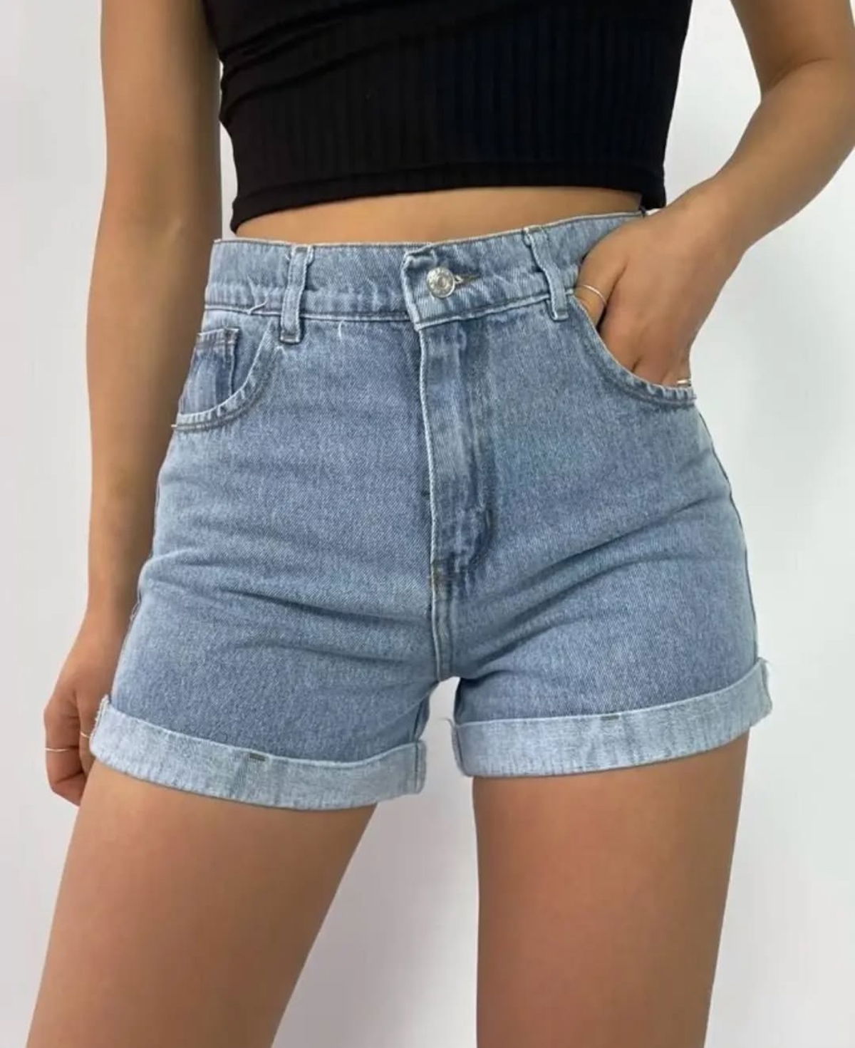 Short tiro alto rígido, con dobles en la parte inferior. Recorda que el rígido siempre afloja un poquito, el talle es cumplido! La modelo está usando talle 36
