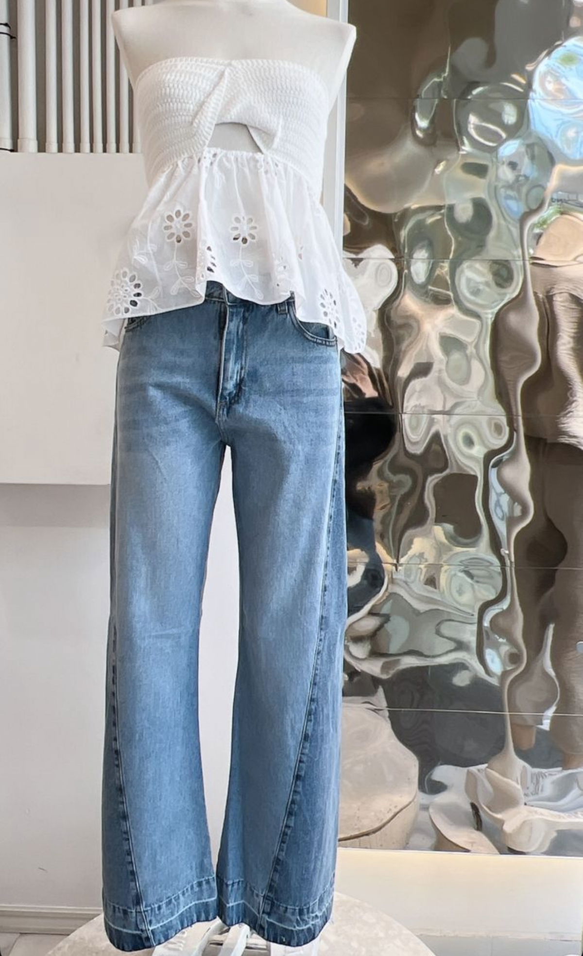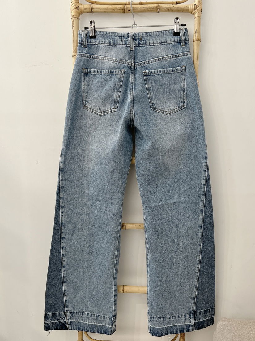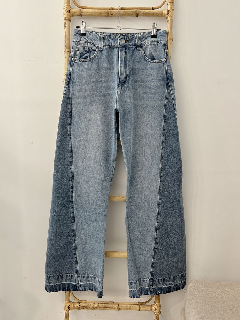 Jean wide leg combinado rígido, tiro medio-alto. Cancherisimo, la combinación de colores le da un toque muy diferente a tu outfit!