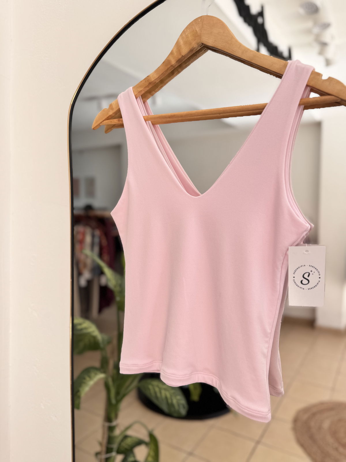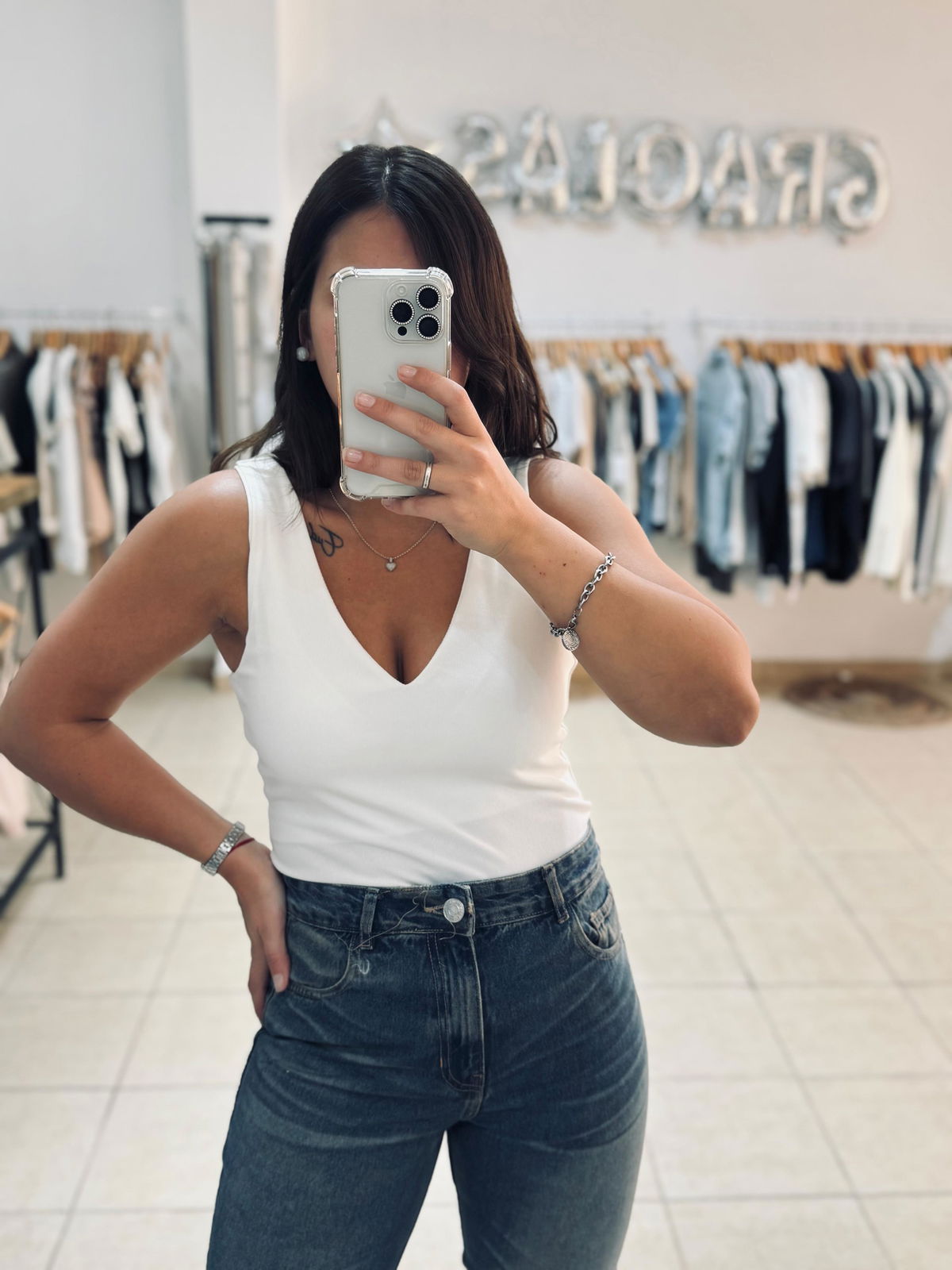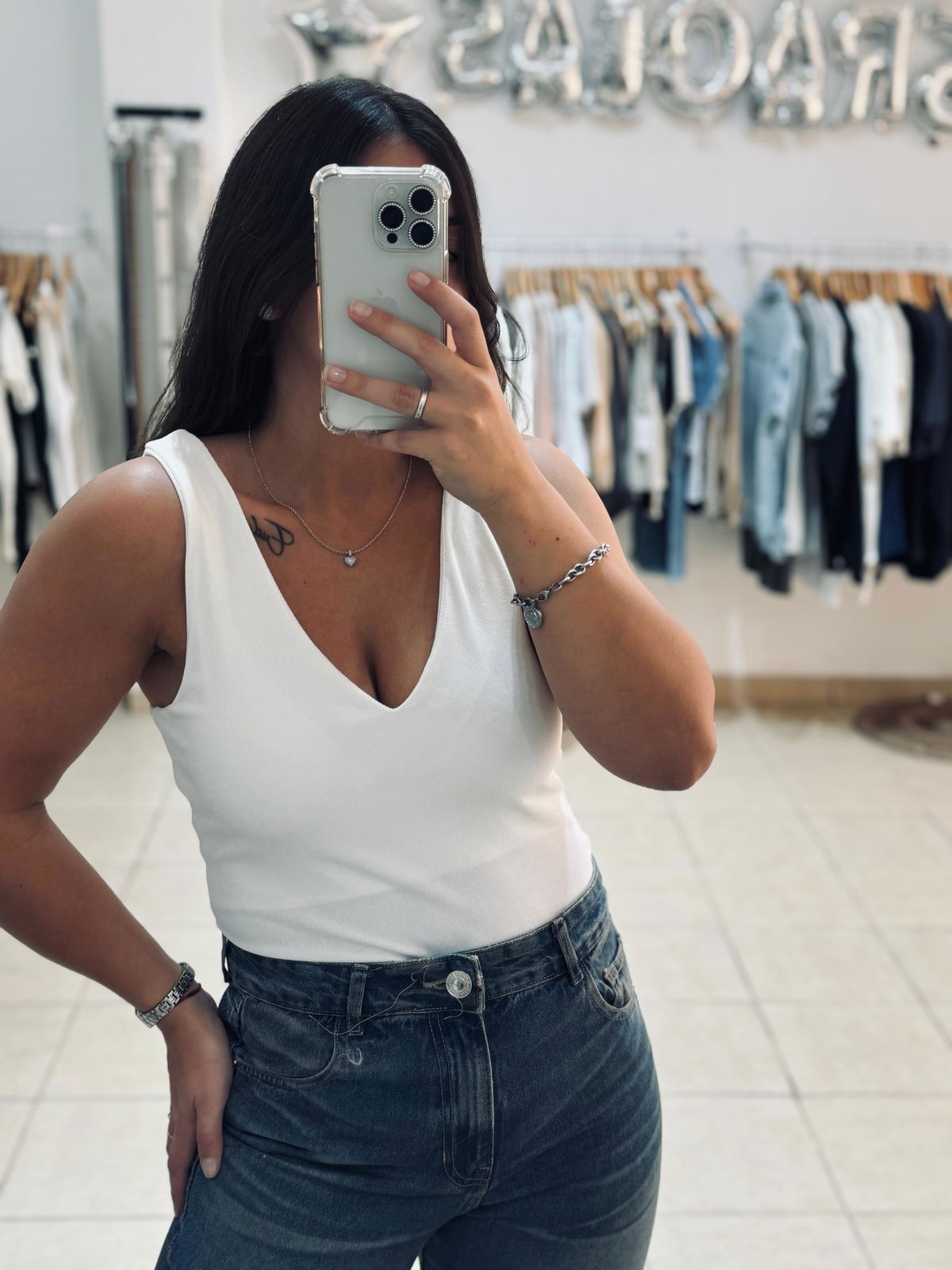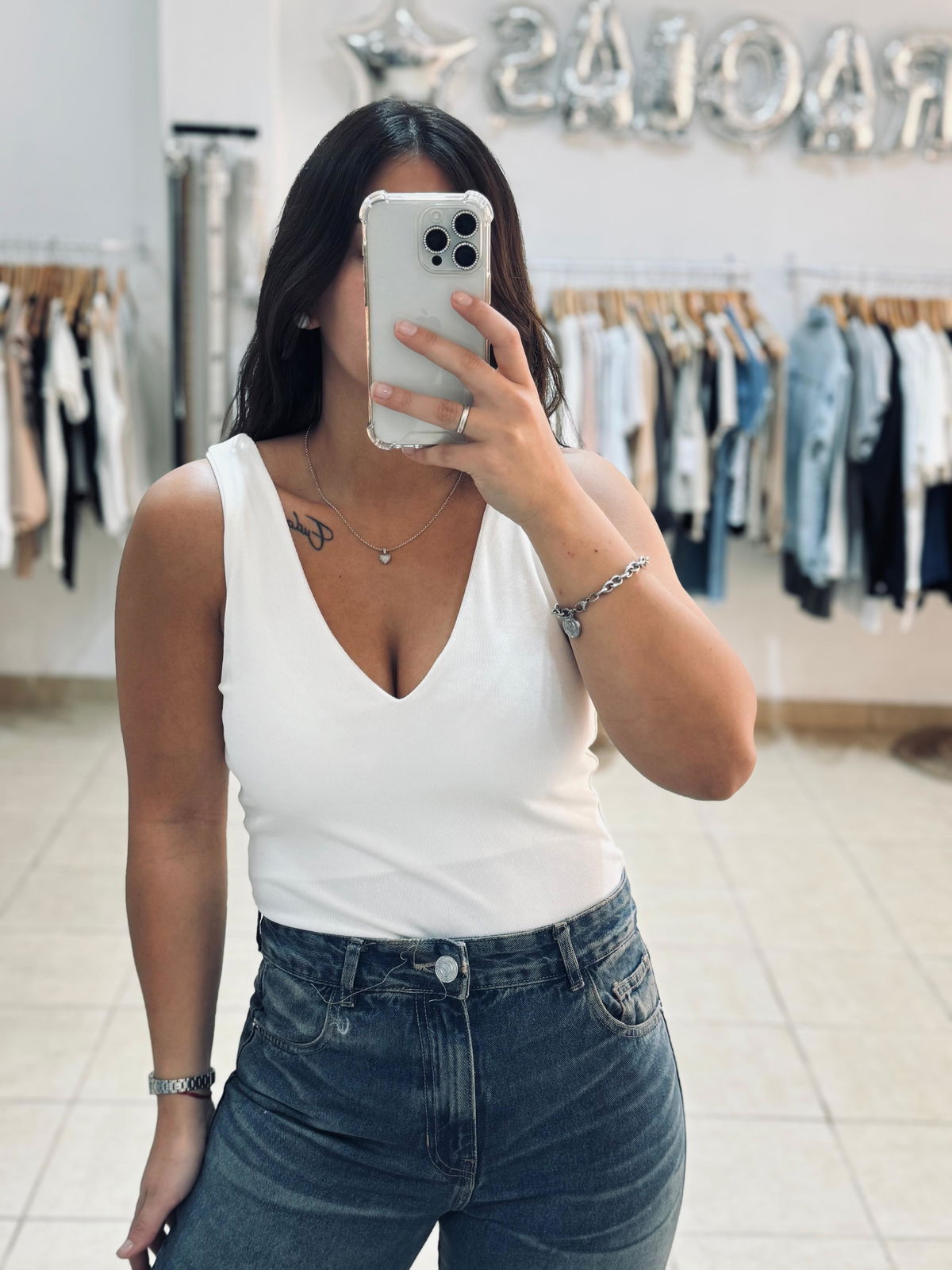 Musculosa de doble lycra, para que no transparente. Es un modelo al cuerpo, va hasta un talle M/L