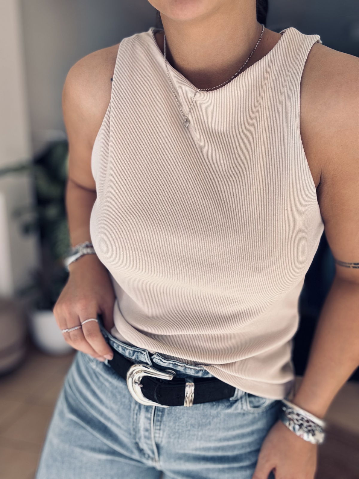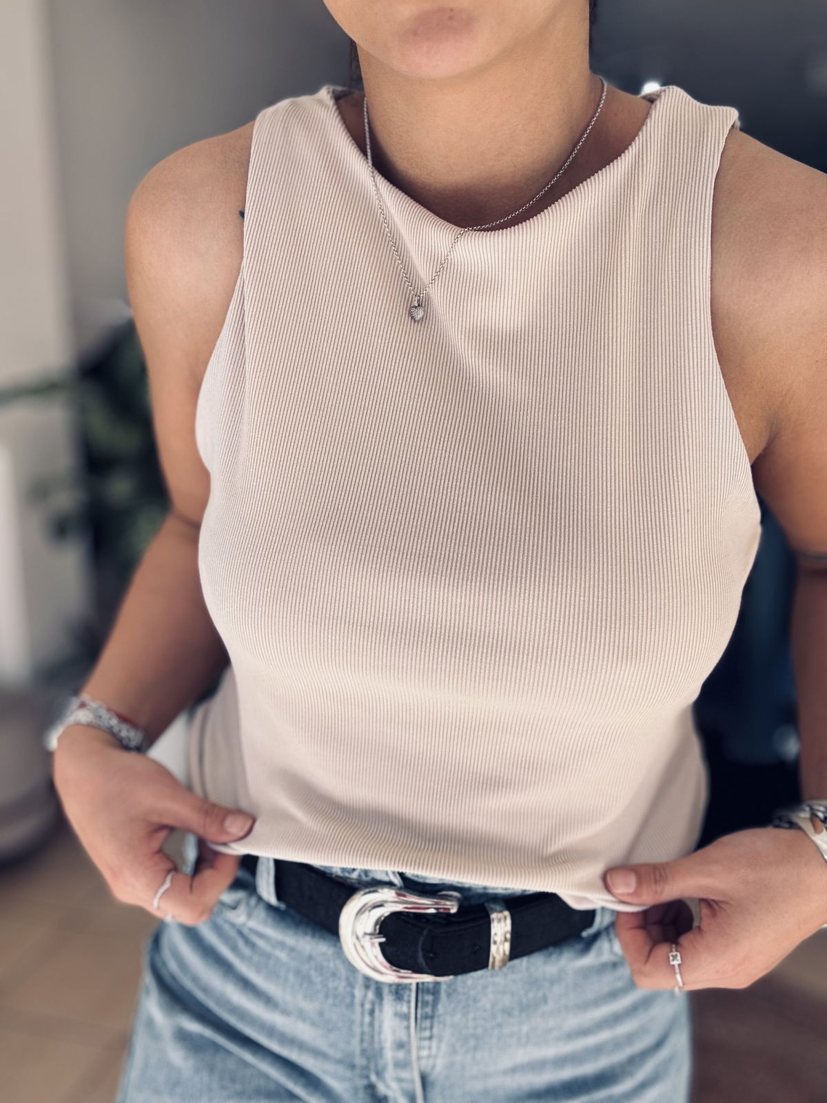 Musculosa de morley cuello tao cerrada, el modelo es súper amplio y elastizado. Además de larguito