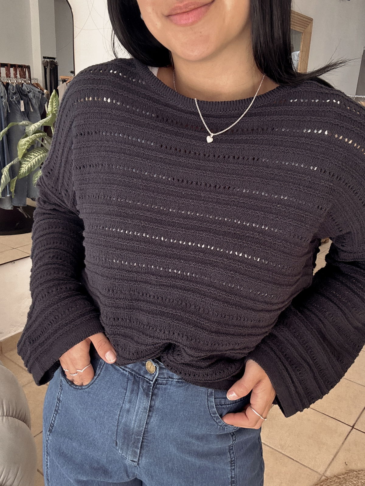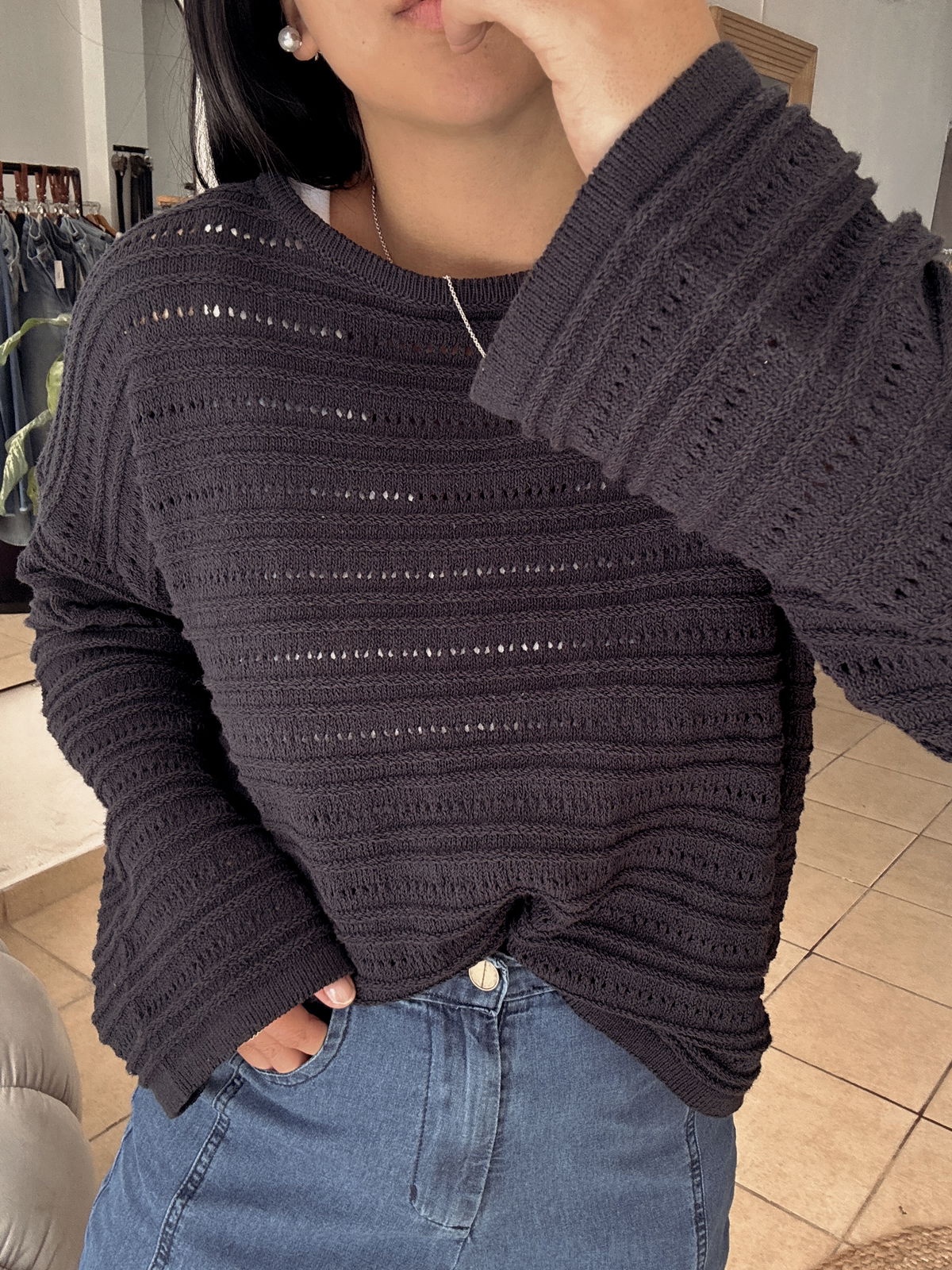 Sweater tejido de punto, 100% algodón. Es un modelo en talle único, amplio, va hasta un 4 súper bien. Un básico que usas todo el verano! Podes lookearlo con Jean y bikini