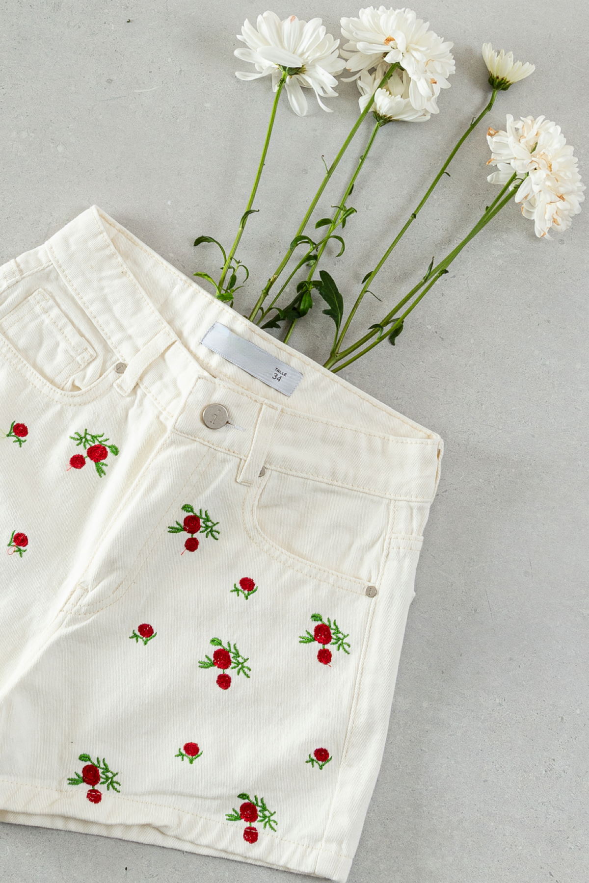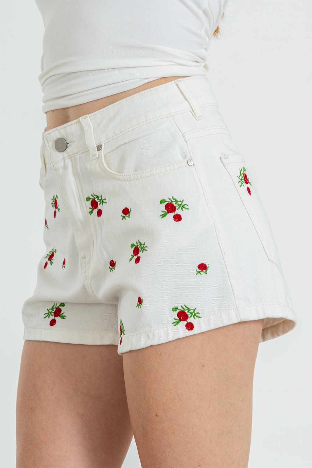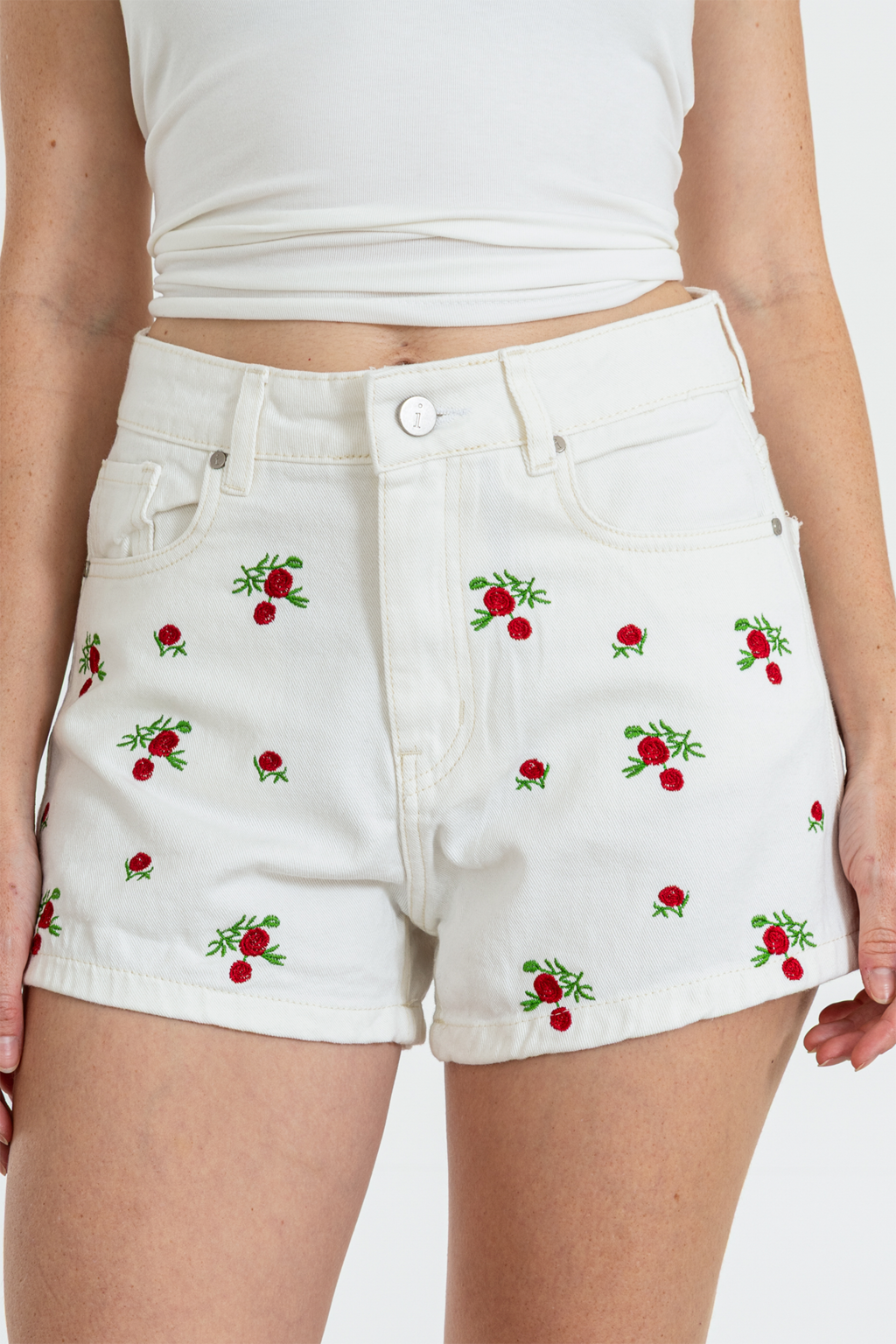 Short 100% algodón. Tiro alto con botón y tachas zamak. Bordado en la parte de adelante y liso atras! El talle es súper cumplido