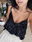 Blusa de escote v con lentejuelas de ambos lados, talle único va hasta un L