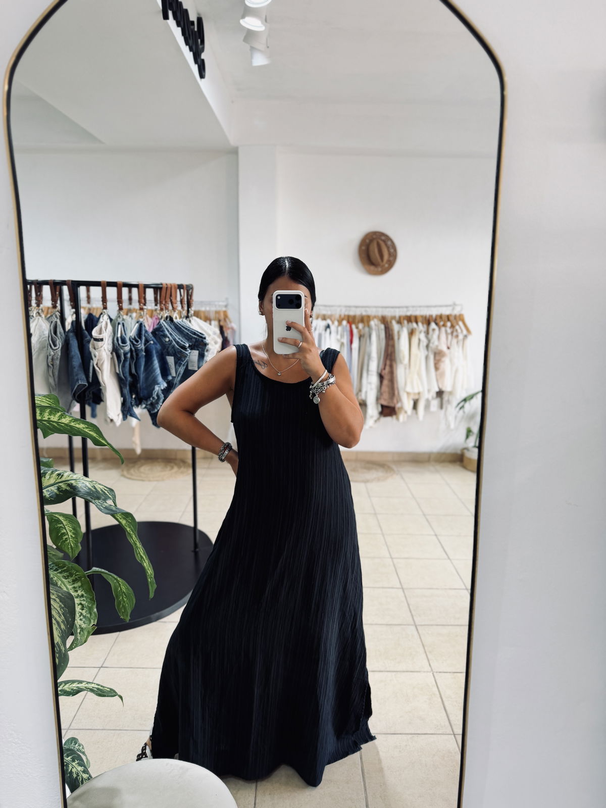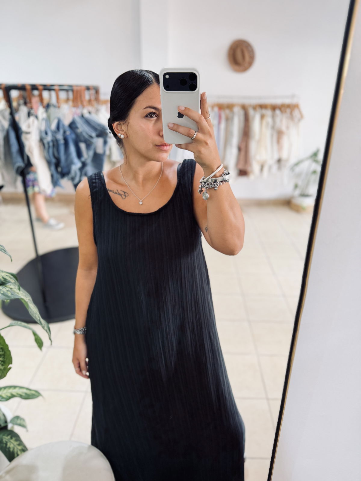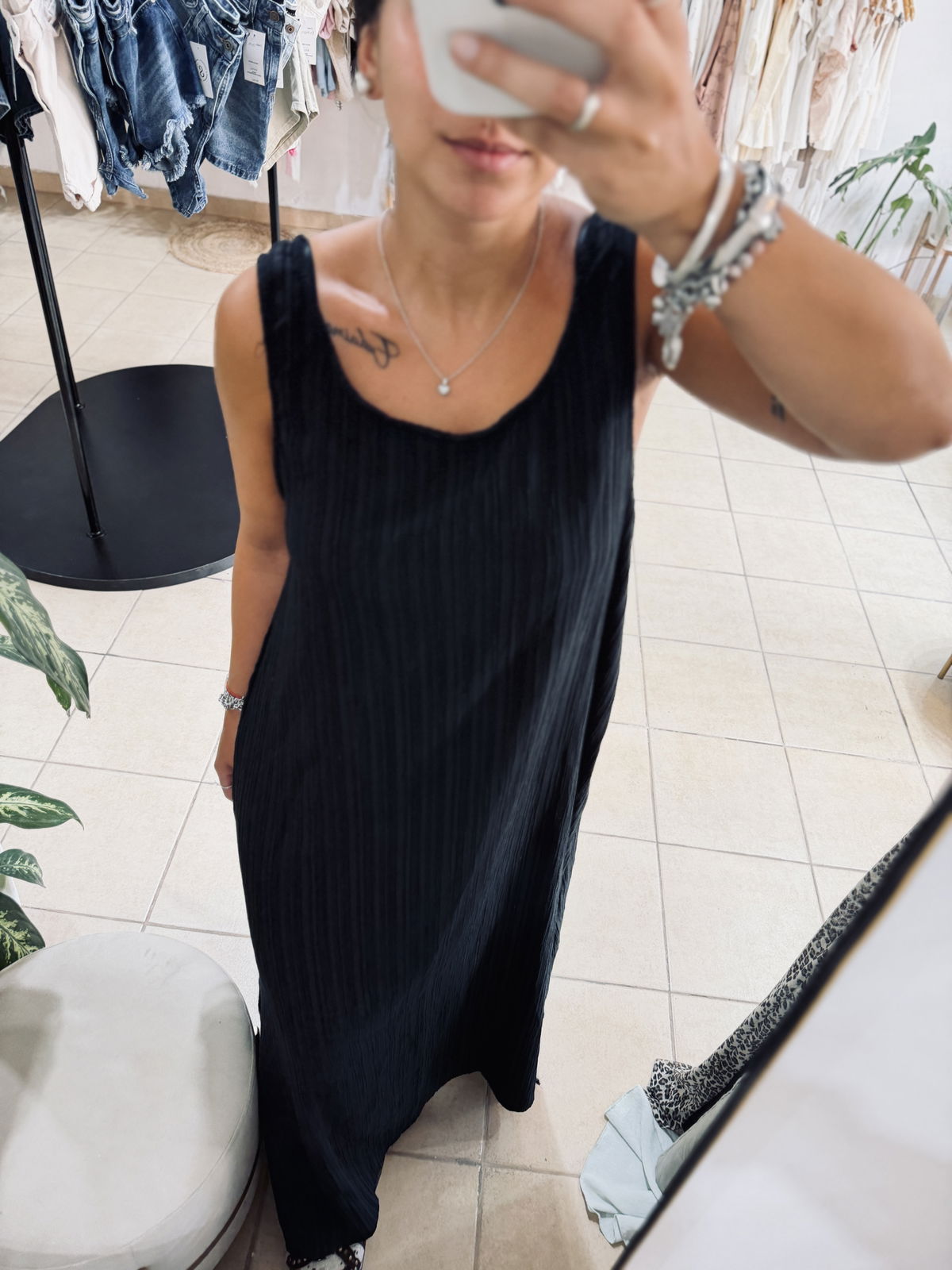 Vestido de cotón con textura, largo. espalda y cuello en U, con tajo lateral
