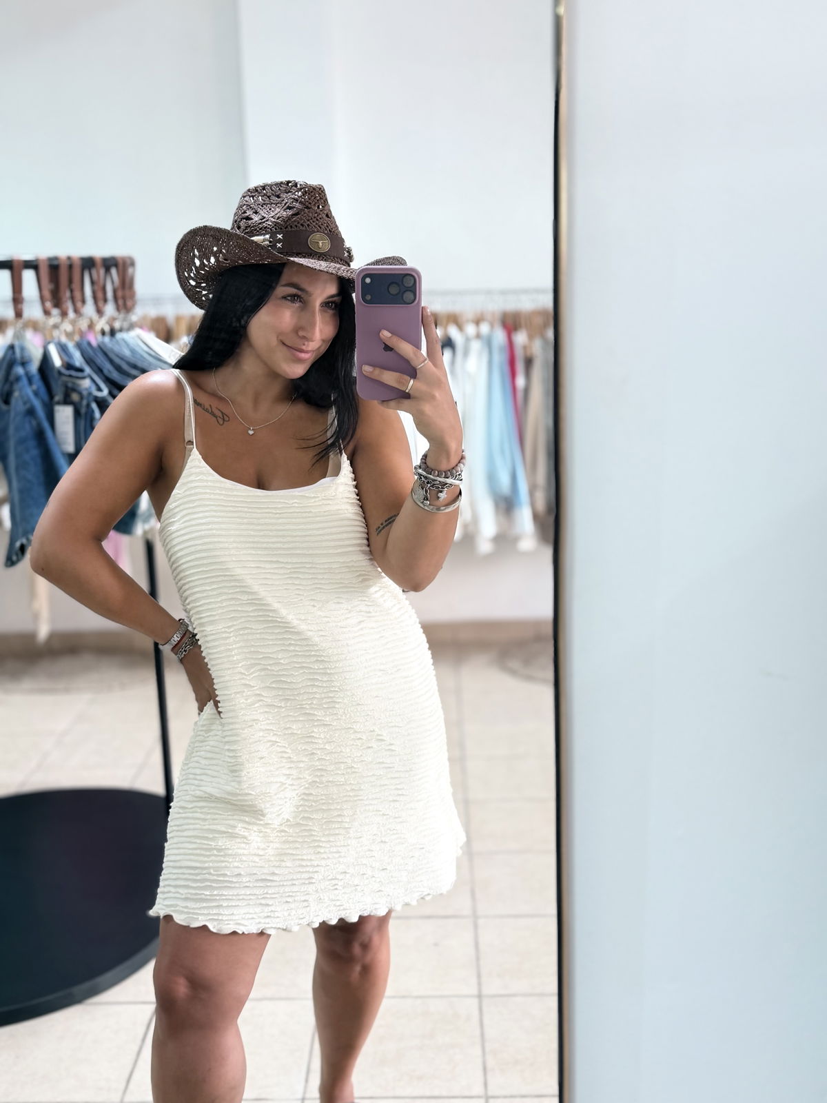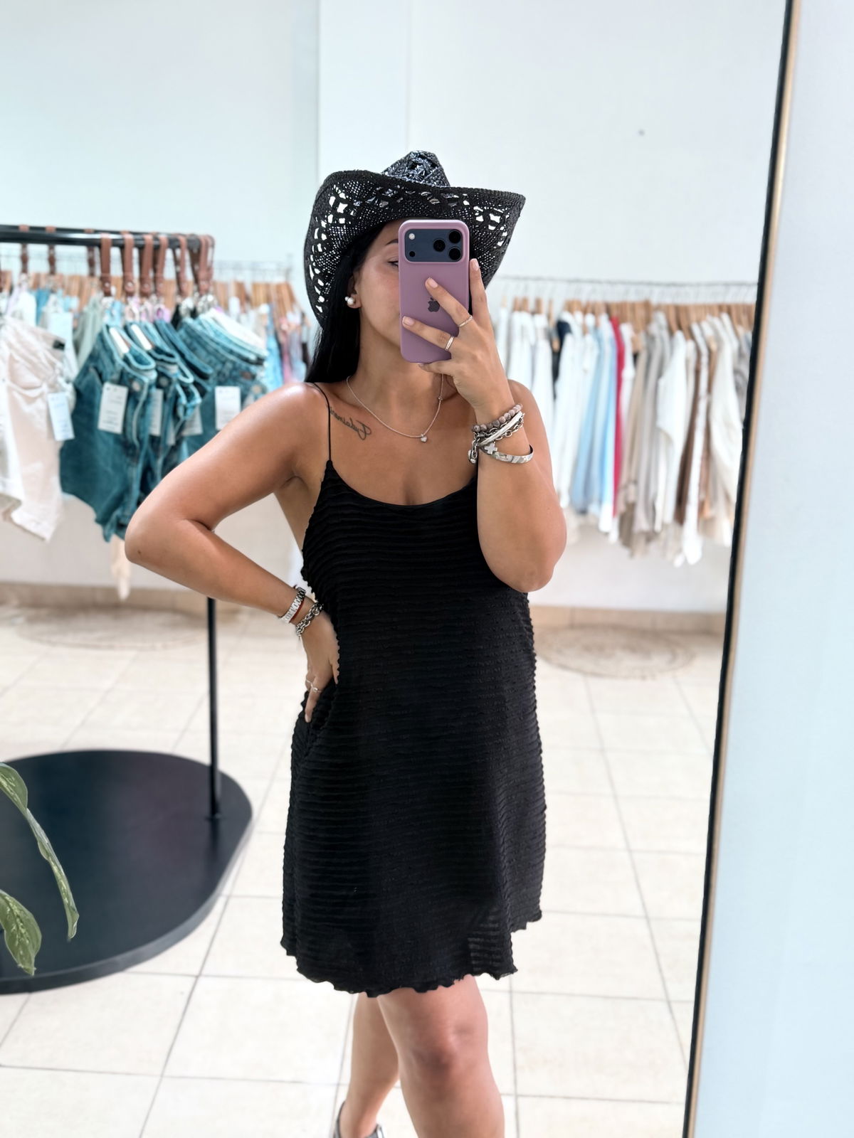 Vestido texturdo con colita de ratón, con forreria. Talle único, van hasta un XL