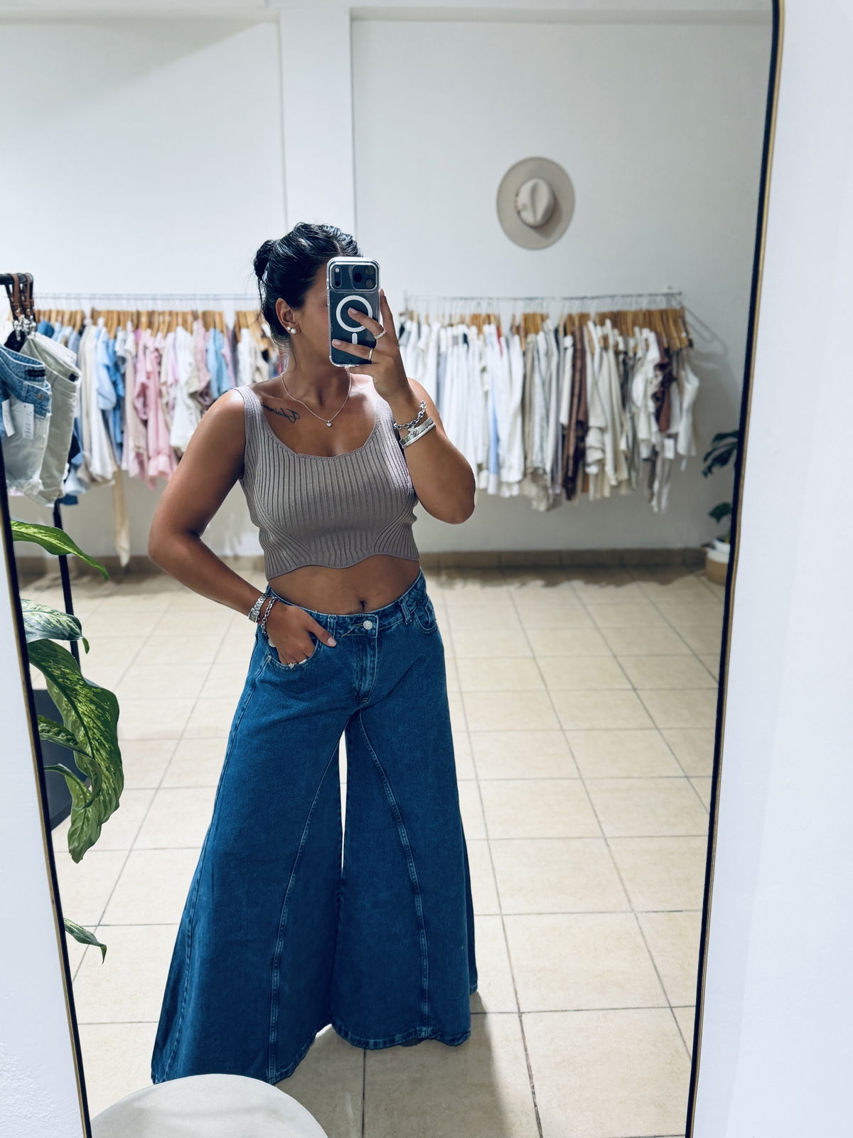súper Wide Leg rígido, lona súper blandita tiro alto, el calce es amplio!