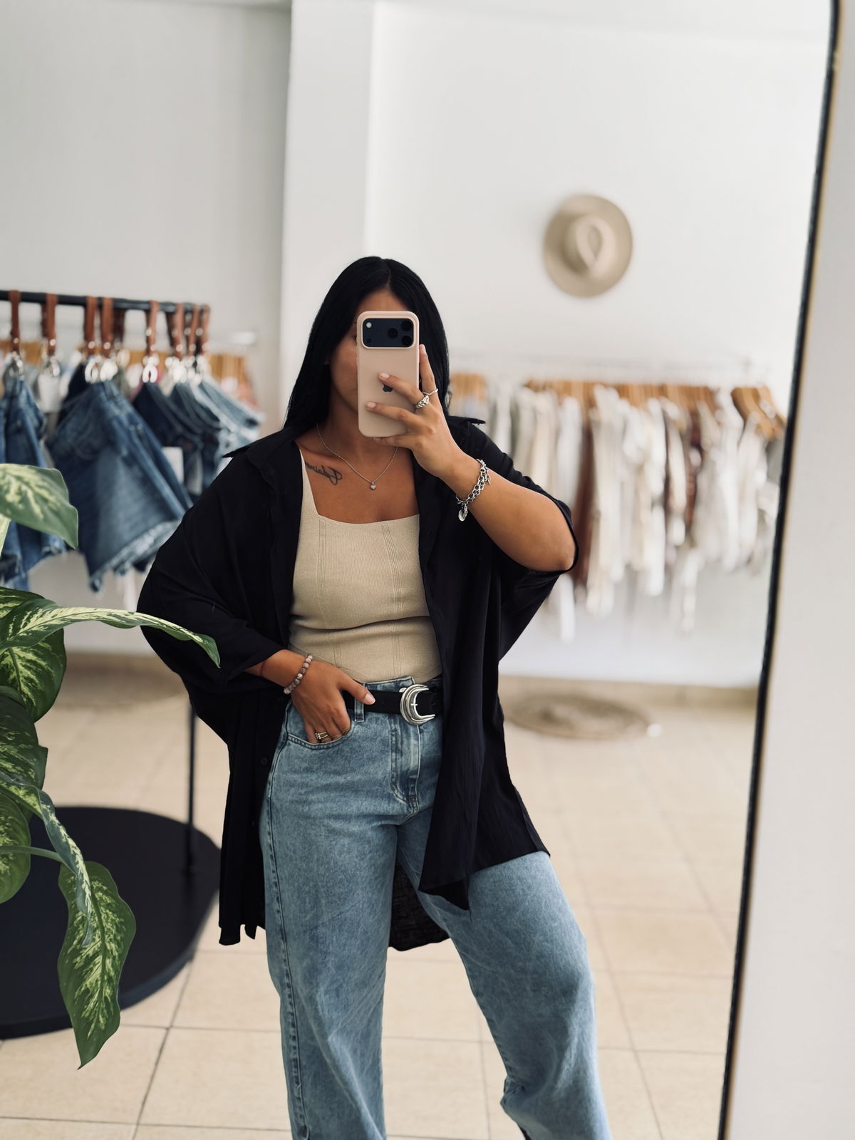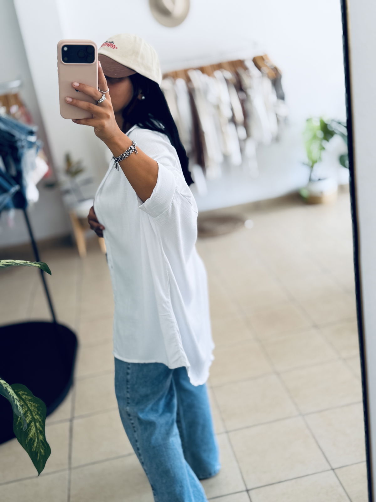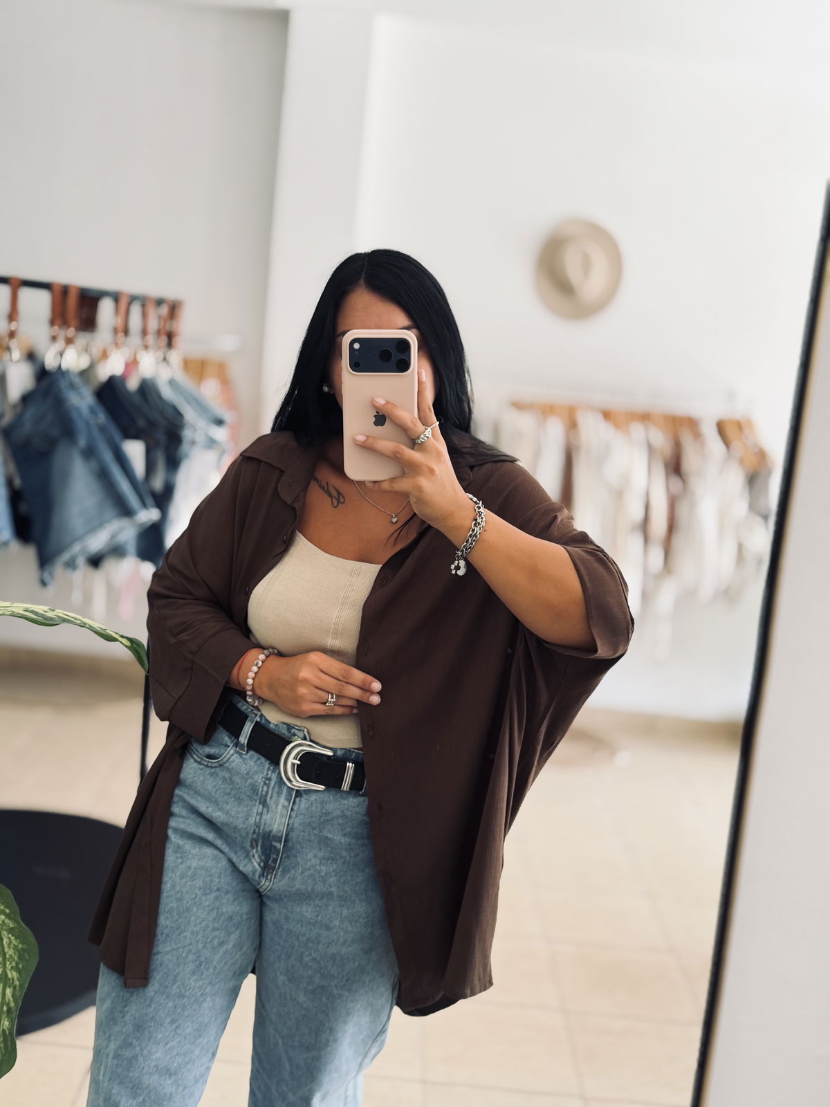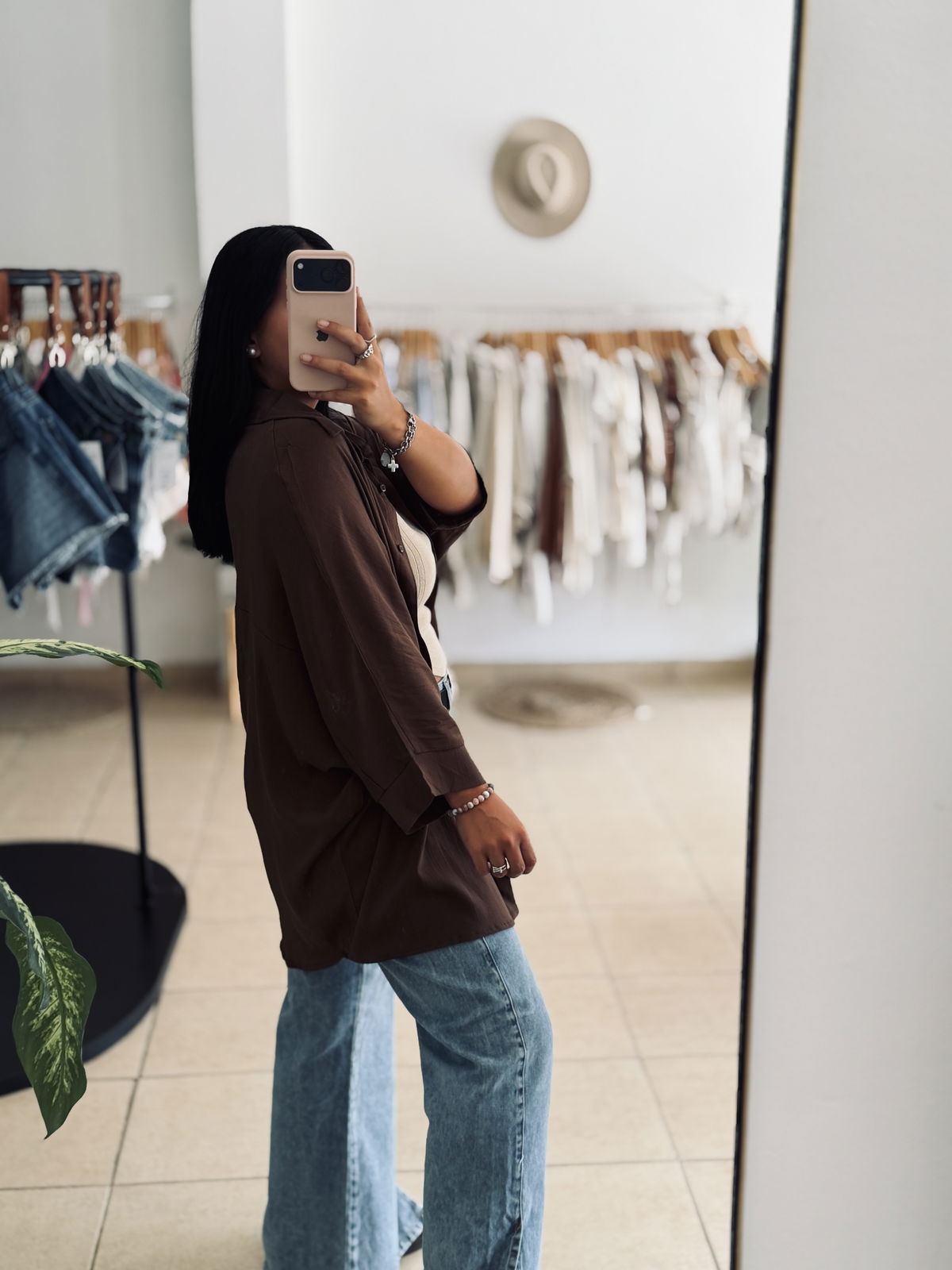 Camisa corte oversized con manga wranglan. Botones a tono. Tela liviana y fresca.