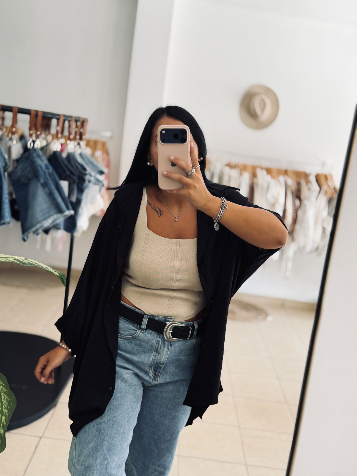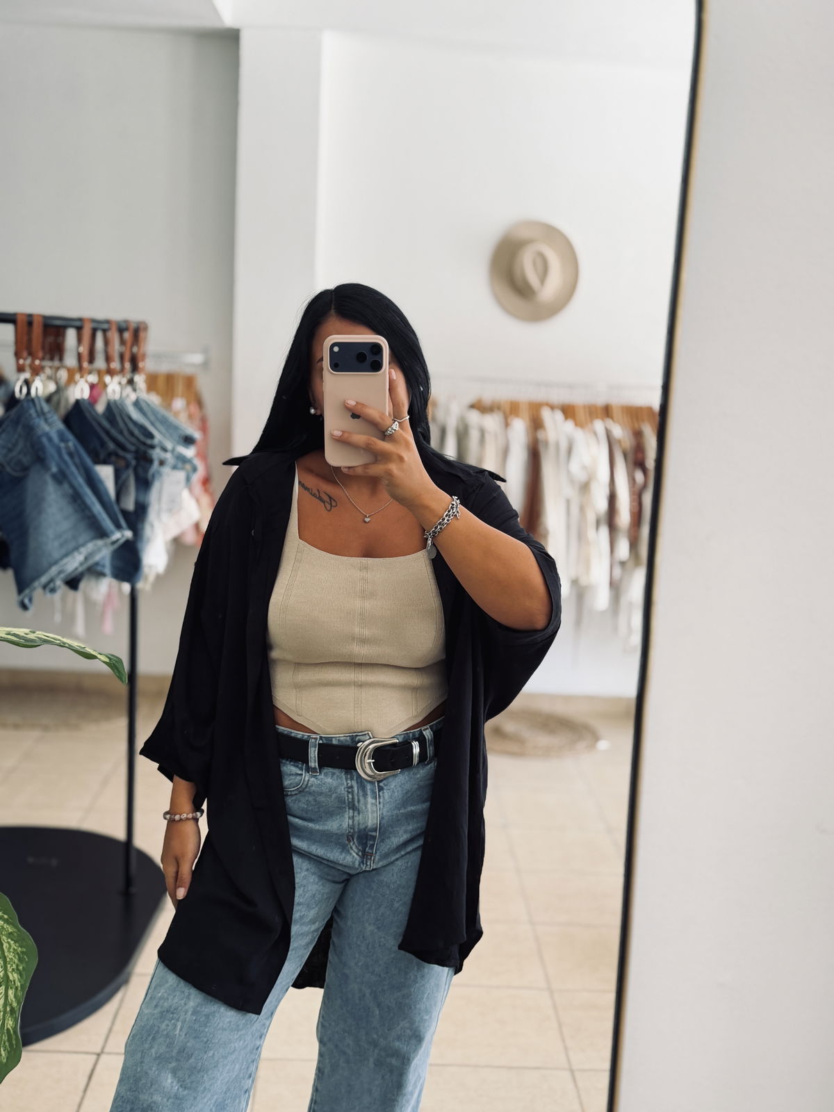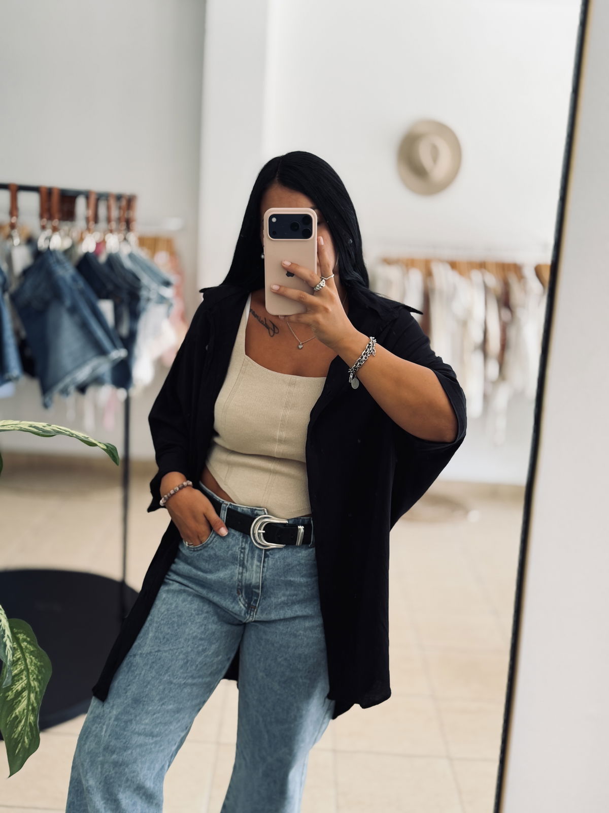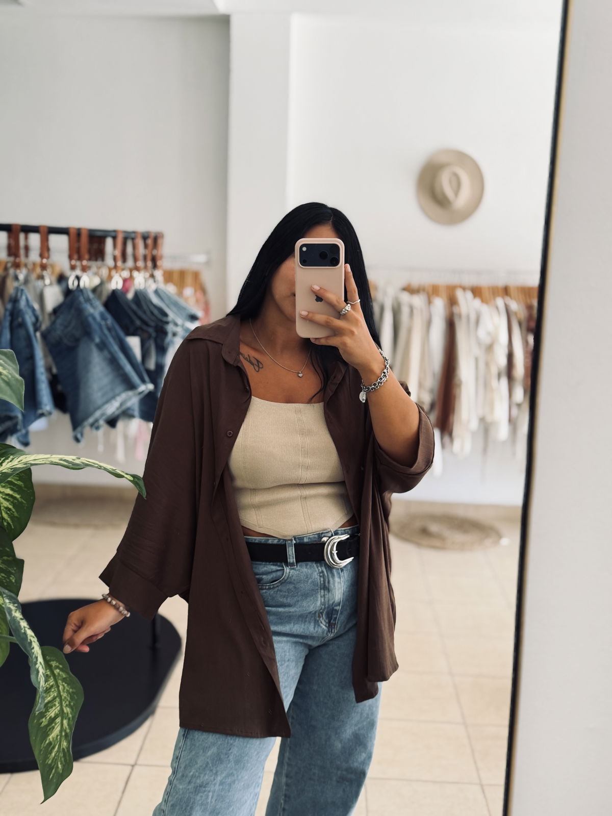 Camisa corte oversized con manga wranglan. Botones a tono. Tela liviana y fresca.