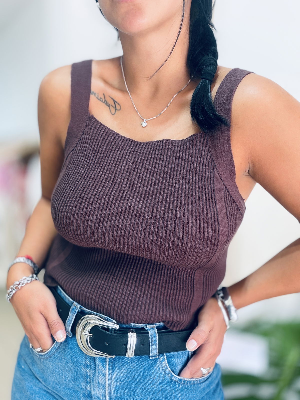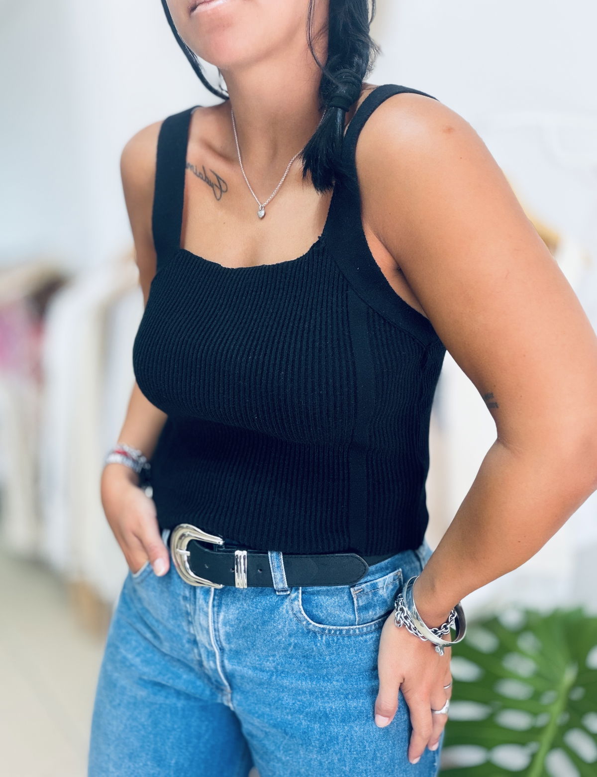 Top de hilo, súper elastizado, escote cuadrado. Va hasta un talle 100 de busto súper bien!