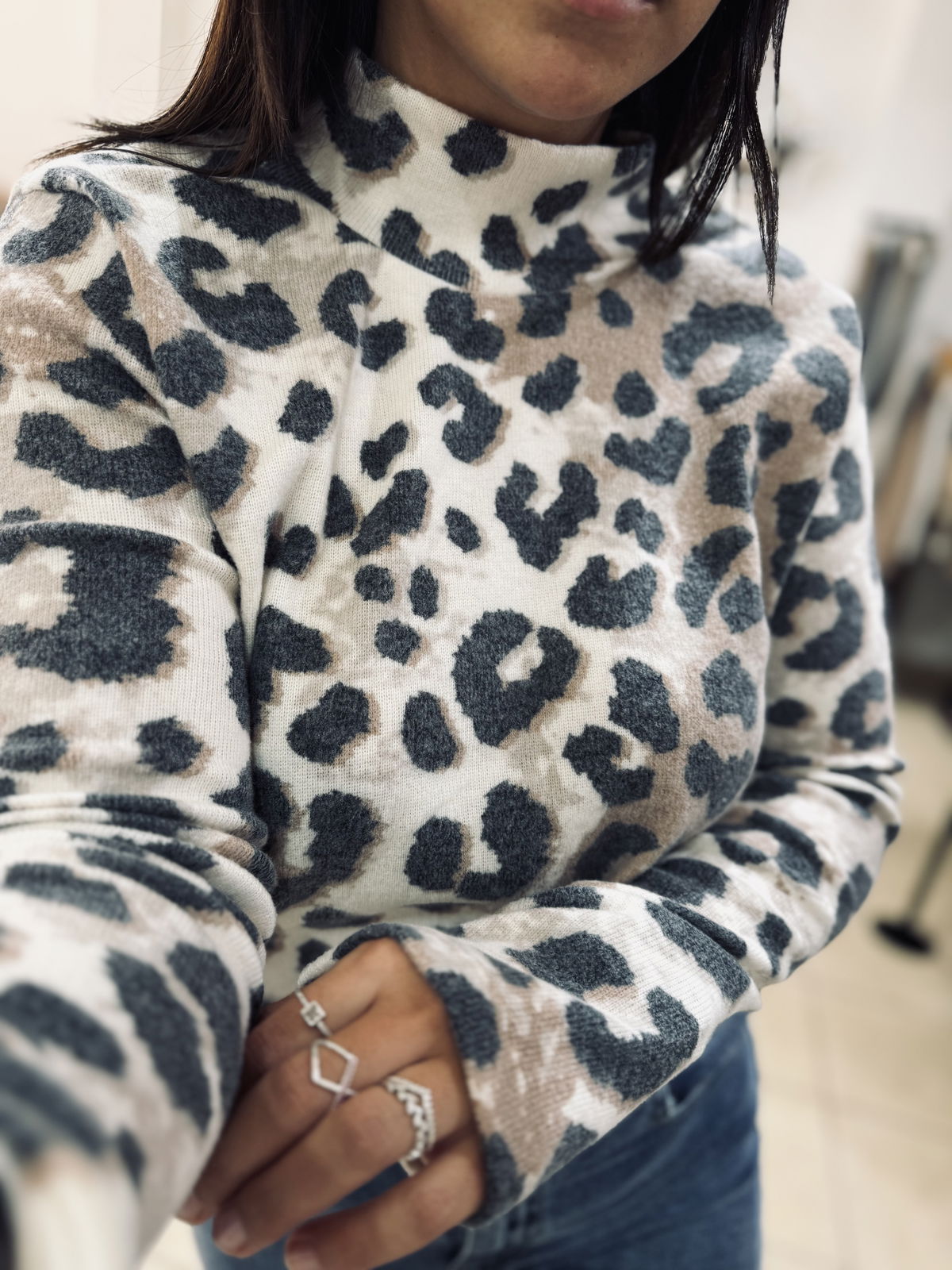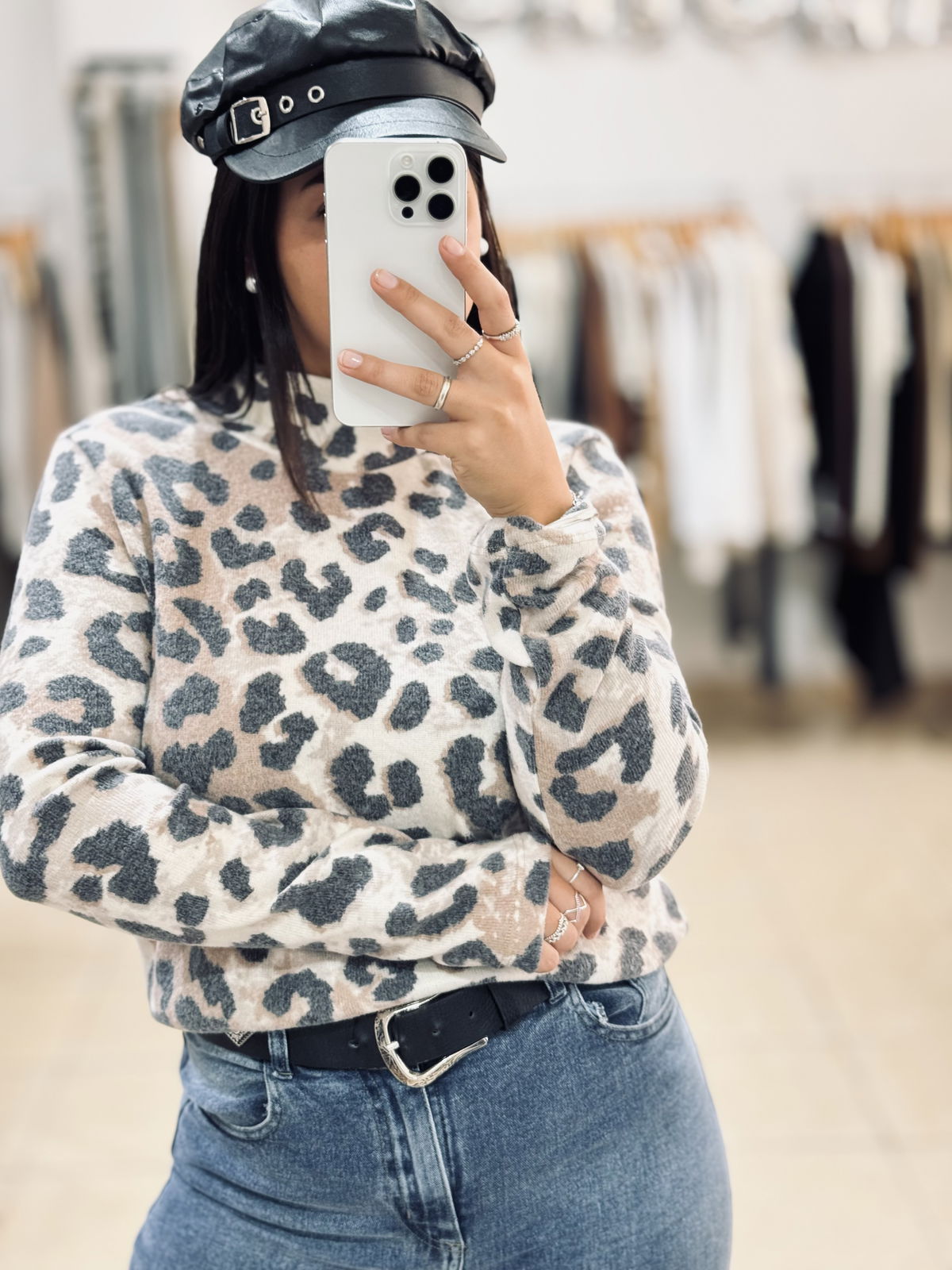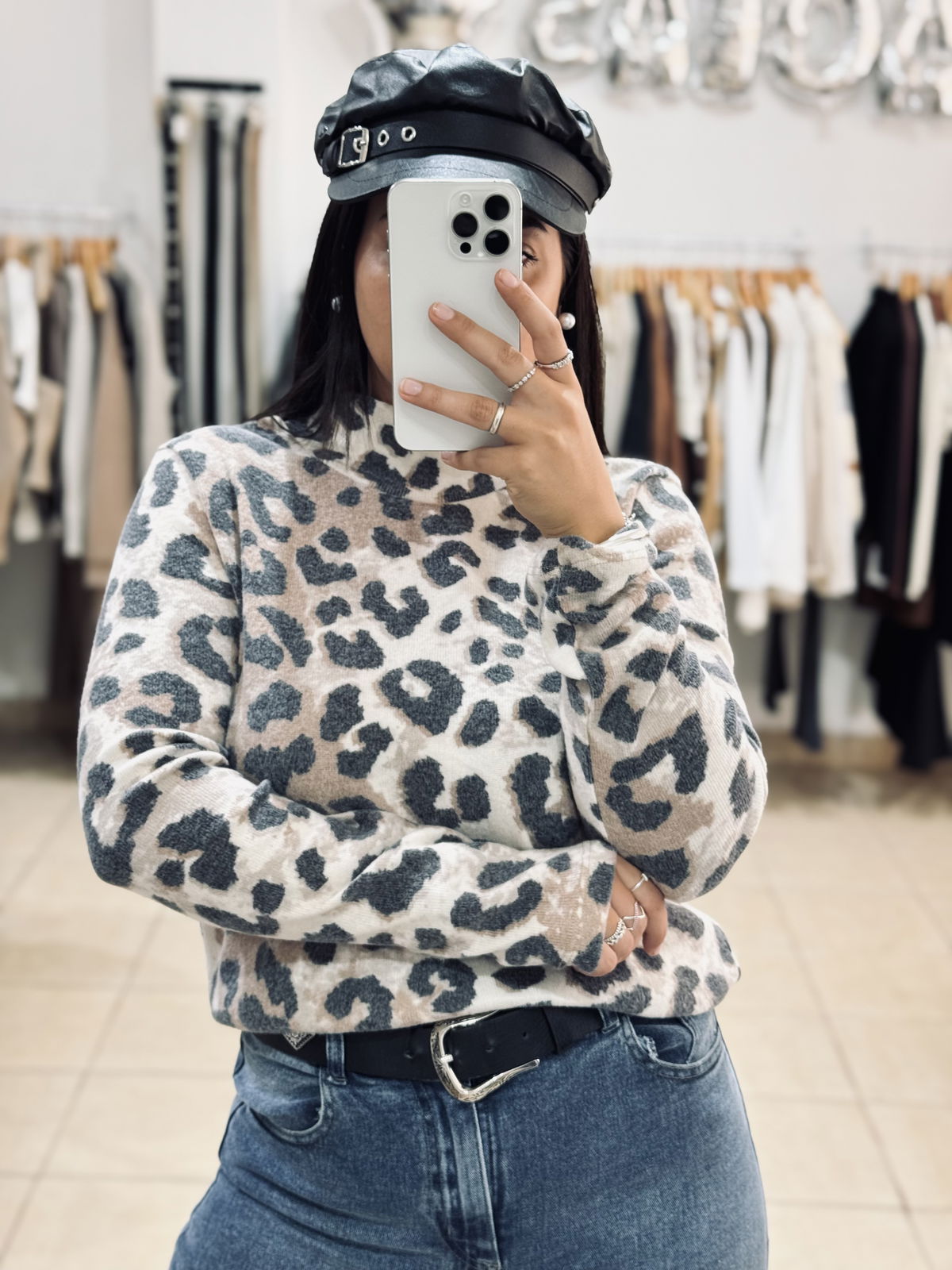 Polera de tejido suave con estampa animal print en tonos neutros 🤍 Un básico con personalidad que suma estilo a cualquier look. Su calce cómodo y cuello alto la hacen ideal para usar sola o para superponer en los días más frescos.