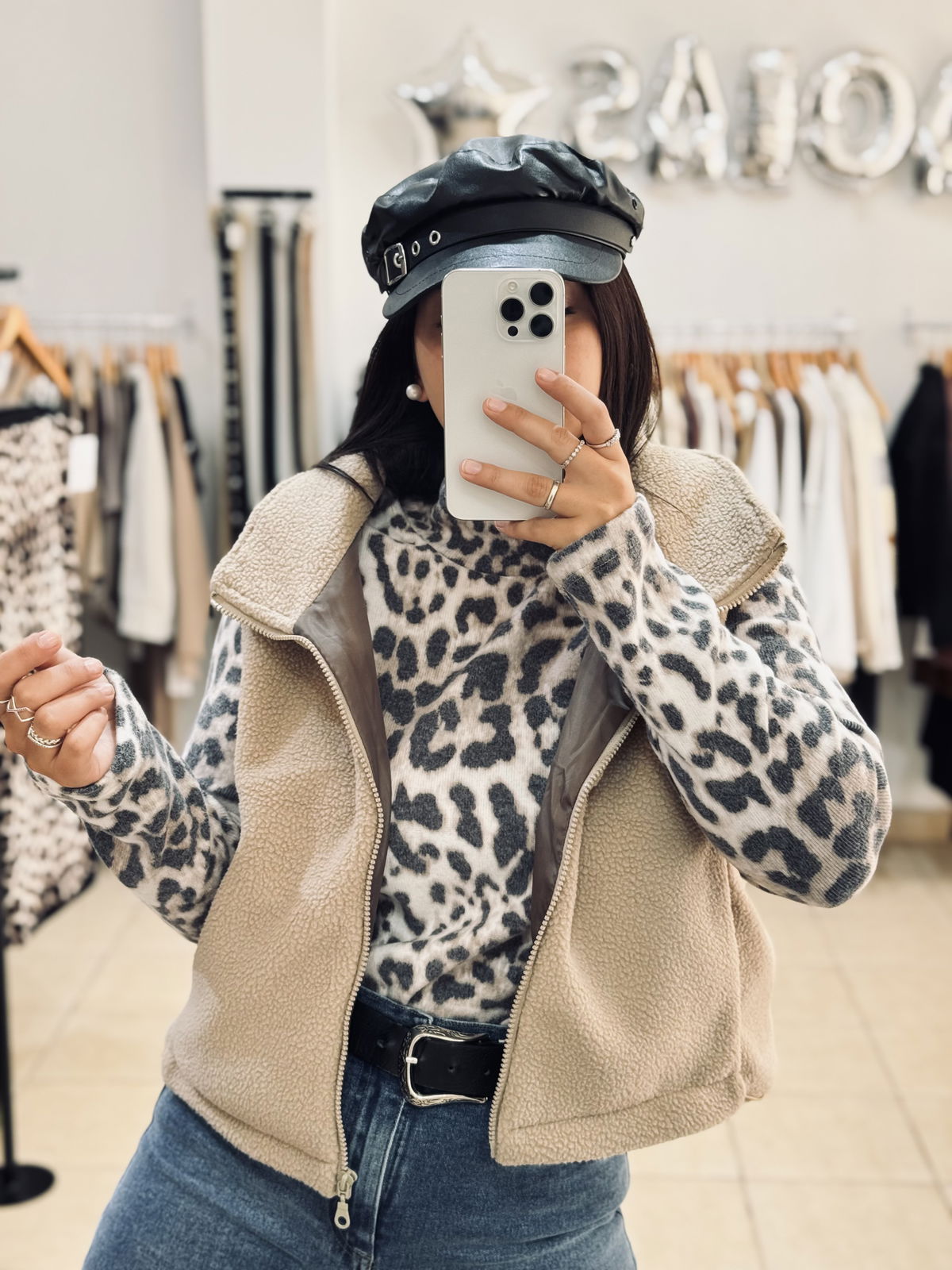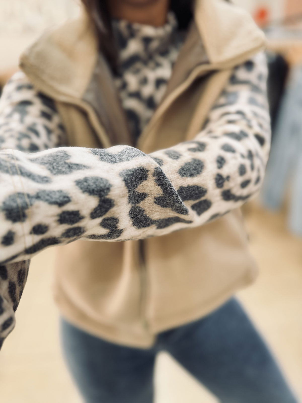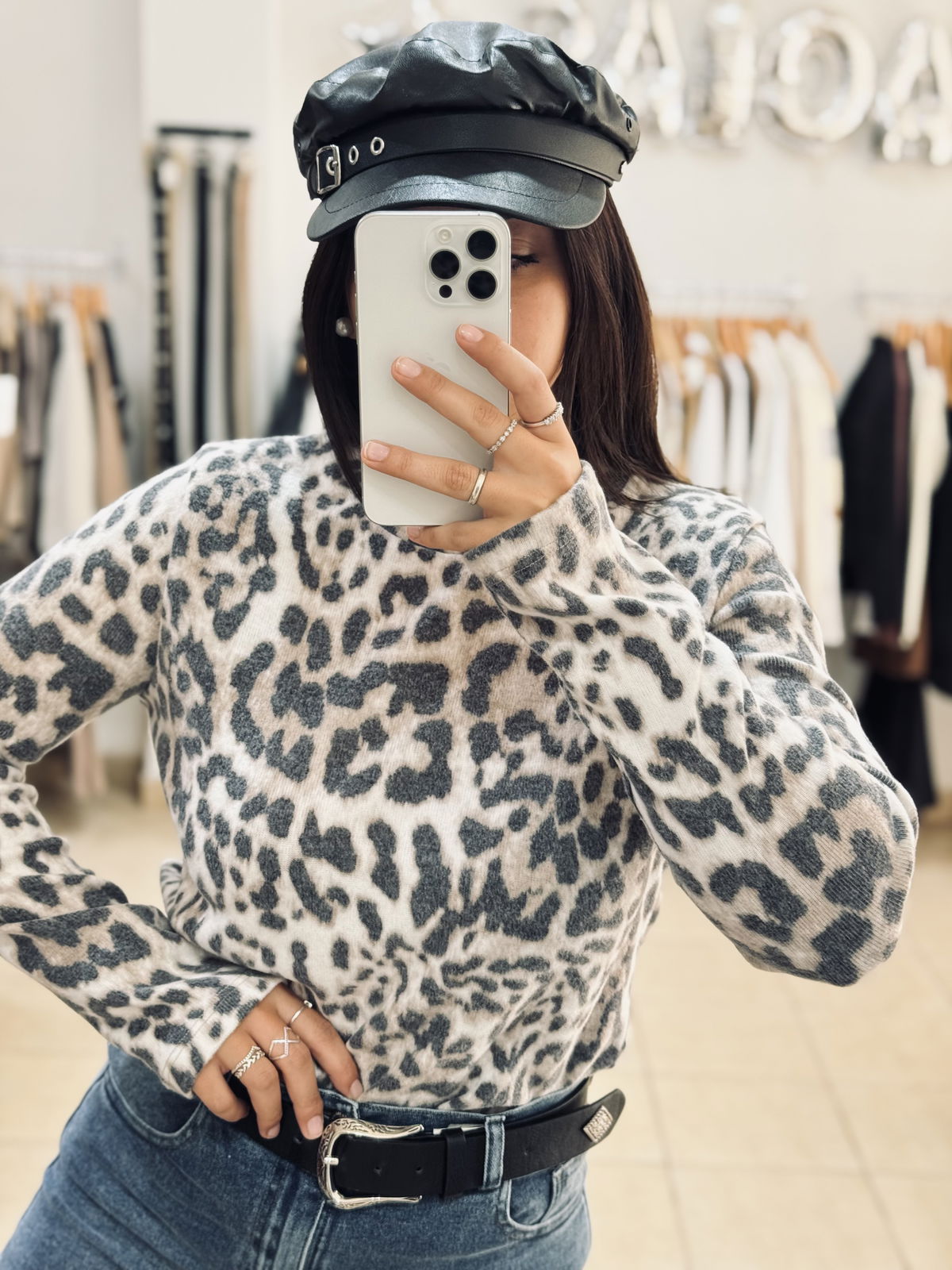 Polera de tejido suave con estampa animal print en tonos neutros 🤍 Un básico con personalidad que suma estilo a cualquier look. Su calce cómodo y cuello alto la hacen ideal para usar sola o para superponer en los días más frescos.