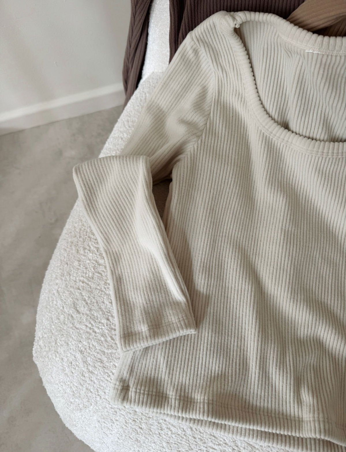 Remera de manga larga confeccionada en morley frisada elastizado, suave y cómodo al cuerpo. Su escote redondeado y calce entallado la convierten en un básico infaltable para todos los días. Ideal para usar sola o como base de cualquier look.